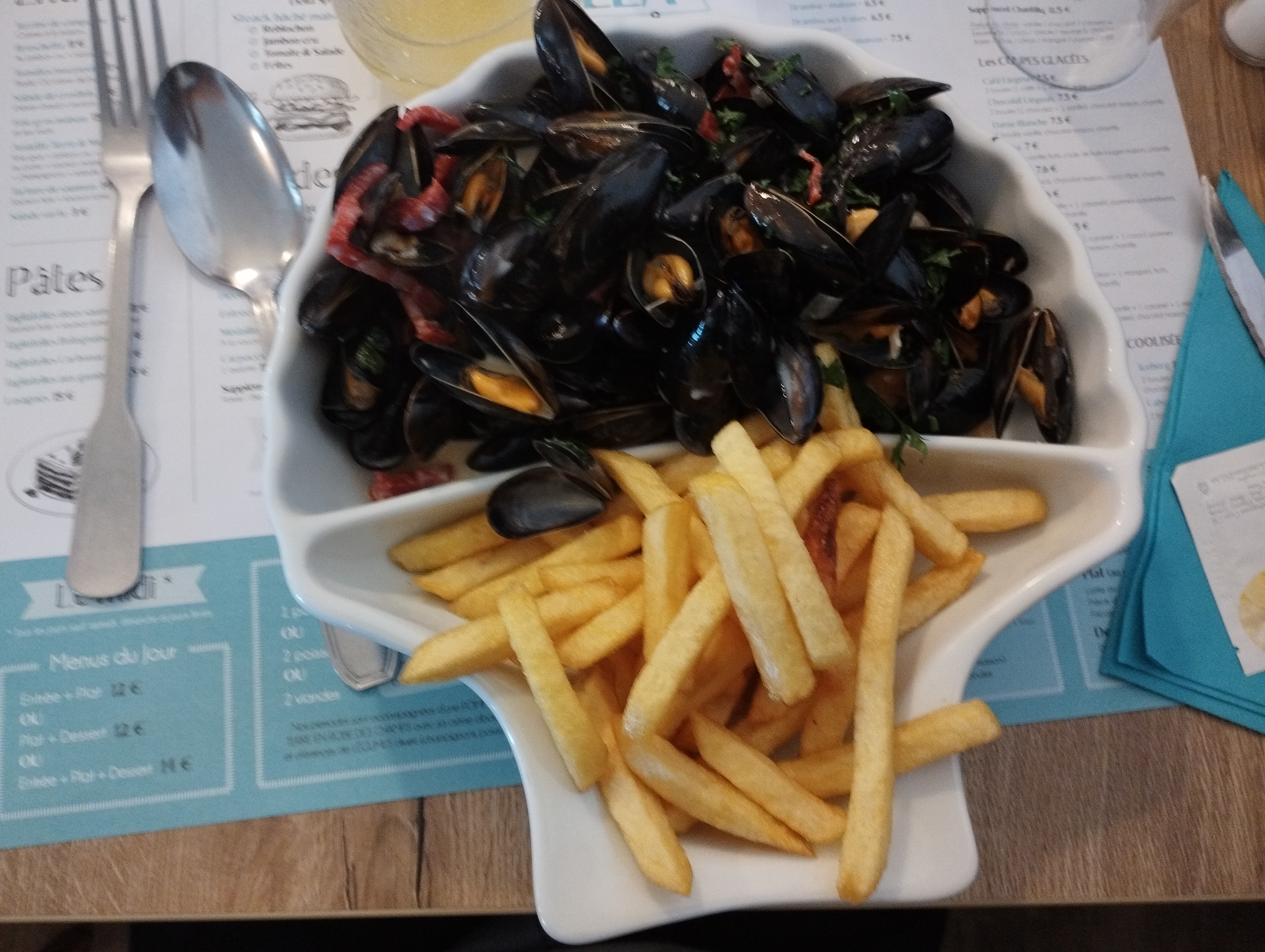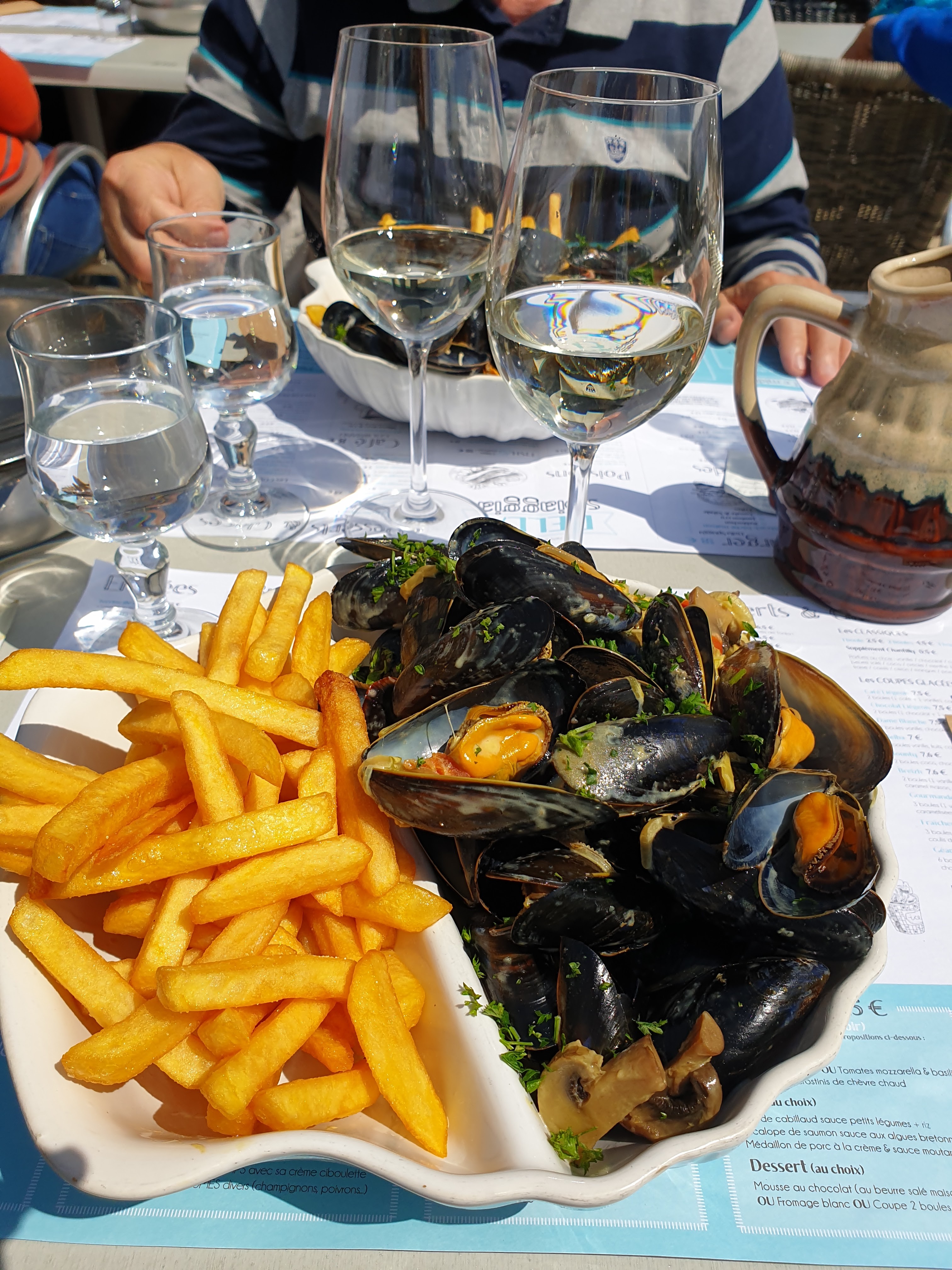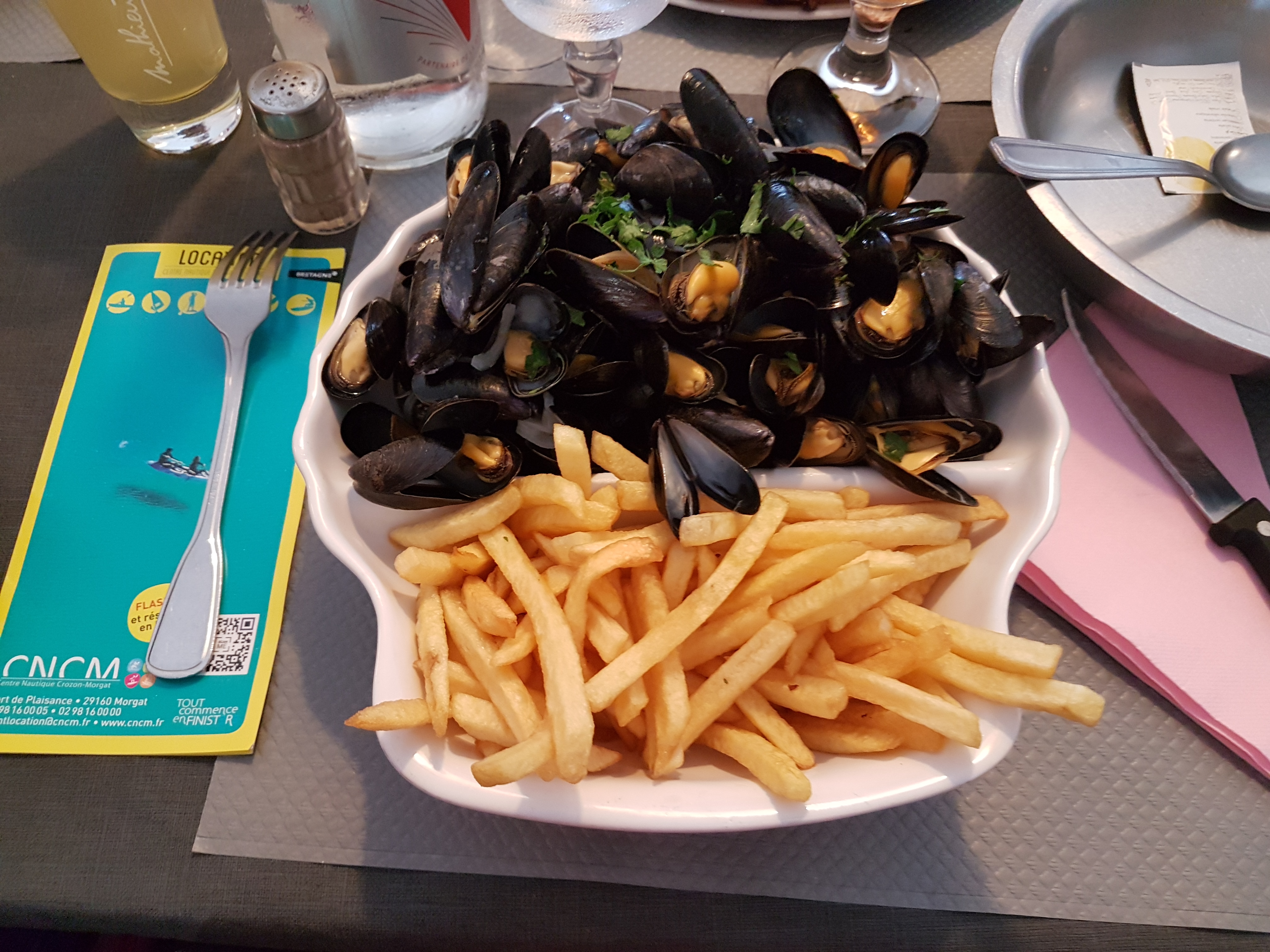 Accueil sympa cuisine moyen manger des moules ce samedi il y a beaucoup mieux rosé en pichet pas fameux pour 10 euros les 50 cl