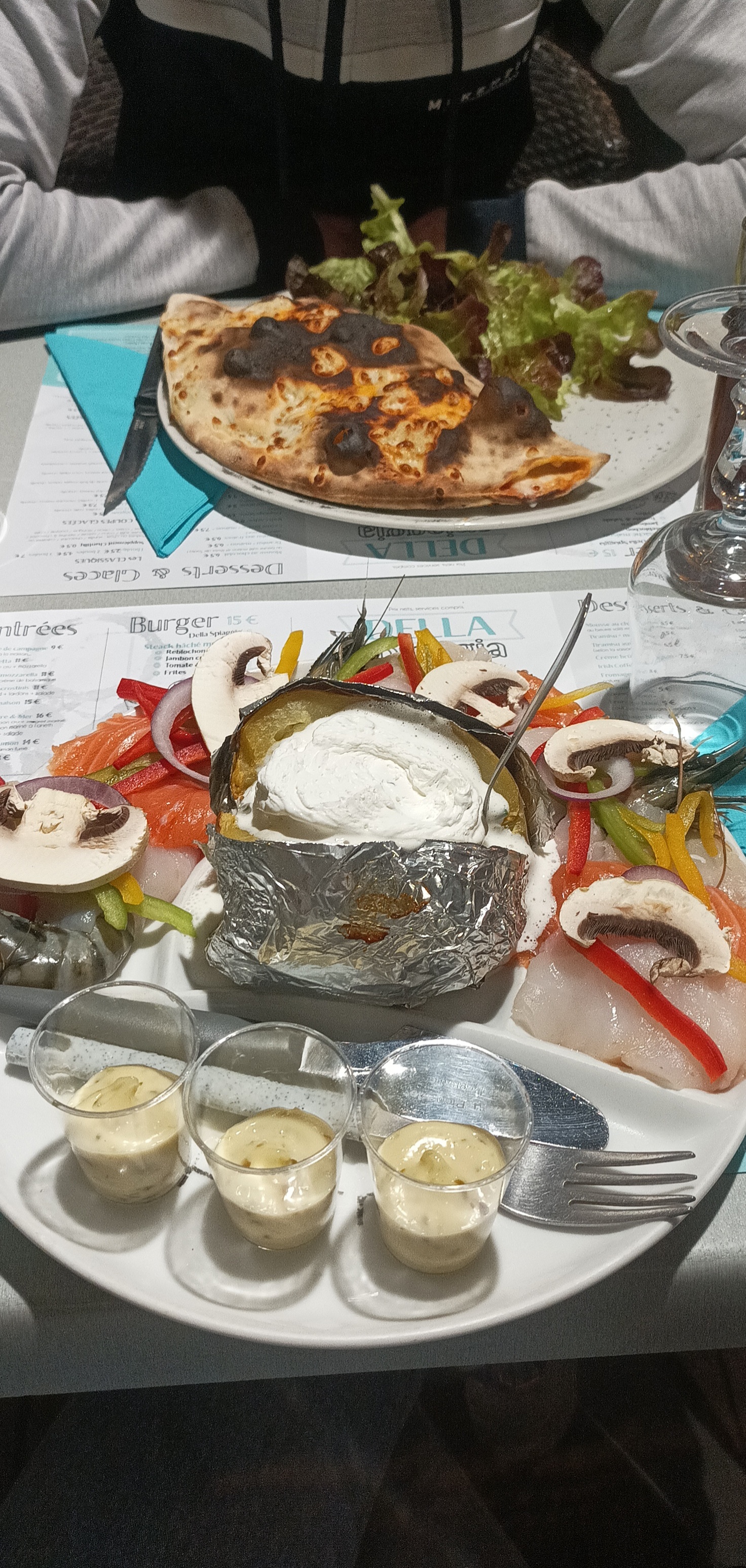 Pierrade de poissons très bonne, pizza rien d'exceptionnel. Beaucoup d'attente pour le service.