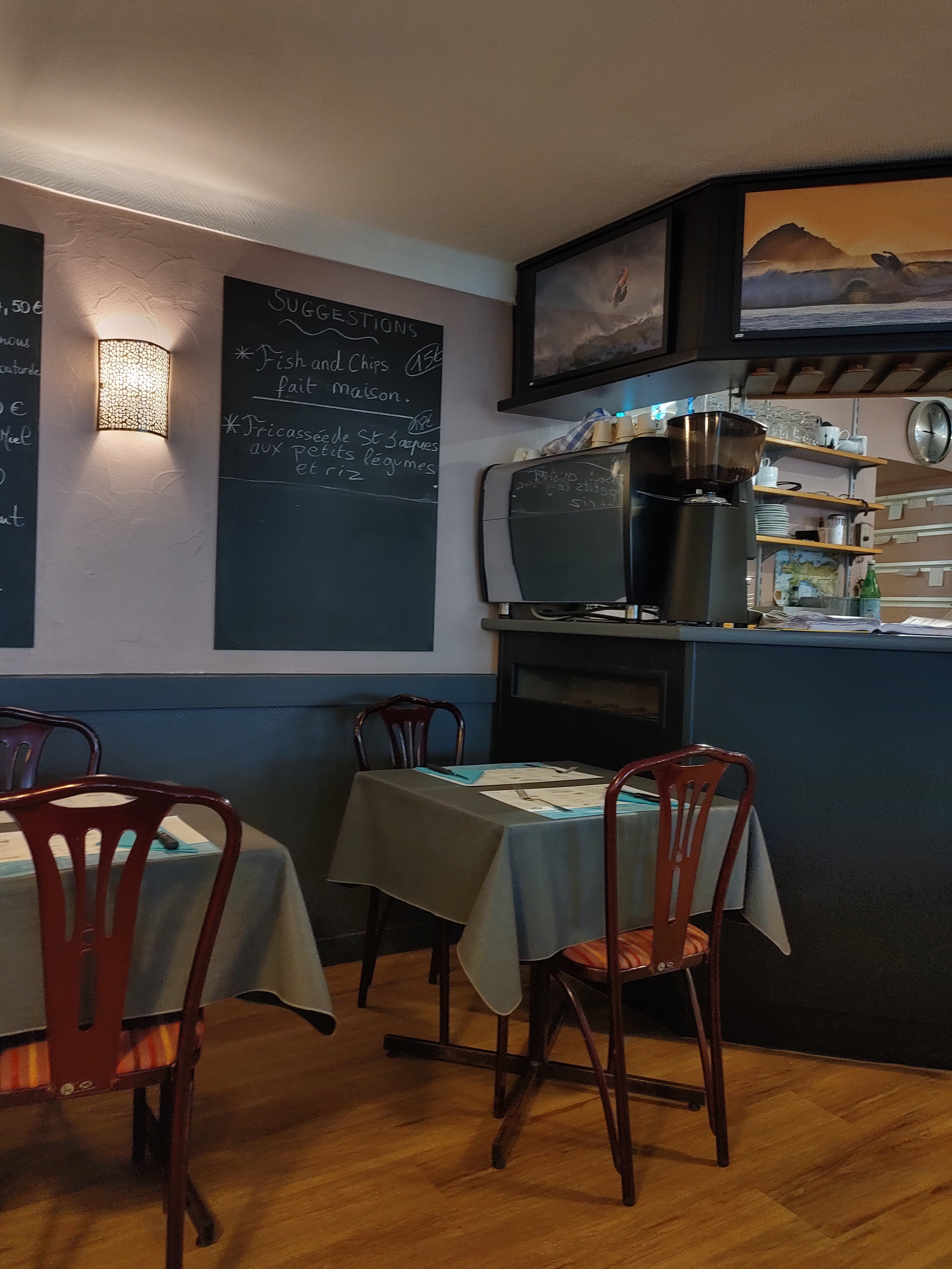 Un restaurant très sympathique ou on s est régalé.L accueil était très convivial.les plats de coquilles St Jacques et de lotte un délice et la tapisserie d'une autre epoque representant un fond marin d'algues et de gorgones aux hippocampes vaut le detour.On reviendra merci a vous