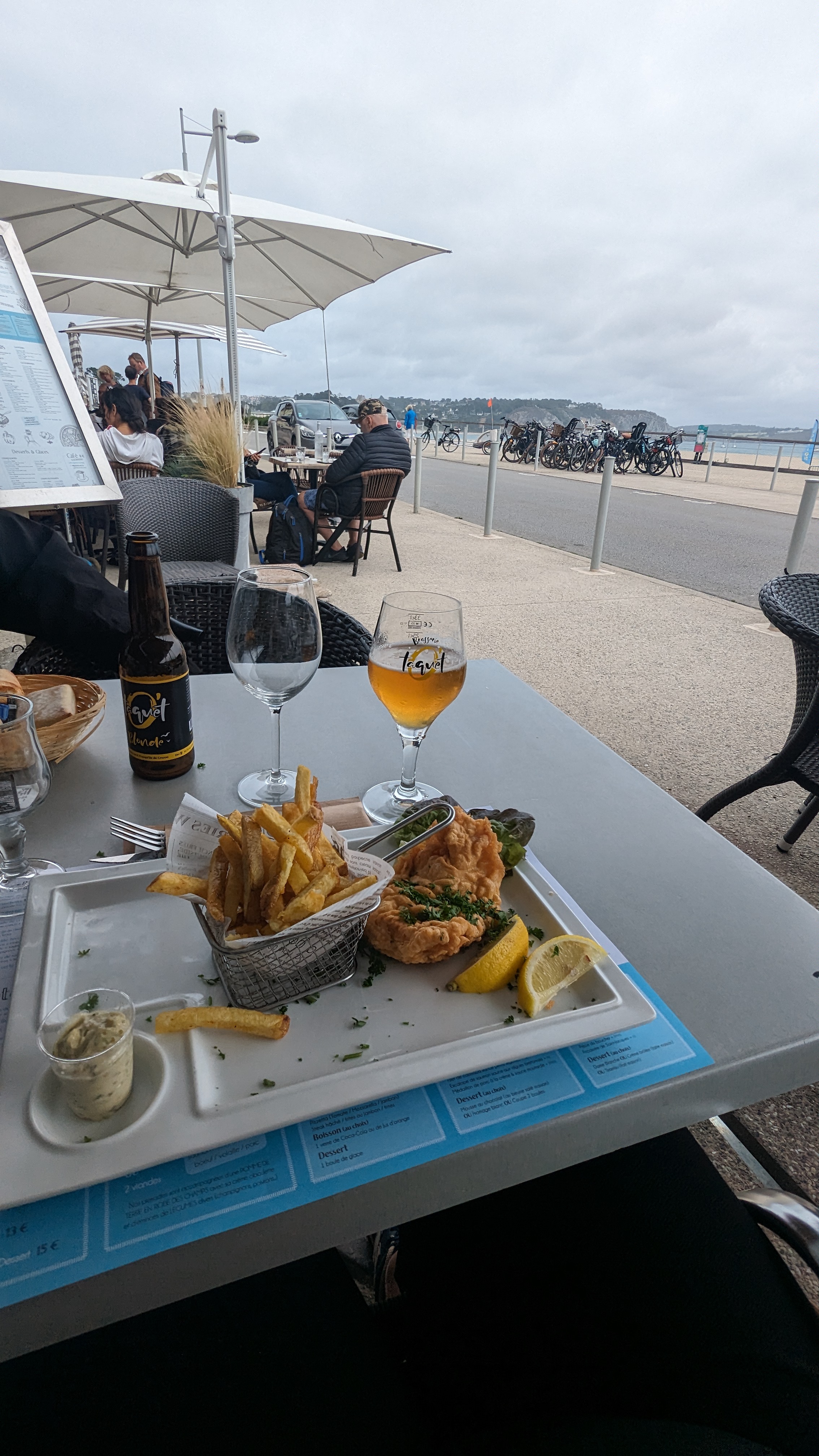 Serveurs sympathiques, le service est rapide et la vue sur mer est magnifique. Cependant, j'ai pris seulement le plat moule/frites et je ne dirais pas non à des frites maison même s'il faut payer 1 ou 2€ plus cher. Pour les moules je sais que cela dépend des arrivages.