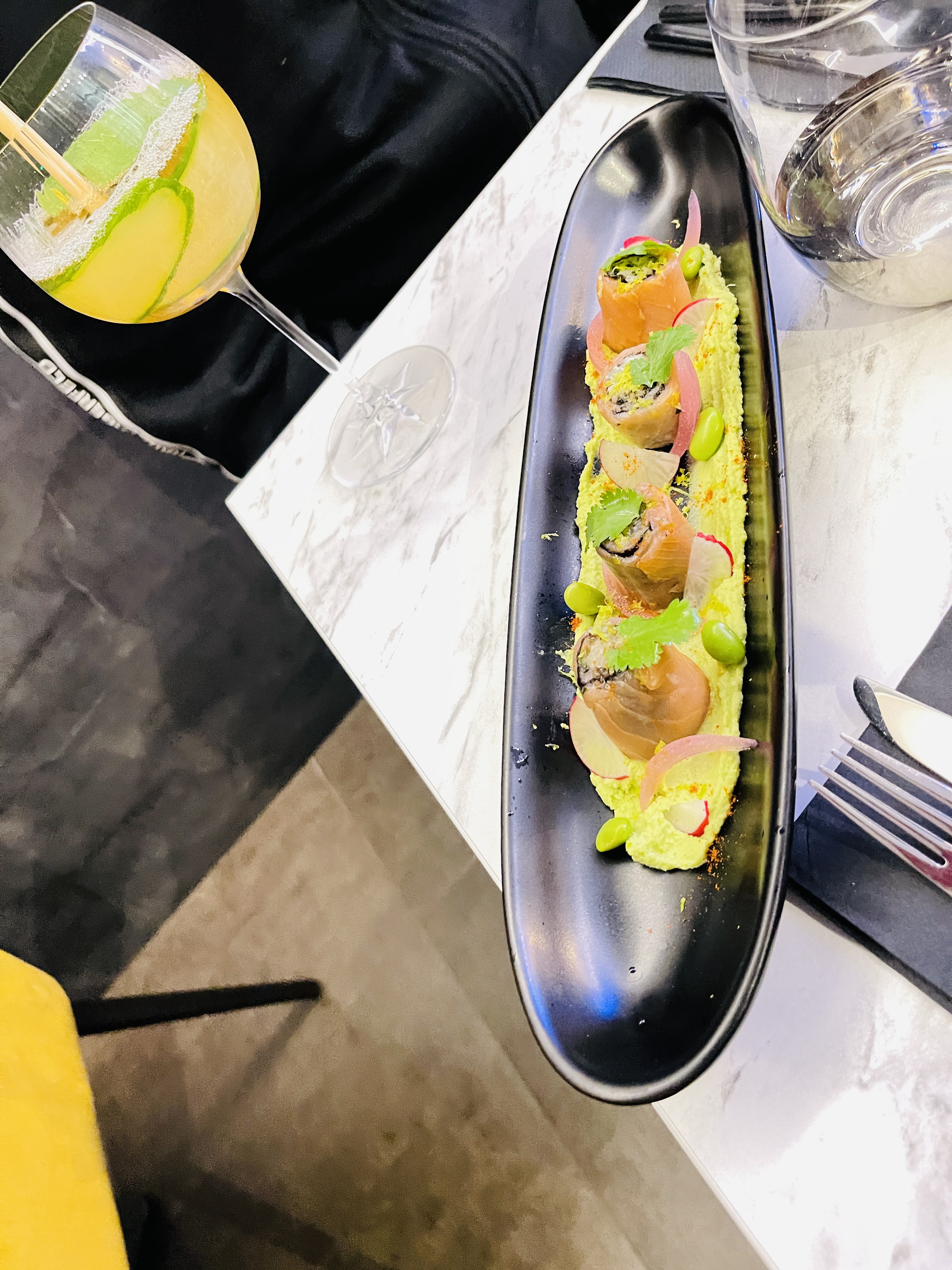 Cuisine délicate et délicieuse, un mélange d'esprit européen et asiatique. Design soigné. Cocktails maison poétiques et originaux à déguster. On va y revenir sans doute. C'est trop bon;o)+ service impeccable