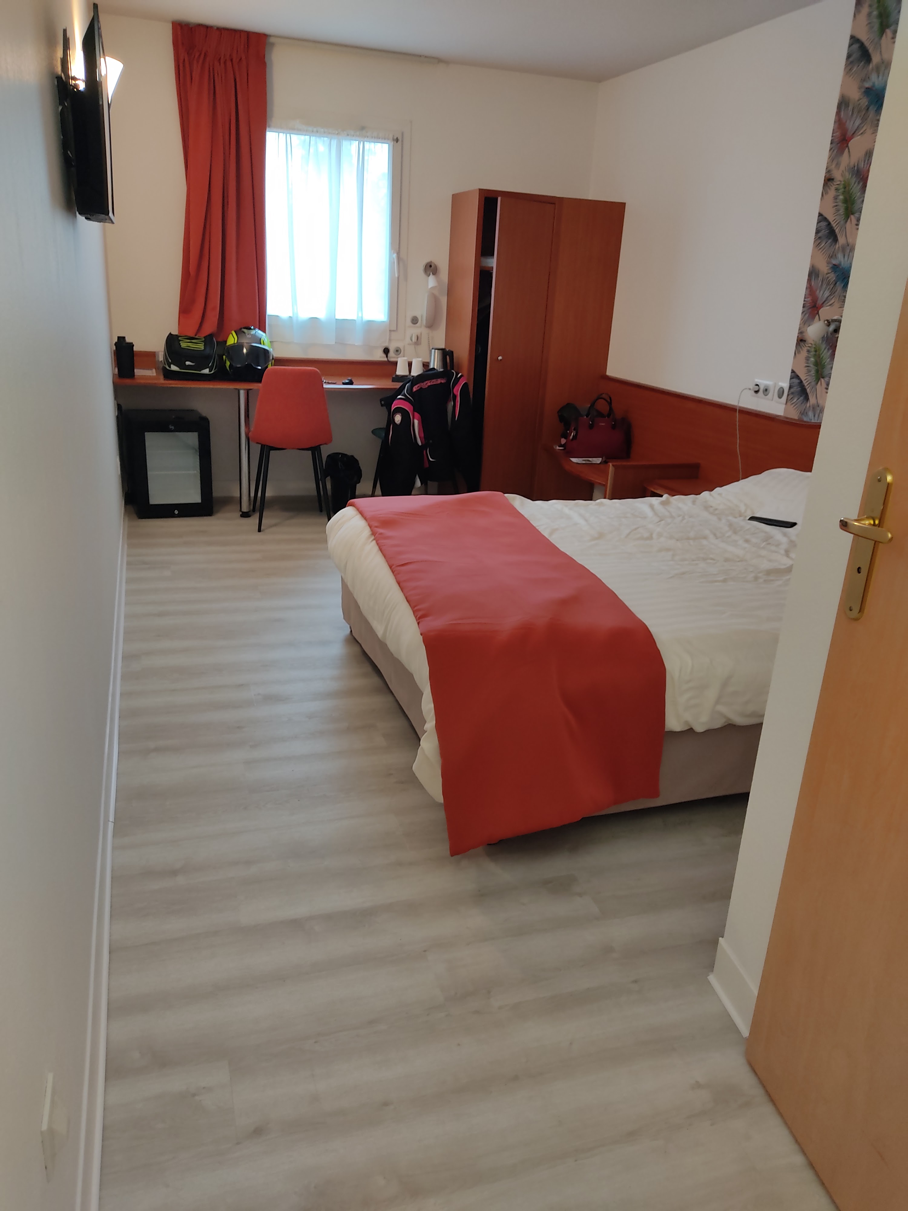 La chambre est spacieuse, le lit grand et confortable. Parking moto à disposition, accès au centre ville par la voie verte en moins de 30 min. Personnel accueillant et souriant.