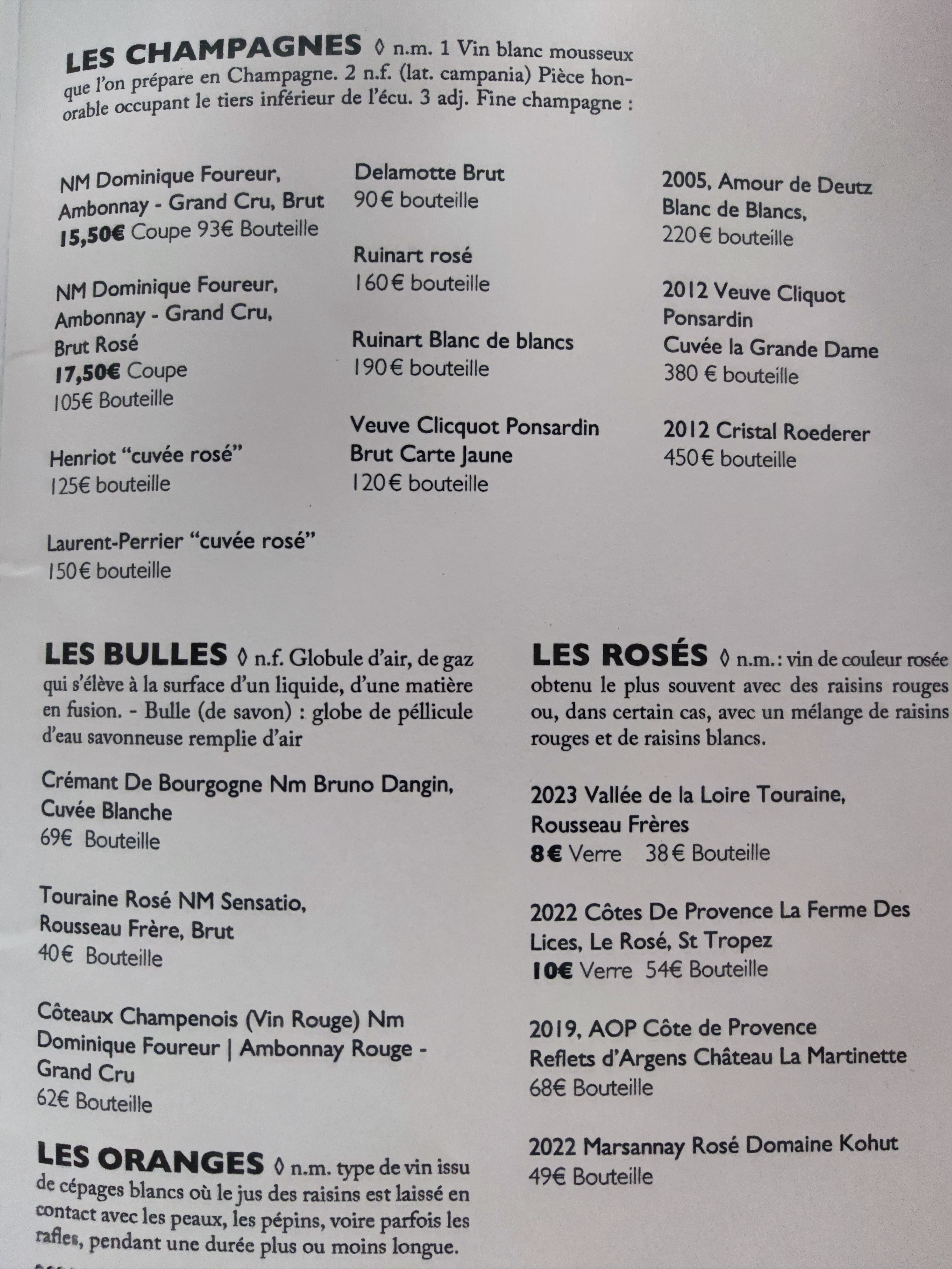 Les plats sont bons sans être extraordinaires (pour 29€ minimum le plat on s’attend à un peu mieux). Nous avions tous faim après un plat et un dessert. Les serveuses ne connaissent pas la carte, apportent les mauvaises bouteilles de vin, renversent des assiettes sur des clients…