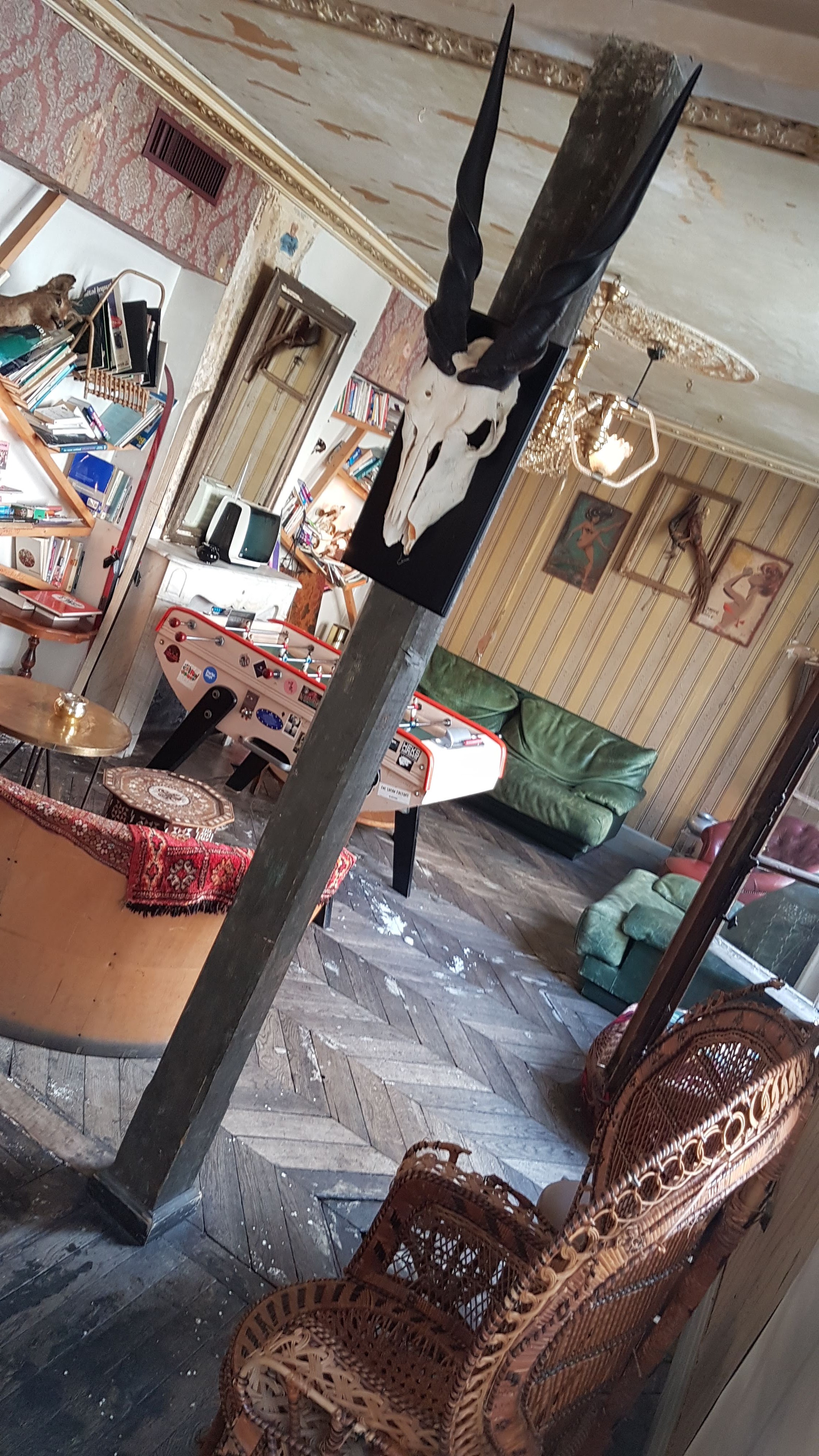 J'aime bcp le lieux et l'ambiance (je recommande d'aller s'aventurer a l'étage aussi). Table de ping-pong au mileu de la salle. Je recommande le brunch du dimanche 30€ mais buffet à volonté et que de délicieuses choses. En revanche le plat du soir quand on est végétarien: peu de choix et pas dingue, déçue. Personnel soit très agréable (attentioné, poli et grand sourire) soit tout l'inverse, ce qui est dommage.