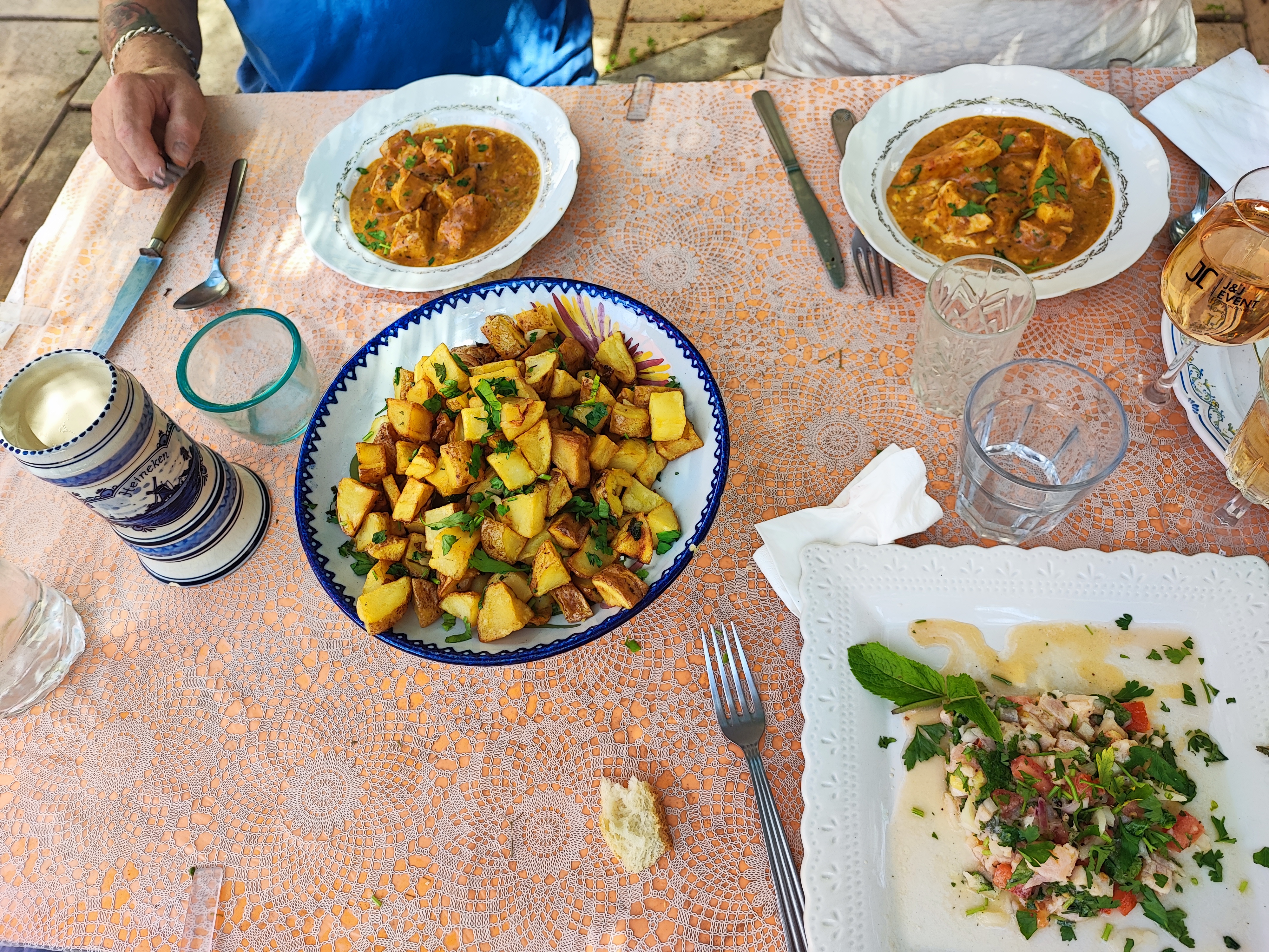 Ambiance antiquaire, retour vers le passé dans une très grande simplicité. Vaisselle dépareillée mais ambiance de fête, on aime la vie et on a failli danser tous ensemble Ah j oubliais...on a bien mangé...