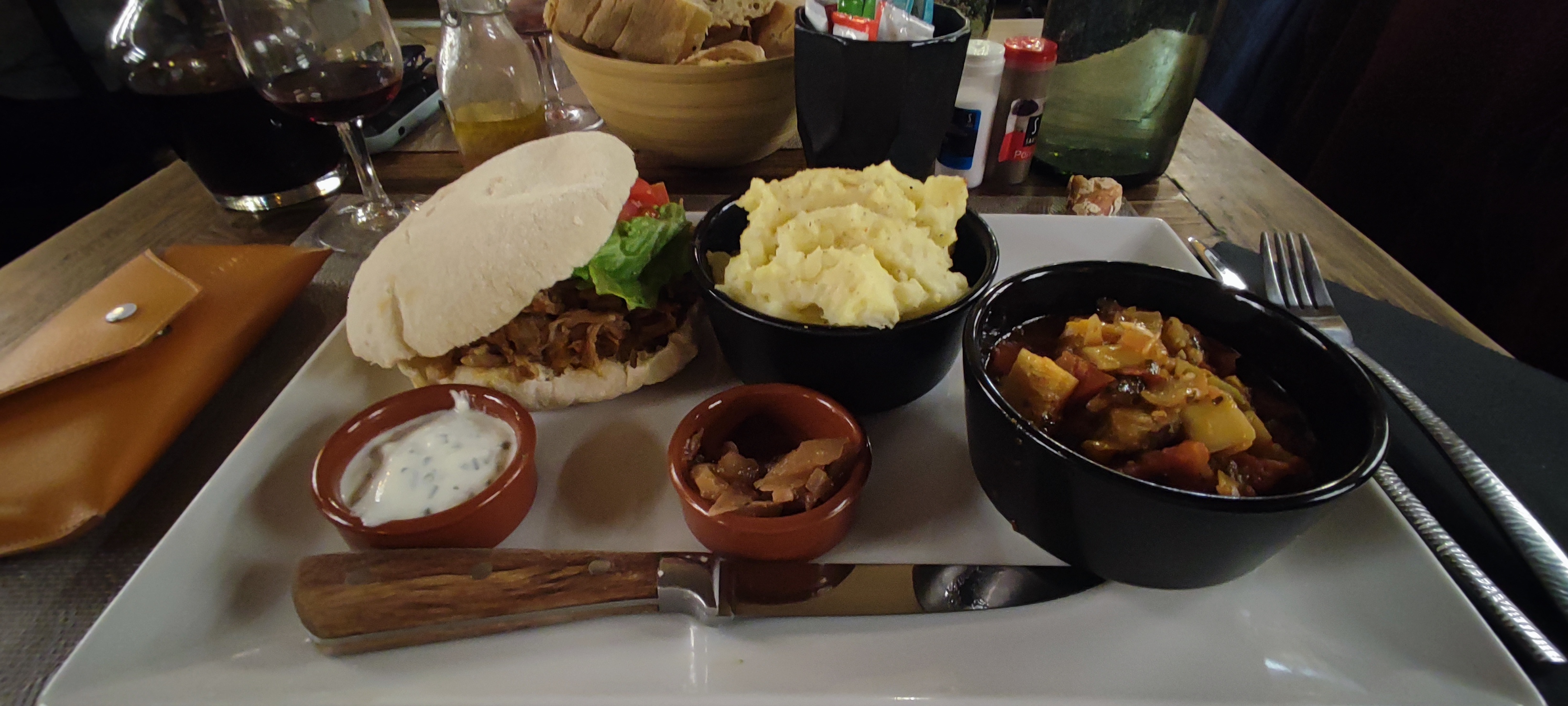 Super restaurant tres convivial belle deco plats copieux et délicieux tres bon service le monsieur prend le temps d'expliquer la carte à chaque clients,entrée offerte. Moi qui ne mange pas de viande la cheffe s'est adaptée et m'a proposé un grand nombre de choix sans viande ! Vraiment j'ai énormément apprécié ma soirée les personnes et la décoration de ce resto sont très agréable et jovial et le gout est sublime !! Nous reviendrons avec plaisir !