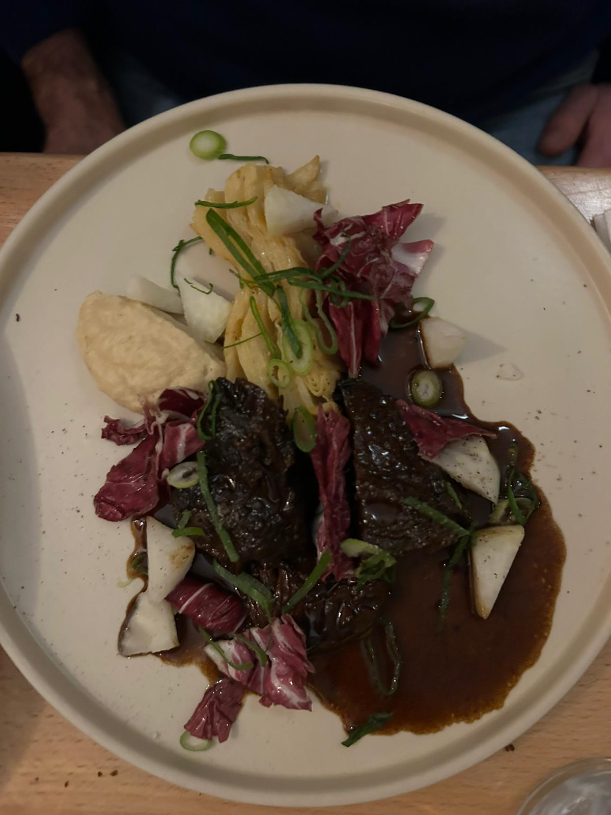 tout simplement incroyable. j'ai vu un avis disant qu'il n'y avait pas de plats végétariens, mais c'était pas le cas lors de notre visite. Le mille feuille d'asperges et de céleri, incroyablement inventif et magnifiquement présenté, est l'un des plats végétariens les plus beaux et les plus rafraîchissants que j'ai jamais mangé en tant que végétarien !