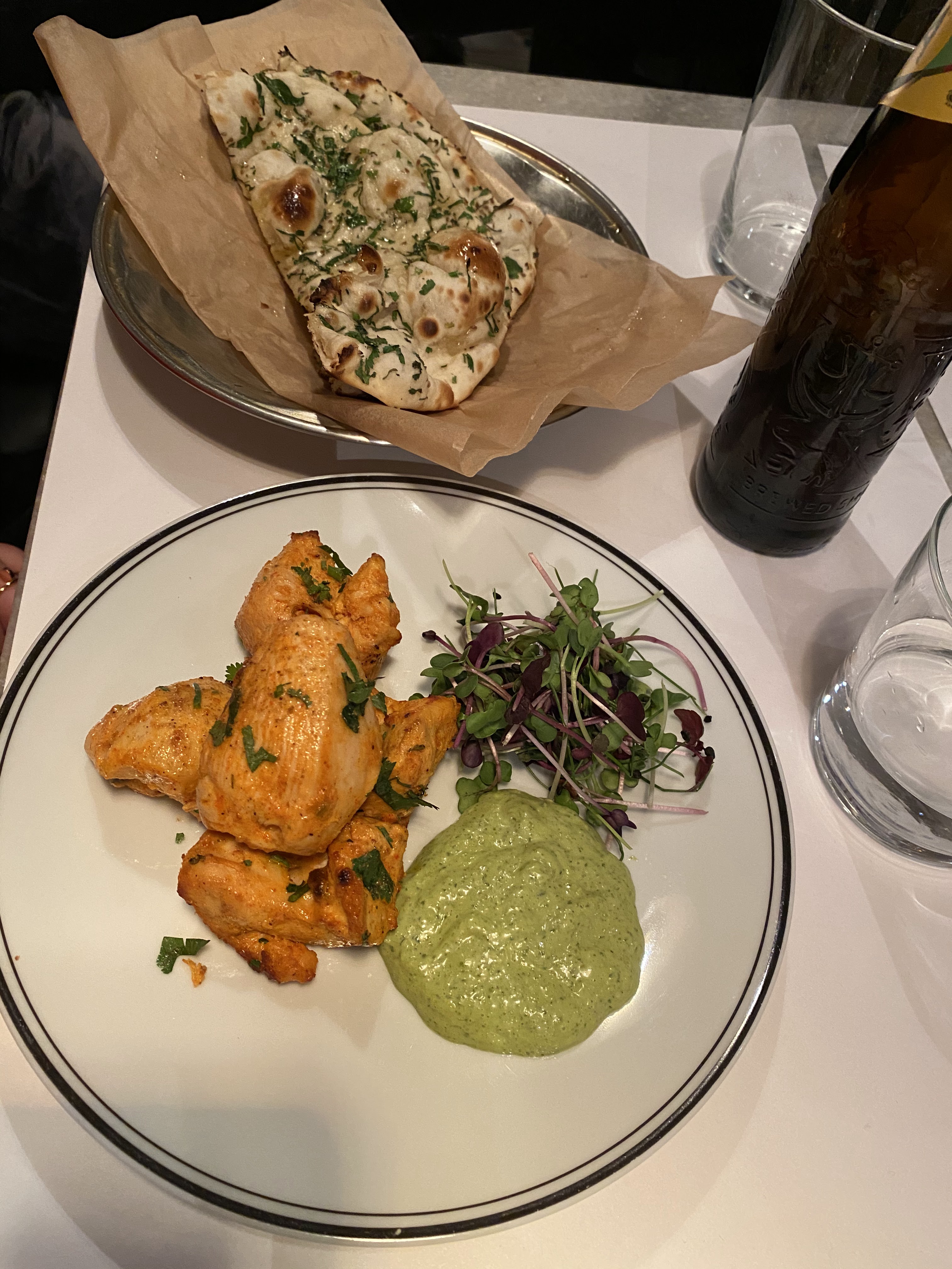 On a pris le Thali Chicken, le Paneer Grillé, le Tandoori Chicken Tikka, les Golgapas, les Cheese Naan et Cheese/Garlic, le Nimboo Pani, le Aloo Tiko Chaat et le Kulfi. Mais quel festival de saveur.. Une explosion en bouche et ça fusait dans tous les sens. C'est rare de trouver une cuisine indienne du nord qui soit bonne et relevé - mais là, on est servi! On sent que les ingrédients sont frais et bien travaillés - les plats sont bien marinés et cuits à la perfection. Je ne peux surtout pas choisir ce que j'ai aimé le plus car si c'est à refaire, je reprendrai les mêmes plats car je ne saurai décider. Sachez qu'on était quand même deux et on est re sorti bien rempli. Super rapport qualité prix, service au top, accueil chaleureux, ambiance dans le thème. S'il y a bien une chose qui me reste en tête tout de même, c'est la sauce relevée à la coriandre - WOW! A refaire! 🔥🔥🔥
