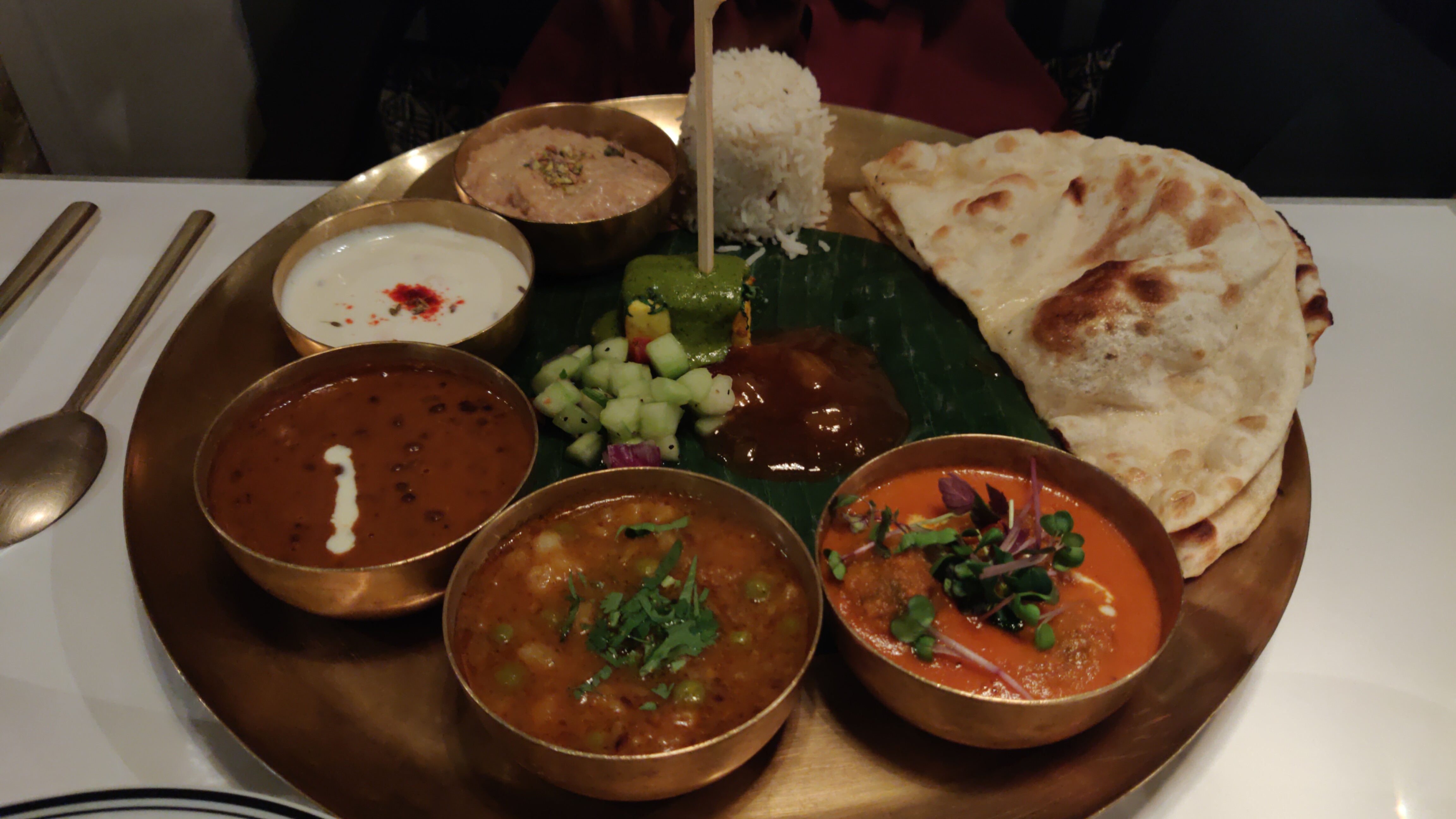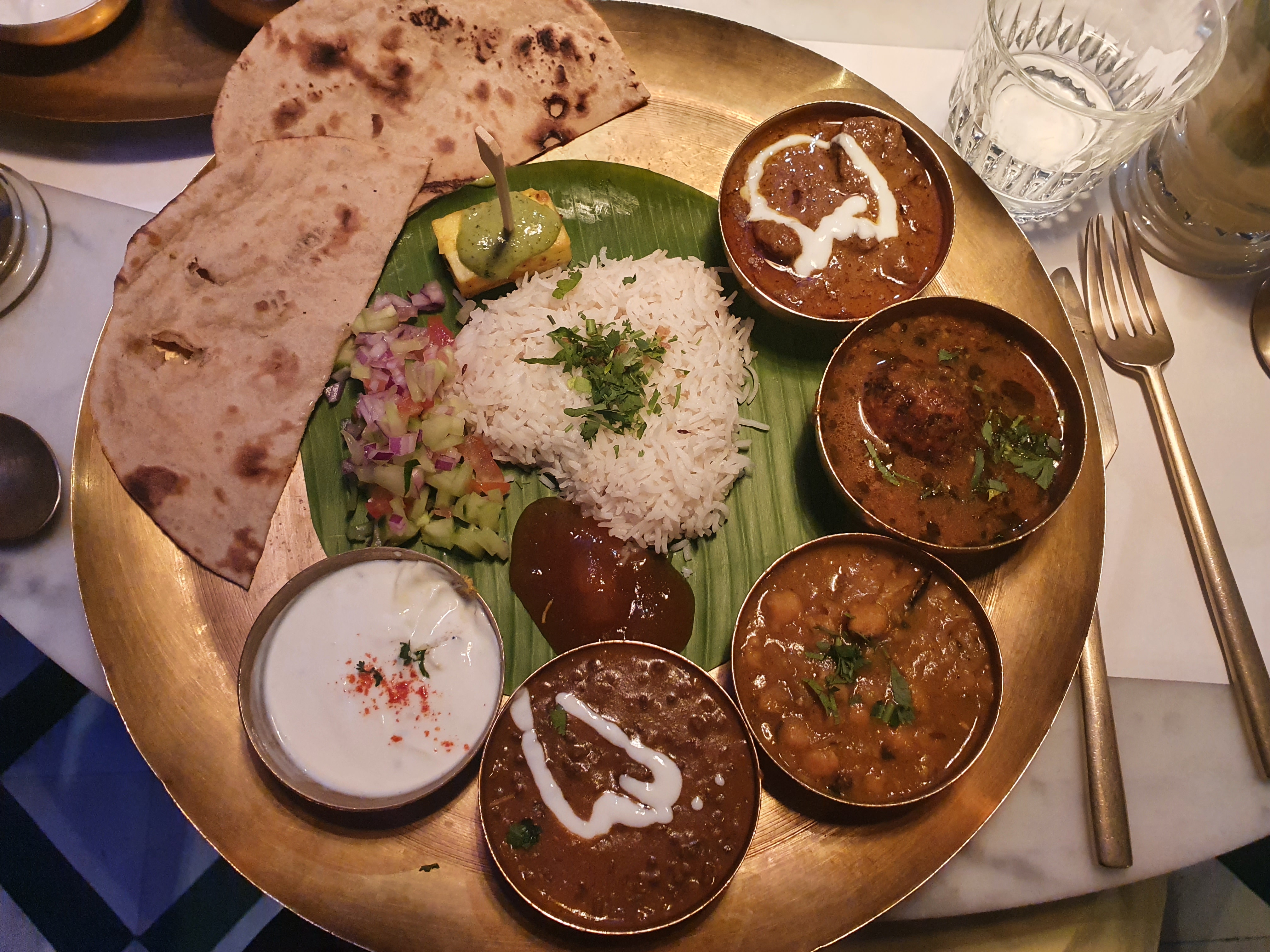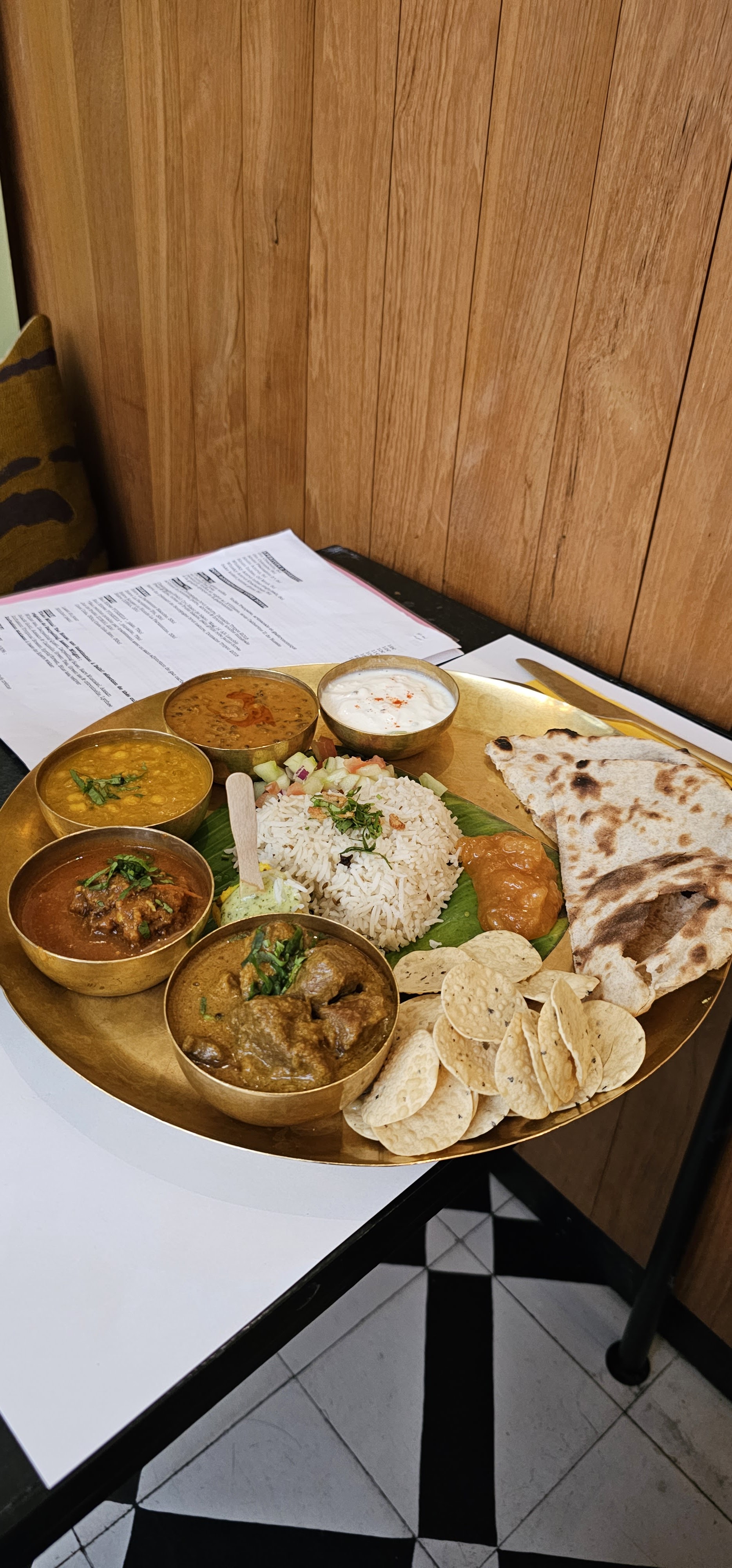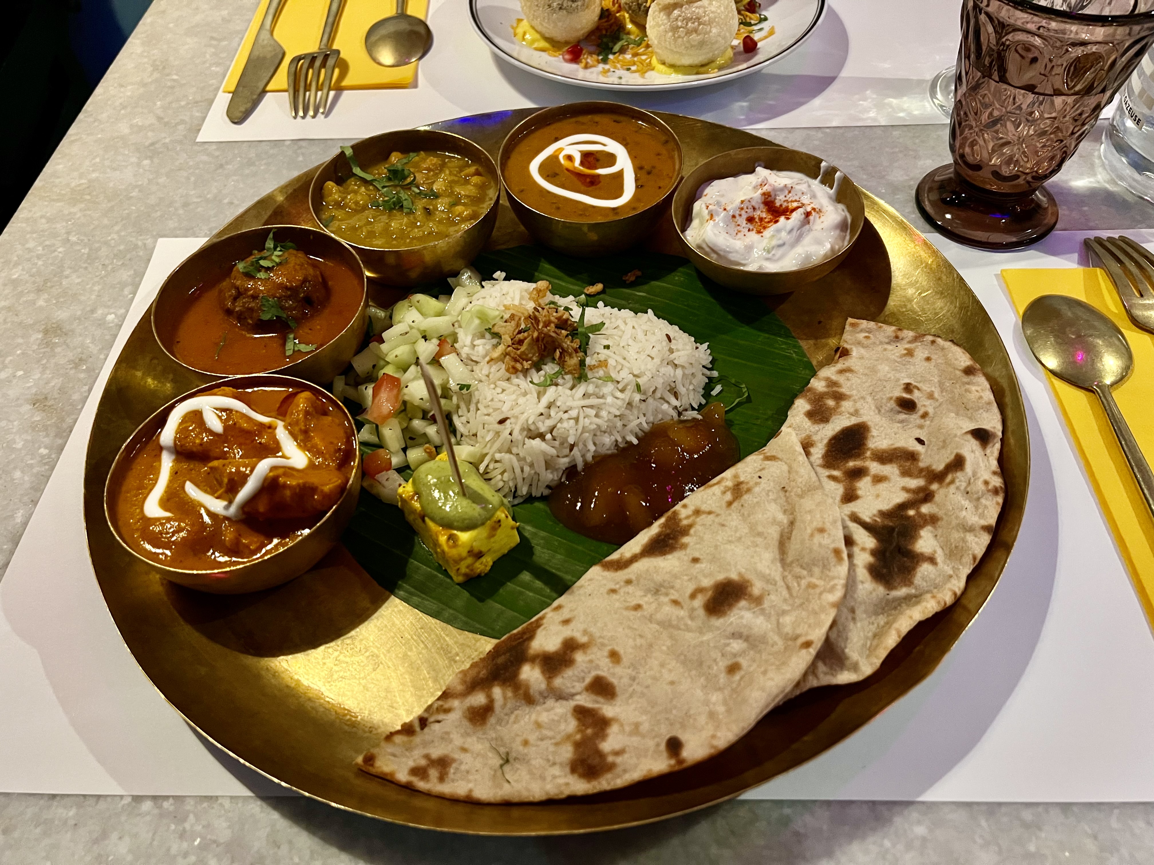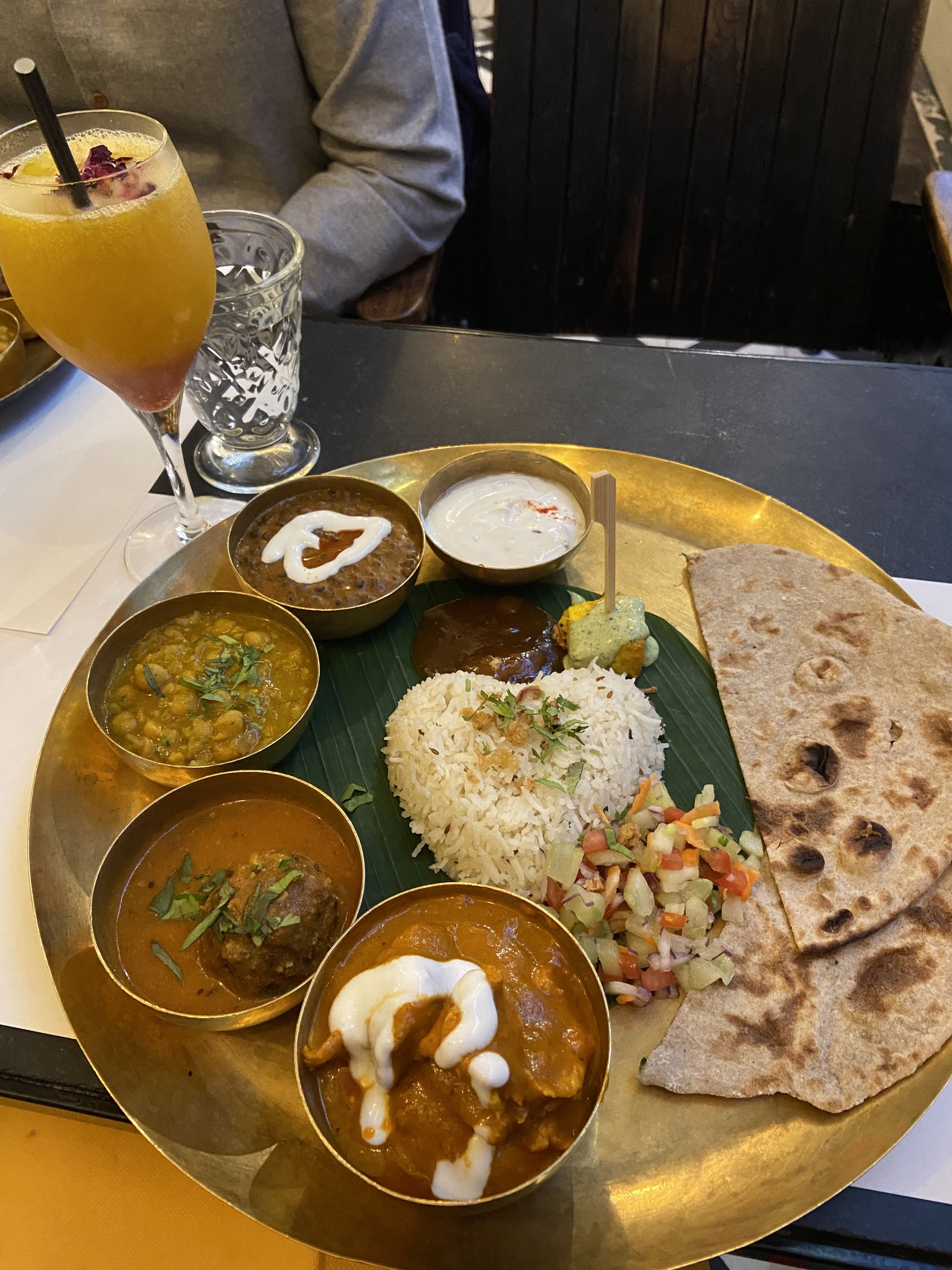 Le thali est une merveilleuse expérience culinaire de la cuisine indienne avec une touche française. J'ai pris le plat végétarien et j'ai été impressionné par la saveur et la qualité des plats. Je peux le recommander pleinement!