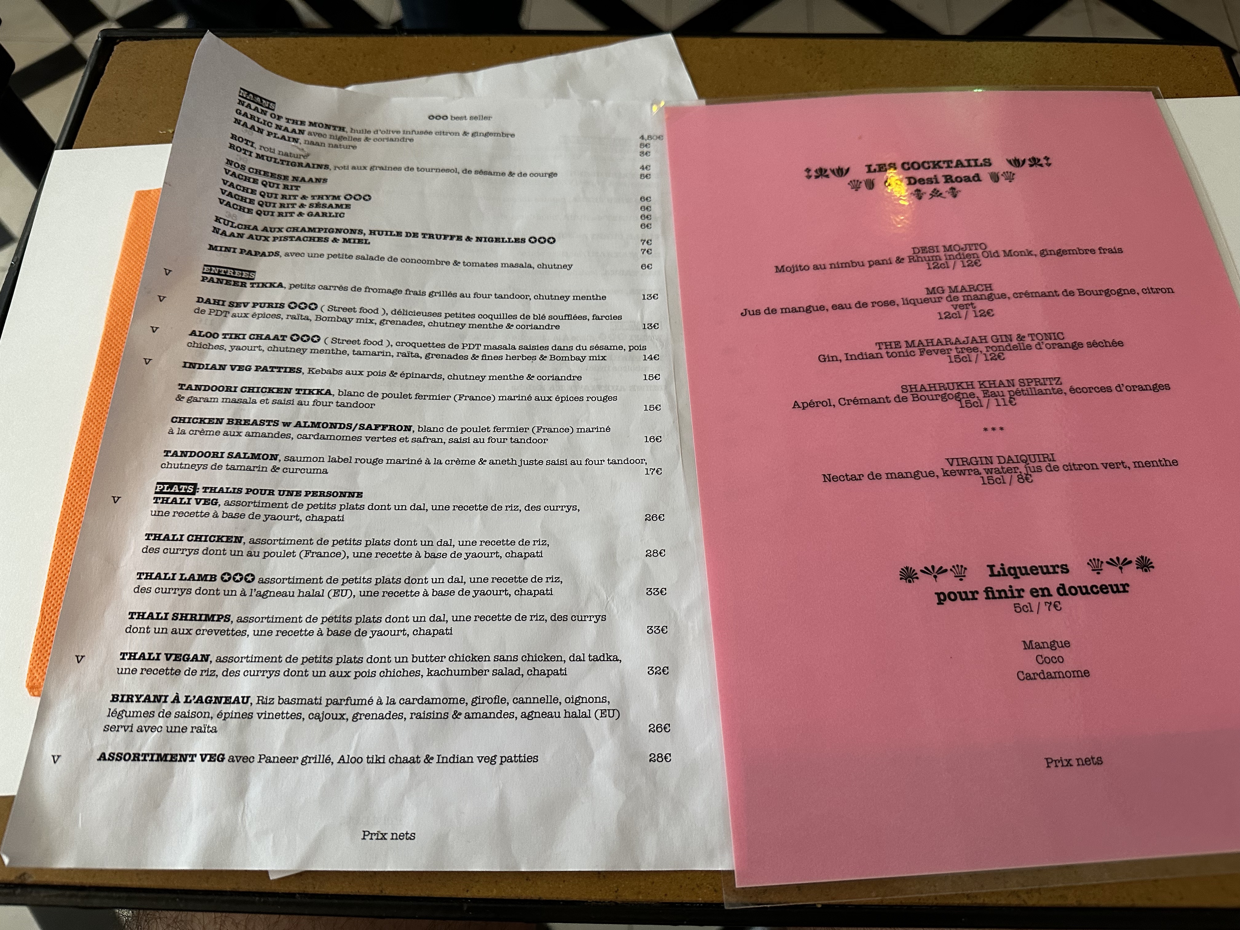 Après MG Road, nous avons testé Desi Road. Un indien dans un cadre sophistiqué, une ambiance plus parisienne, mais une cuisine typique et bonne
