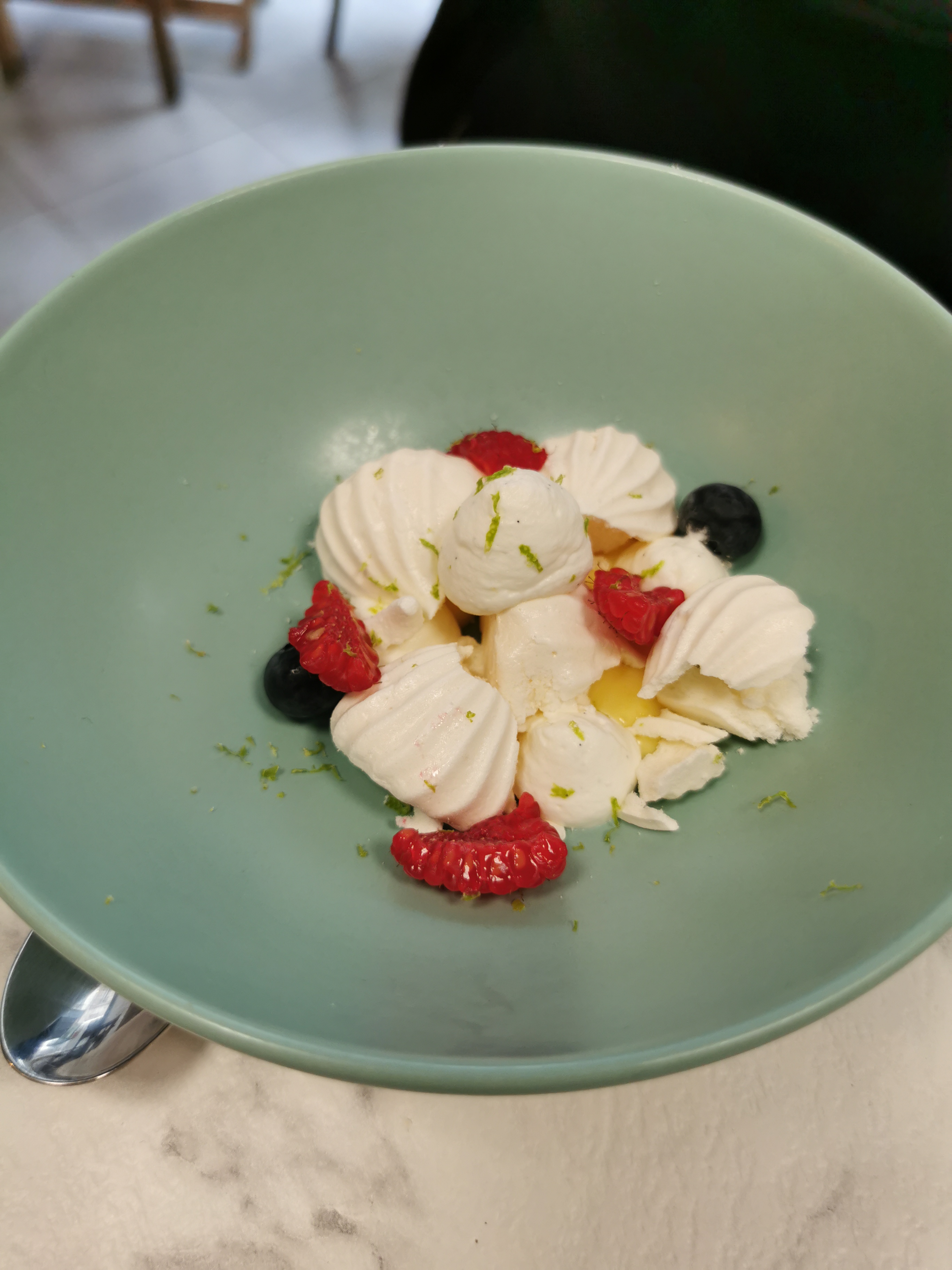 Brunch délicieux et complet, parfaitement bien équilibré et dosé ! Mention spéciale aux oeufs et à la pavlova déconstruite. Le mobilier gagnerait toutefois à être un peu plus cosy pour un brunch :)
