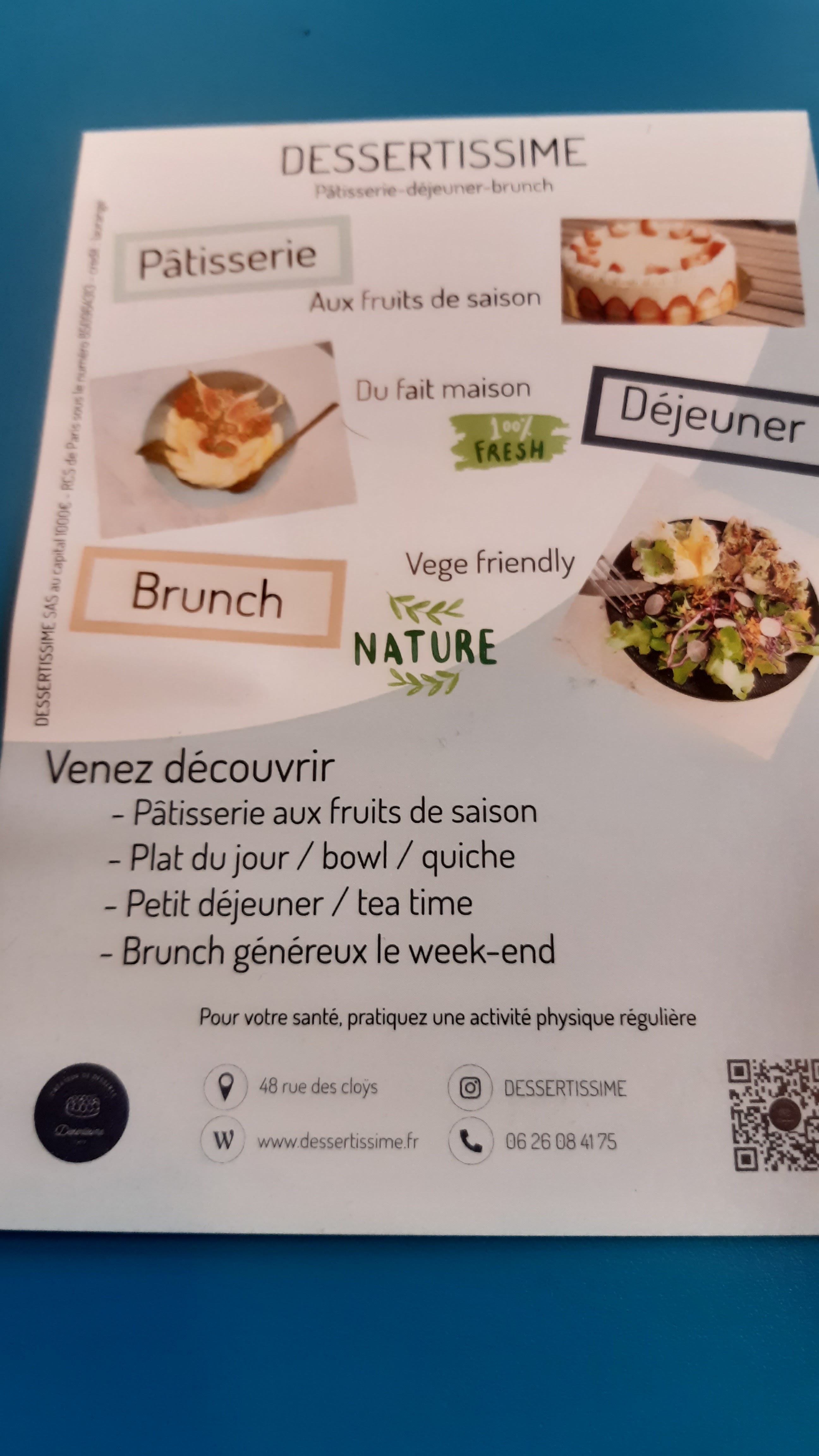 Je recommande à 1000% De passage à Paris nous avons réservé une table un peu par hasard chez dessertissime. Un vrai régal, des produits frais, du fait maison et un brunch bien copieux, sans parler de l’accueil plus que chaleureux! Le tout pour un rapport qualité/prix défiant toute concurrence. Bref, foncez!!