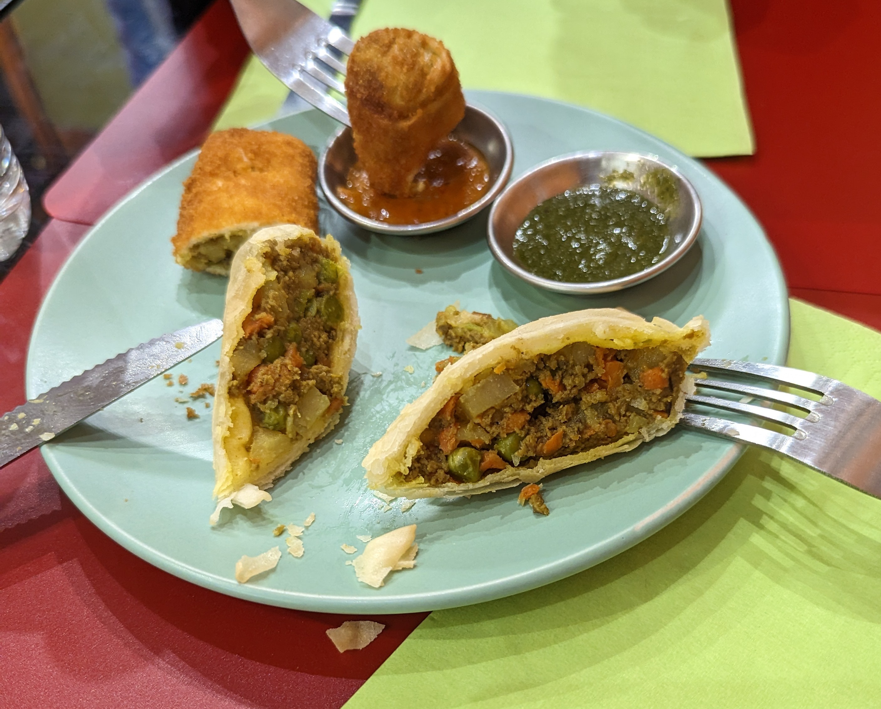 Pakoras, bhajis, samoussas et paratha succulents et accueil adorable à chaque fois. Les saveurs Indiennes comme si on y était. Plusieurs petites tables à dispo pour manger sur place