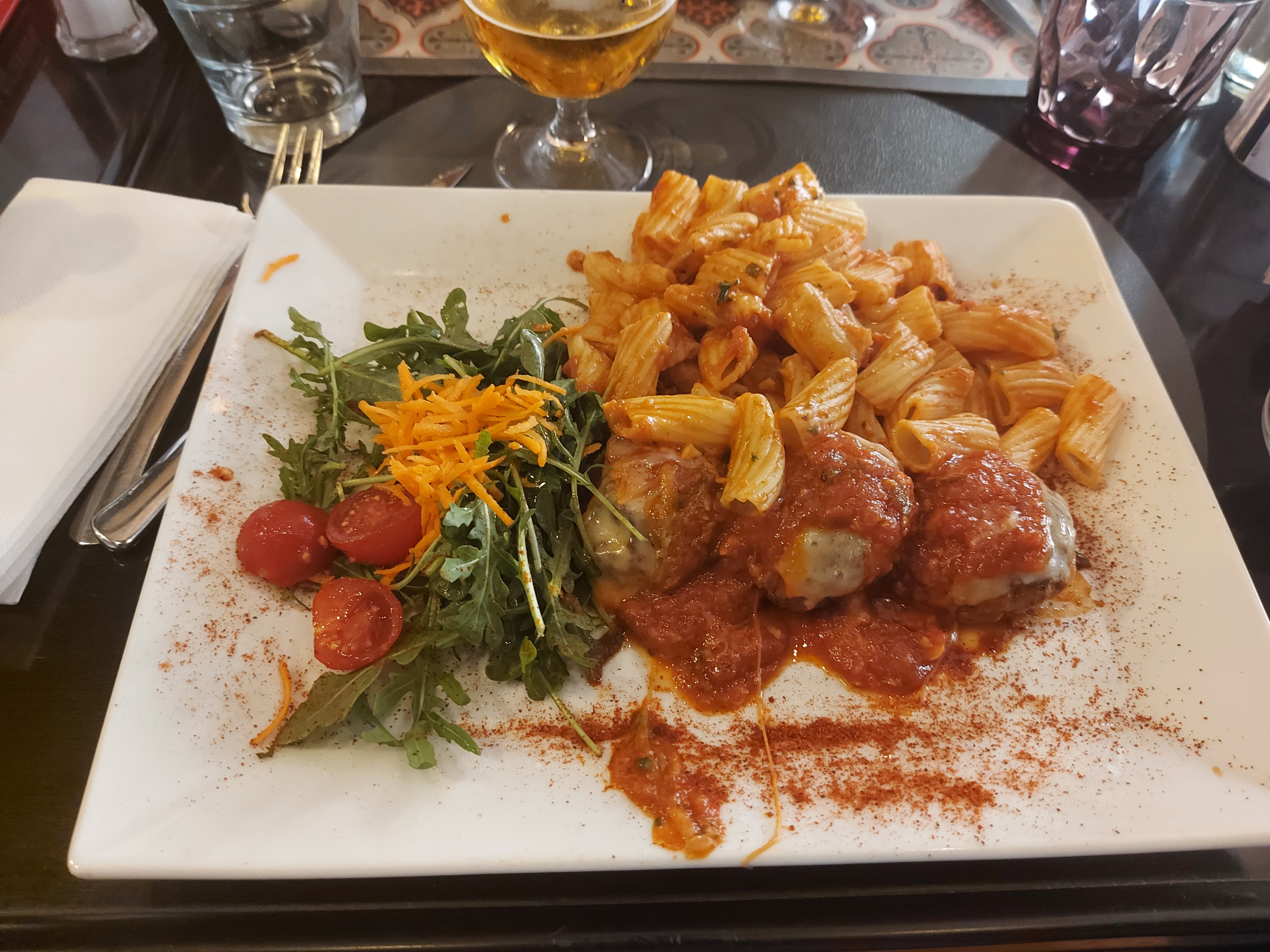 Accueil: bon Ambiance: agréable Pâtes: pas cuites ! Si vous avez du mal à digérer ne prenez surtout pas de pâtes. Elles ont l'aire appétissantes mais sont trop épaisse pour le peu de temps de cuisson.