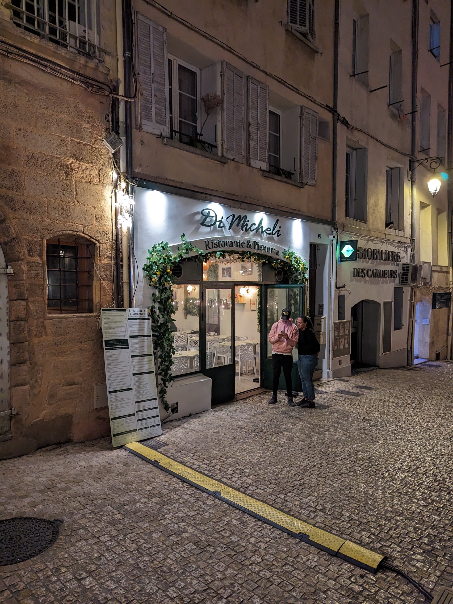 Quel dommage car ce restaurant semble proposer de bon produits à consommer. Mais le service est déplorable, très lent et sans souci de satisfaire le client (erreur dans la prise de commande, il manque une pizza au moment de servir et on a fini par en partager une à deux car pas de réponse apportée par le serveur, une demi-heure pour servir une grenadine, pas de parmesan ni de pain proposé). A notre avis, il n’y a pas que le service qui pêche, il y a un vrai problème de débit en cuisine (il n’y avait que 4 tables à servir, et on a attendu notre commande incomplète plus d’une heure). Enfin bref, ça a failli nous gâcher notre journée à Aix.
