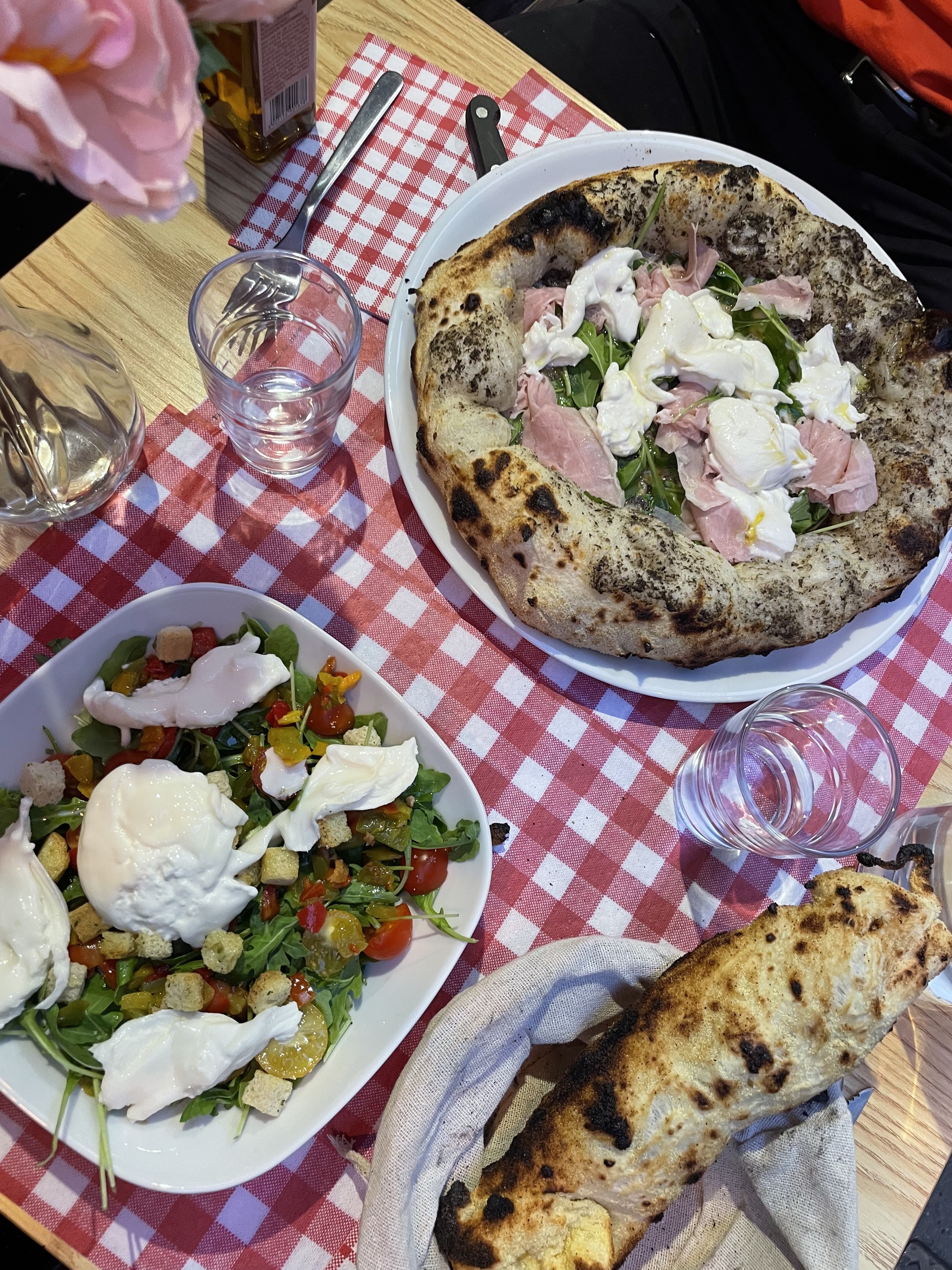 Trop de pate pour la pizza, une burrata sans saveur qui ressemble à une mozzarella de supermarché, et un désert des anges énorme même pour 2. Dommage que l'on nous au pas prévenu avant ça nous aurait évité d'en prendre 2.