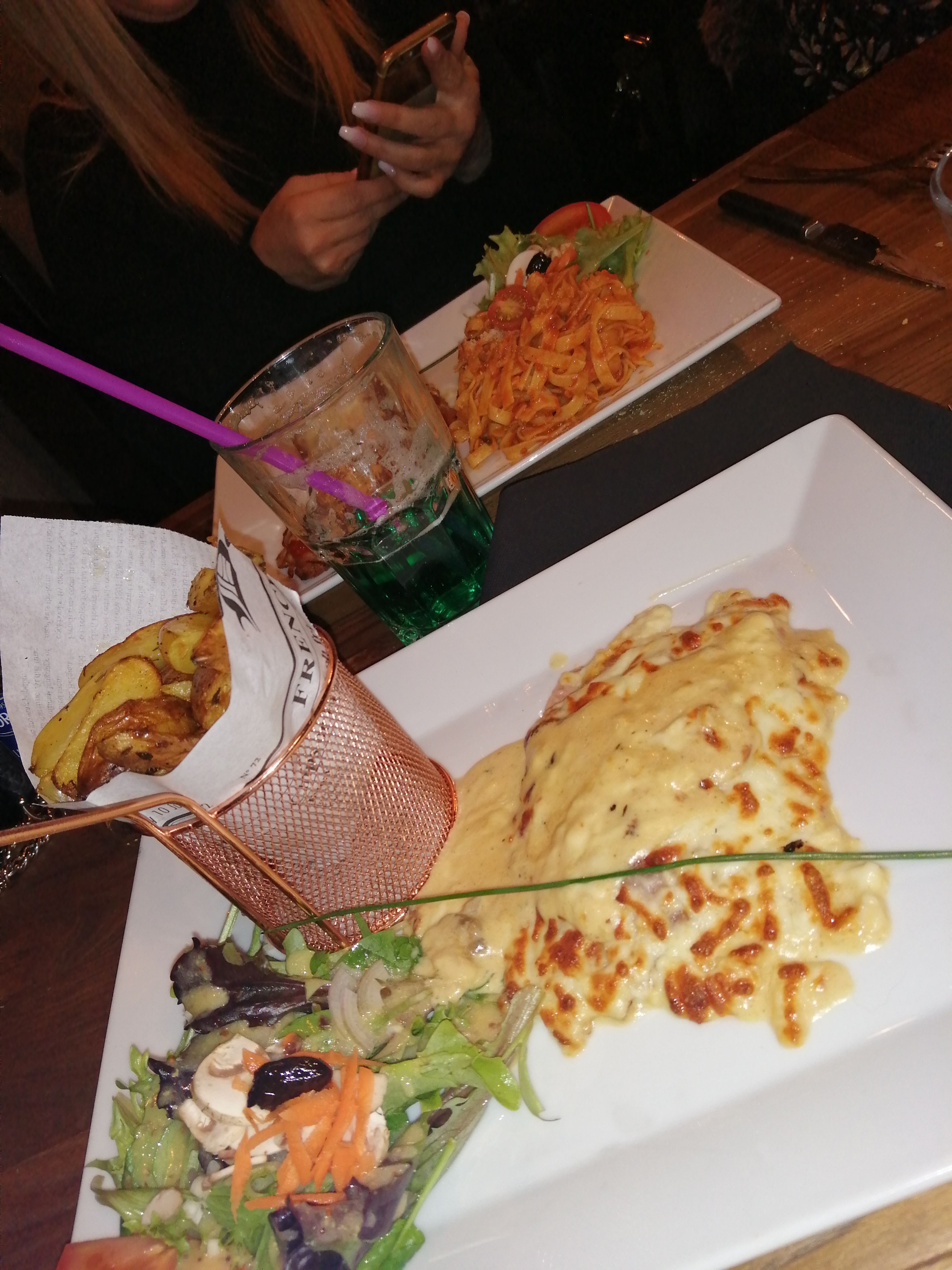 Cet avis est un ressentis personel de mon expérience. Alors. J’ai été un lundi soir. La chose qui m’a un peu frapper et qui a des répercutions sur le reste. C’est que la serveuse était seule. Donc prise de commande, préparation des cocktails, service debarrassage des tables. Donc déjà. On sens le stress des l’arrivée. Qui embrasse trop! Mal étreint. Service un peu long. On a pas été servis au même moment du coup certain mangent. D’autre attendent. Niveau plat : tout était très bon. Pâtes au saumon. Lasagne (un peu trop forte en tomate) , mix grillade , côte de bœuf escalope de veau avec charcuterie (pas trop aimer) on me l’avais recommandé et plateau de friture (moyen). En tout cas la serveuse a fait de son mieux. Et merci à elle. Addition salée. Un peu cher je trouve.