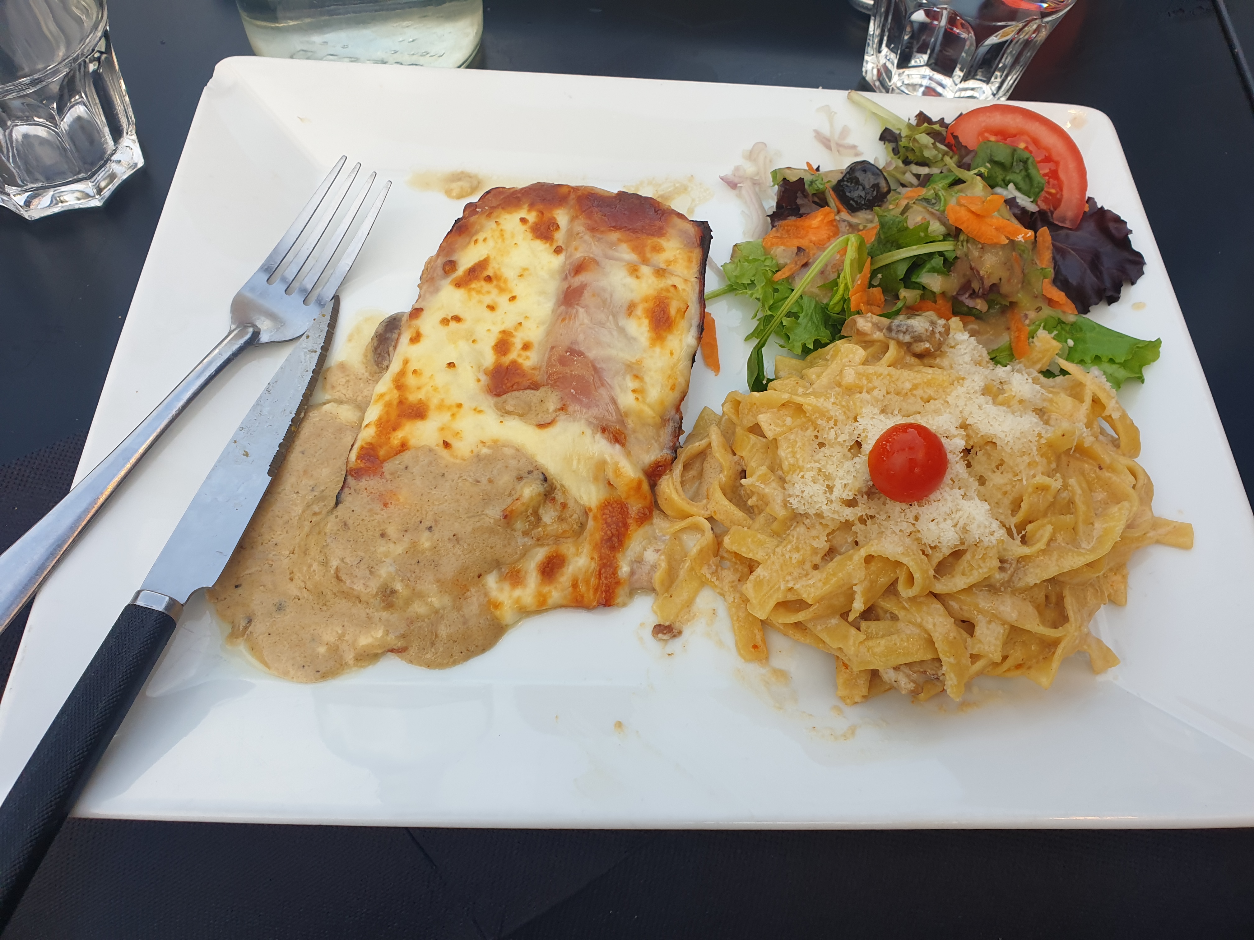 J’étais déçu par la sauce champignons qui semble industrielle Mon plat risotto aux fruits de mer était moyen, pas très varié : juste quelques moules et du poulpe ( moyenne gamme) Les pizzas par contre étaient bonnes. Il faut faire un effort pour le reste