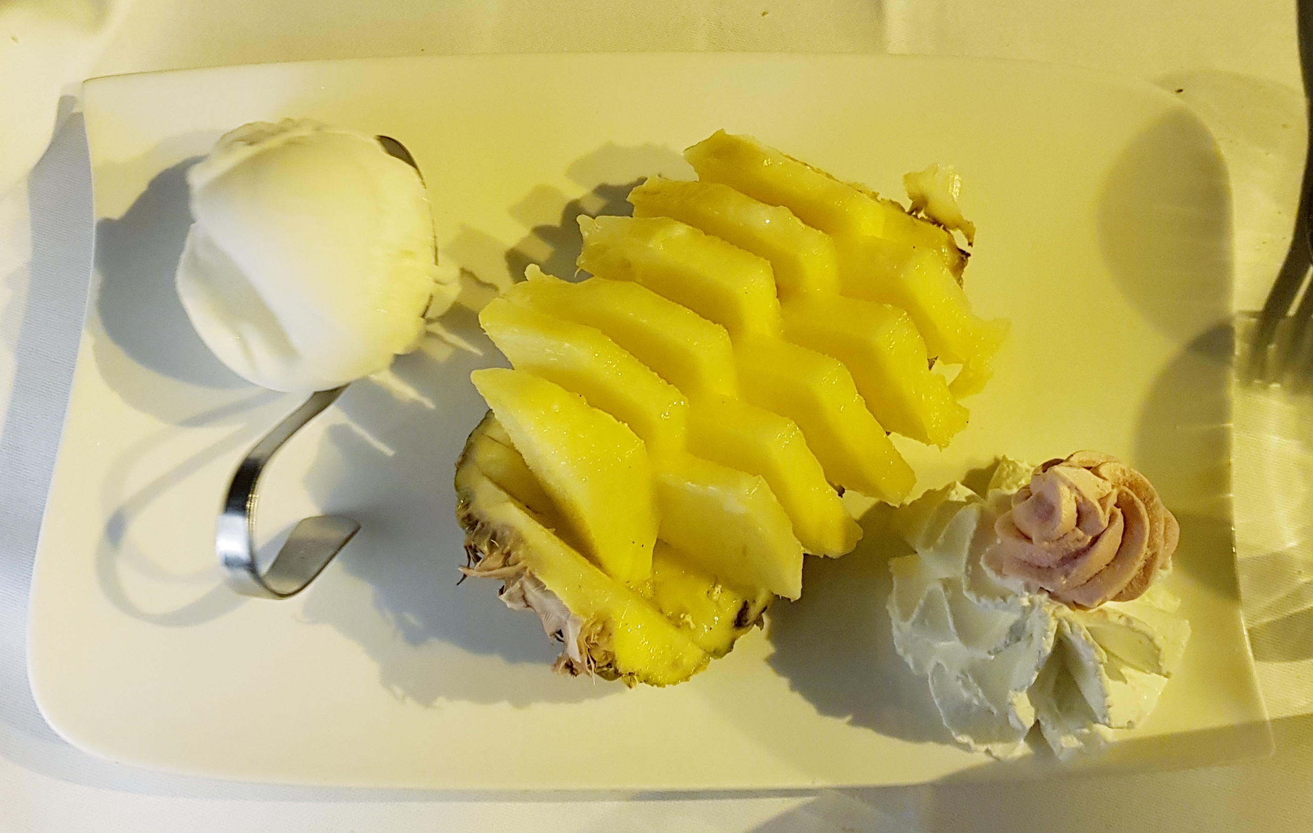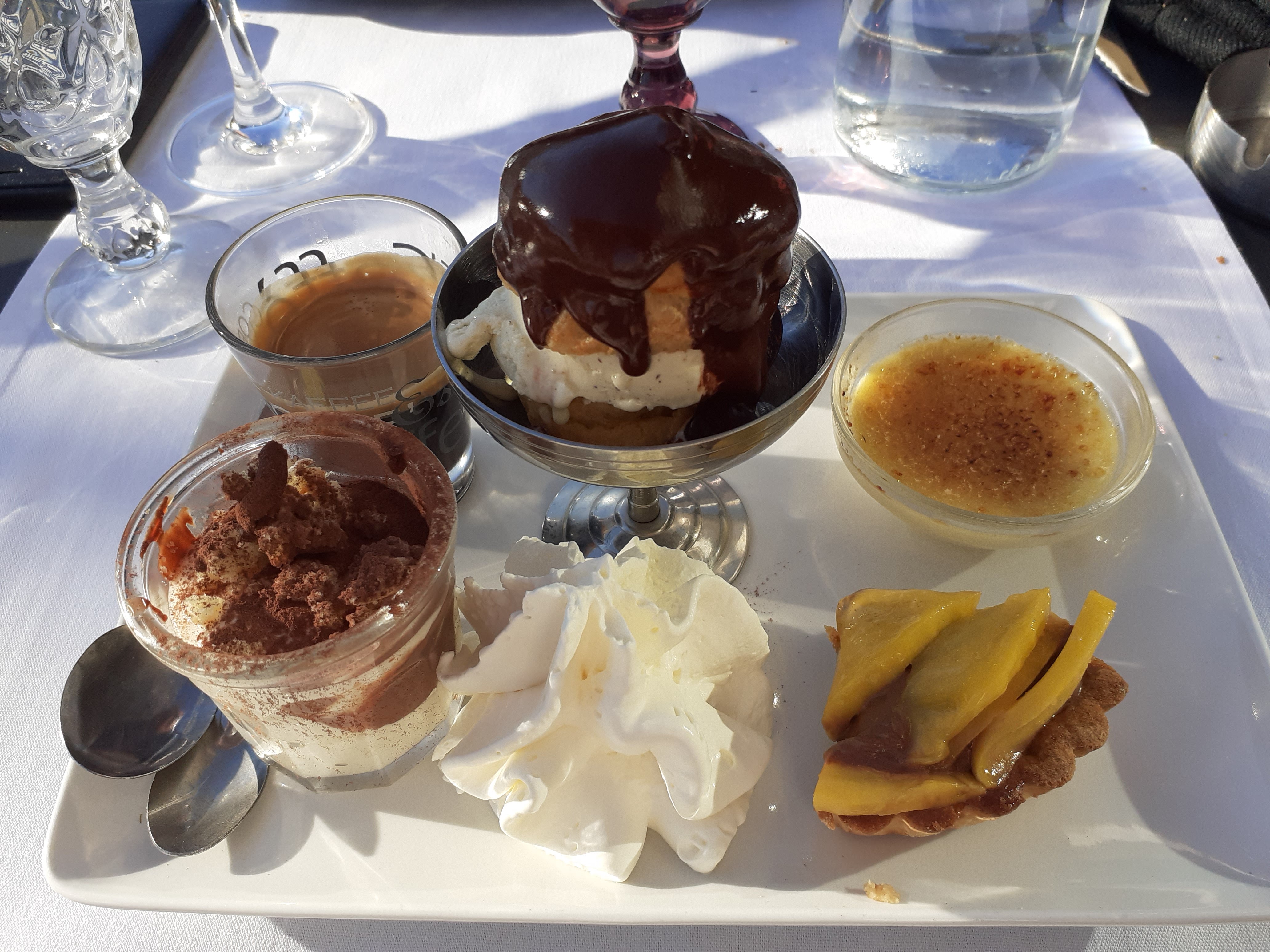 Le plat était très bon. Quant au dessert, une pavlova à 9e50, la meringue était très dure, la chantilly en bombe de supermarché et la glace vanille : du bon marché. Cher pour un dessert de mauvaise qualité !