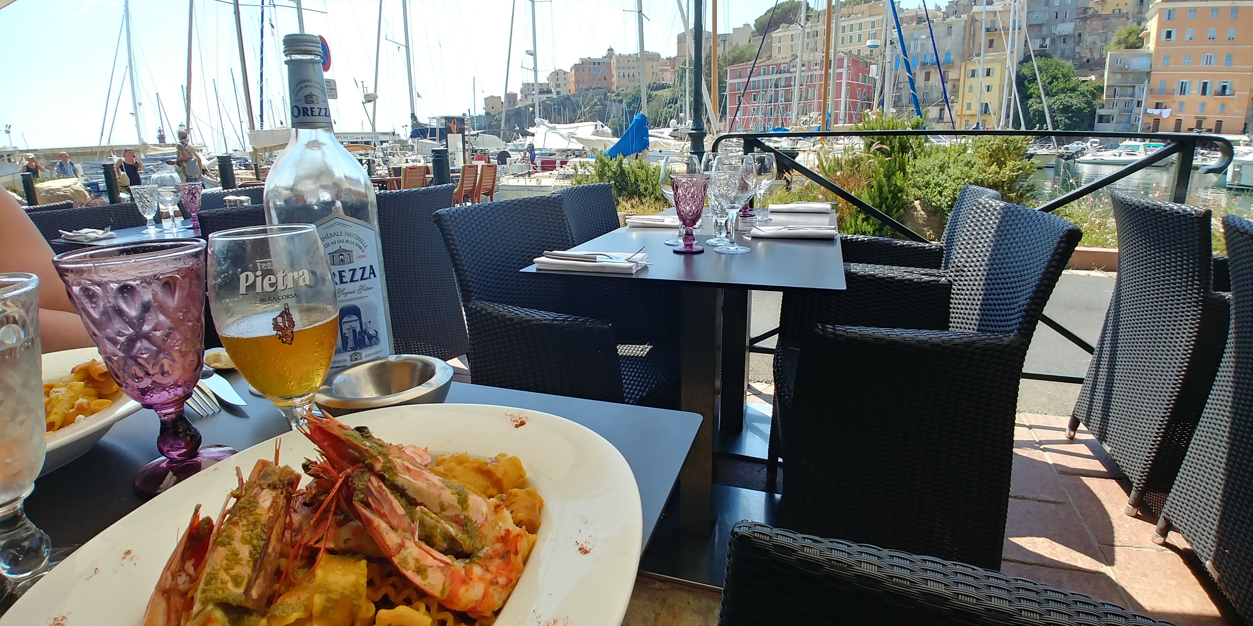 Nourriture ok mais sans plus. Si vous ne prenez pas le menu c'est fort cher, 80 euros pour une entrée a partager et un plat chacun. Pâtes aux fruits de mer correcte mais gambas trop cuite, pièce de veau corse servie bleue alors que cuisson demandée rosée et la sauce du plat était froide. La vue est belle mais pour ce prix on mange mieux dans d'autres restaurants voisins.