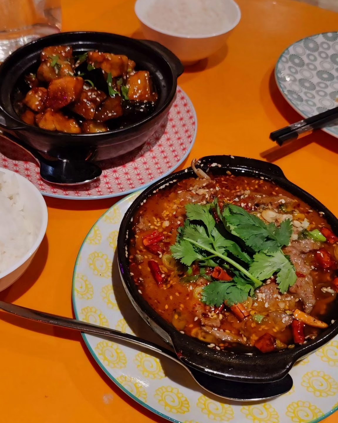 Je recommande les aubergines bien caramélisées et bien fondantes accompagnées de la marmite de bœuf sichuan En entrée la galette ciboulette est également bonne avec le houmous de edamame Je recommande ce restaurant