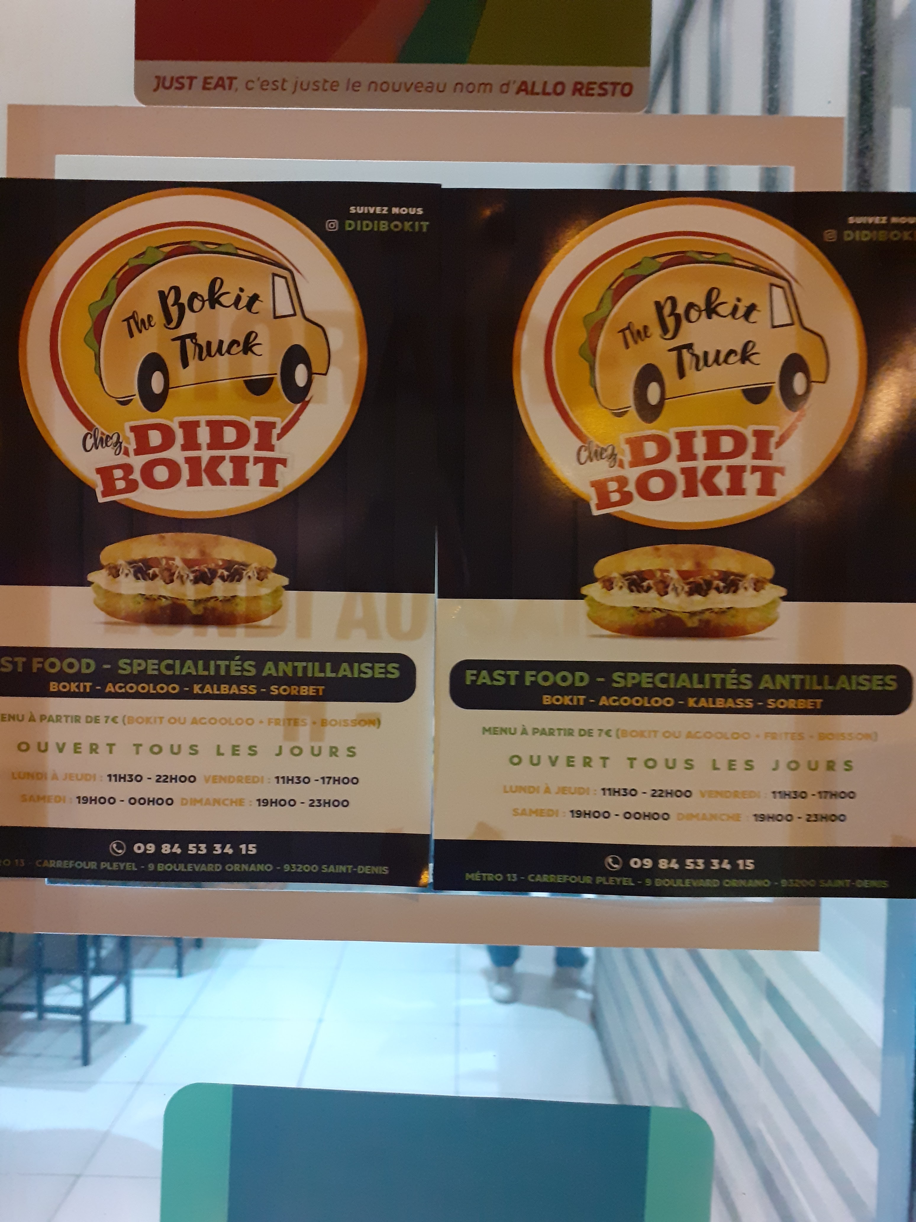 Mon chéri et moi nous étions de passage dans le 93 après 4h de route ont avait envie de manger quelque chose de chez nous un bon gros bokit du coup recherche sur Google et direction didibokit franchement c'était super bon surtout les frites patate douce Une tuerie 🤤🤤 c'était tellement bon qu'on a repasser commande le lendemain. Nous reviendrons à l'occasion d'un prochain weekend sur Paris.