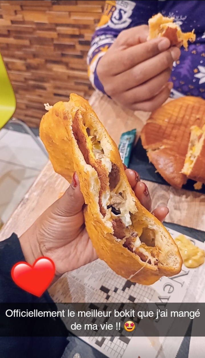 J’ai été avec mon mari et ma fille, on a tous aimés les bokits , frites et chichis . On s’est tellement régalés qu’on ne pouvait plus manger tellement qu’on était calés. C’était tellement bon qu’on a acheté d’autres bokits pour emporter chez nous. La pâte est très bonne rien a dire , le pain bien garni comme aux Antilles. Je vous recommande vivement !