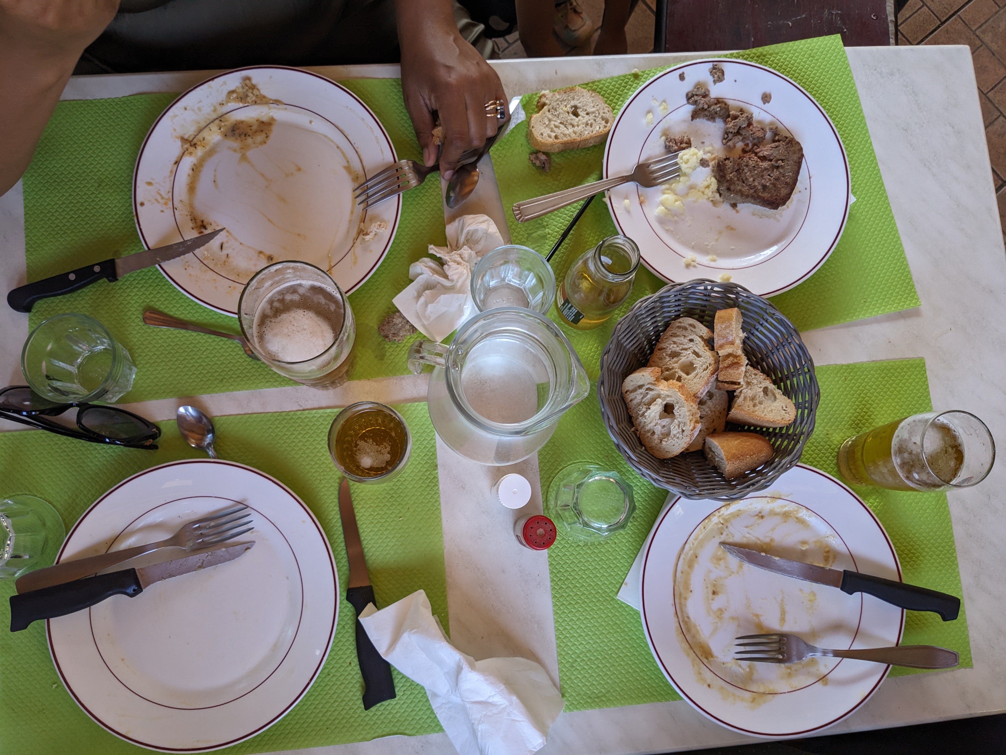 Ce soir, j'ai mangé au Did Rock Cafè. Toute la semaine, j'ai cru que le restaurant était fermé, mais l'entrée se fait par les escaliers à droite des portes fermées. On y sert un menu simple, mais pour le prix, un bon menu à trois plats, sans chichis. Le service est bon et amical. Le vin régional des Cévennes n'est pas excellent, mais c'est la même chose dans tous les restaurants.