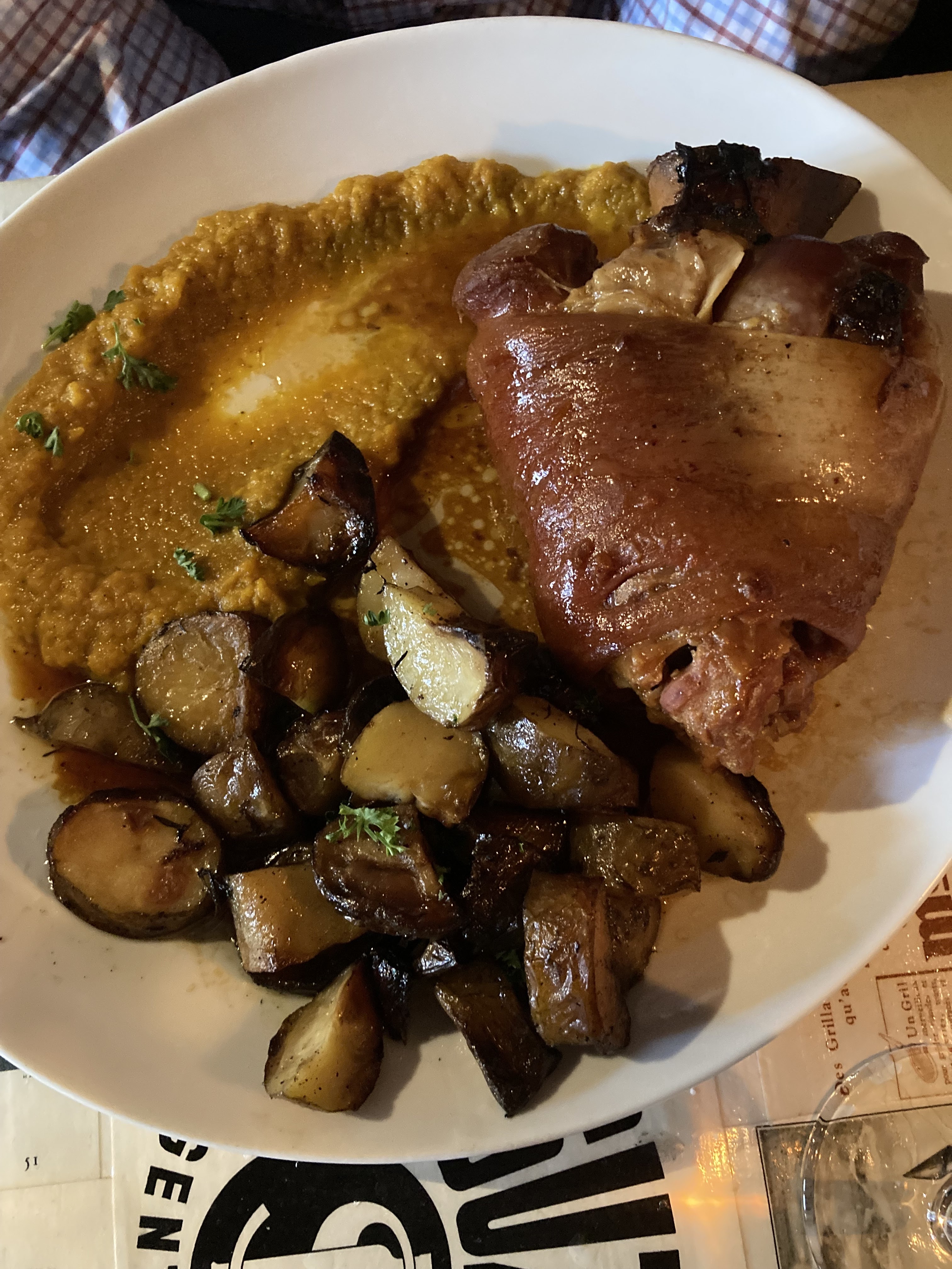 Jarret ultra fondant, un régal, ambiance originale et service sans chichi très sympathique. Le mojito est traitre mais se boit comme du petit lait. Les desserts sont plus classiques. Nous avons passé une très bonne soirée.