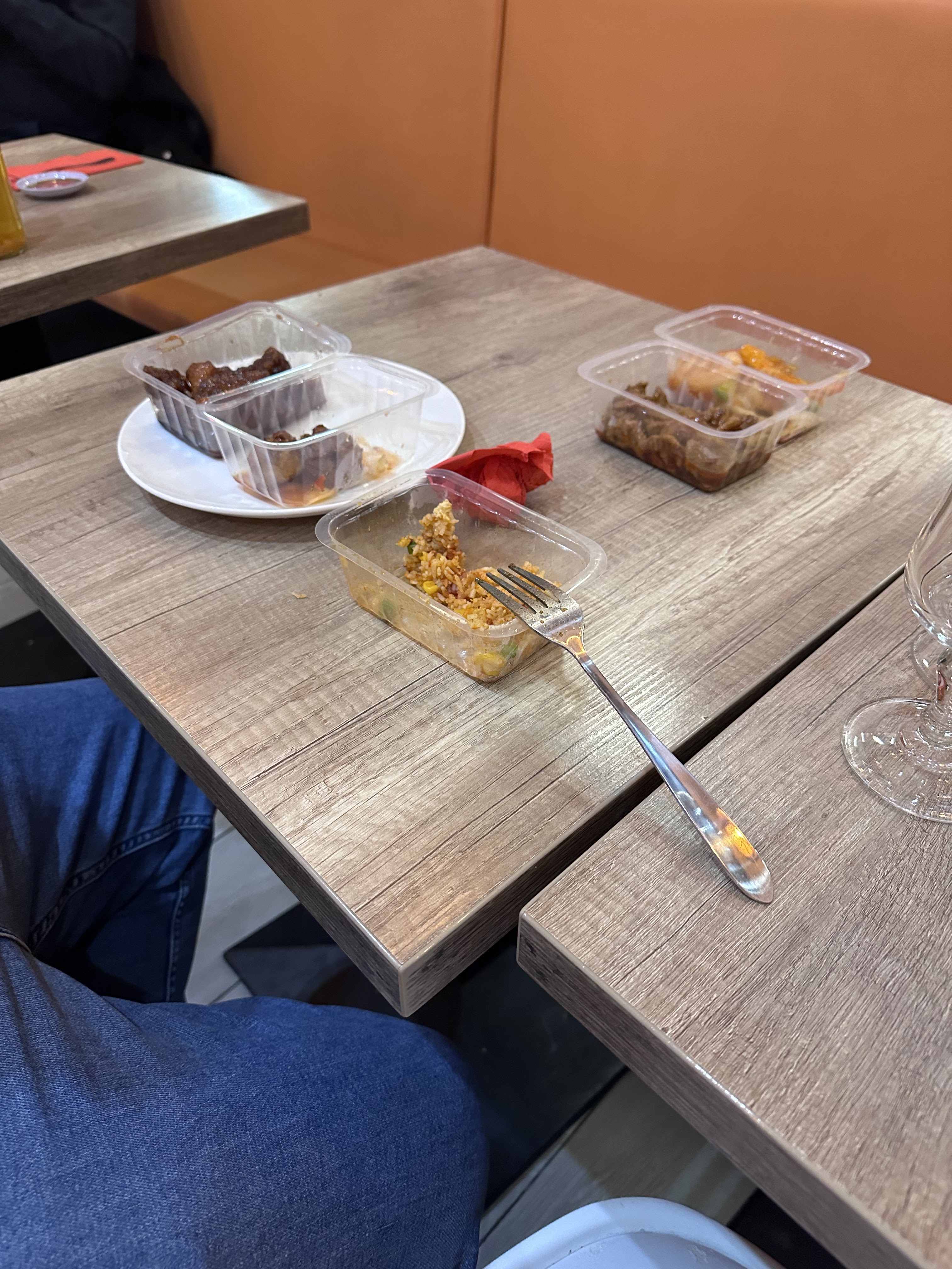 Nourriture médiocre ! Et quand vous prenez de la nourriture chinoise au g. Il ne tare pas leur balance !!!! J’ai fait la remarque la serveuse m’a simplement dit qu’elle allait baisser le prix ! 🤦🏻♀️ a éviter !