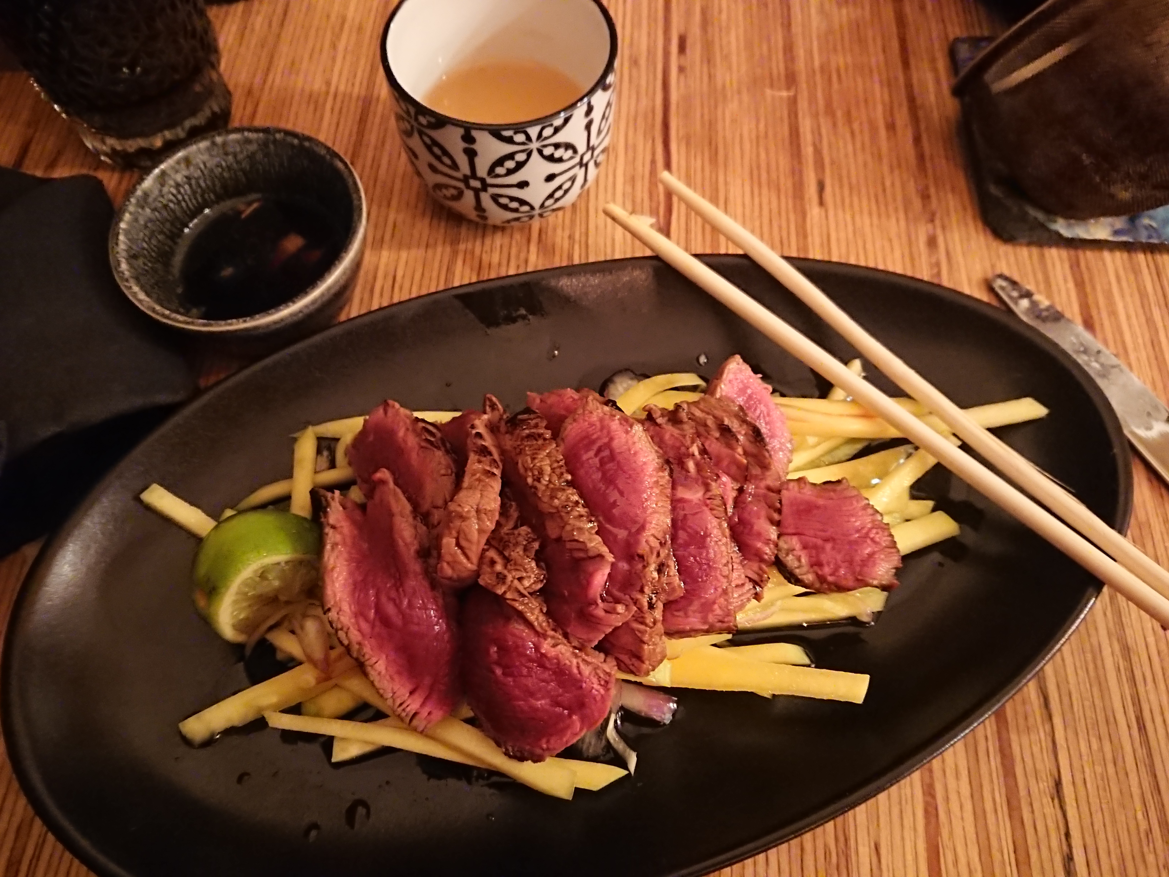 Quand nous venons sur Strasbourg, nous aimons passer au Dim Sum Sam. Cette fois ci nous avons pris un panier de dim sum (mention spécial au Bao bœuf saté et basilic thaï) et un tataki de bœuf très bien assaisonné, accompagné d'une salade de mangue très surprenante. L'accueil est impeccable.