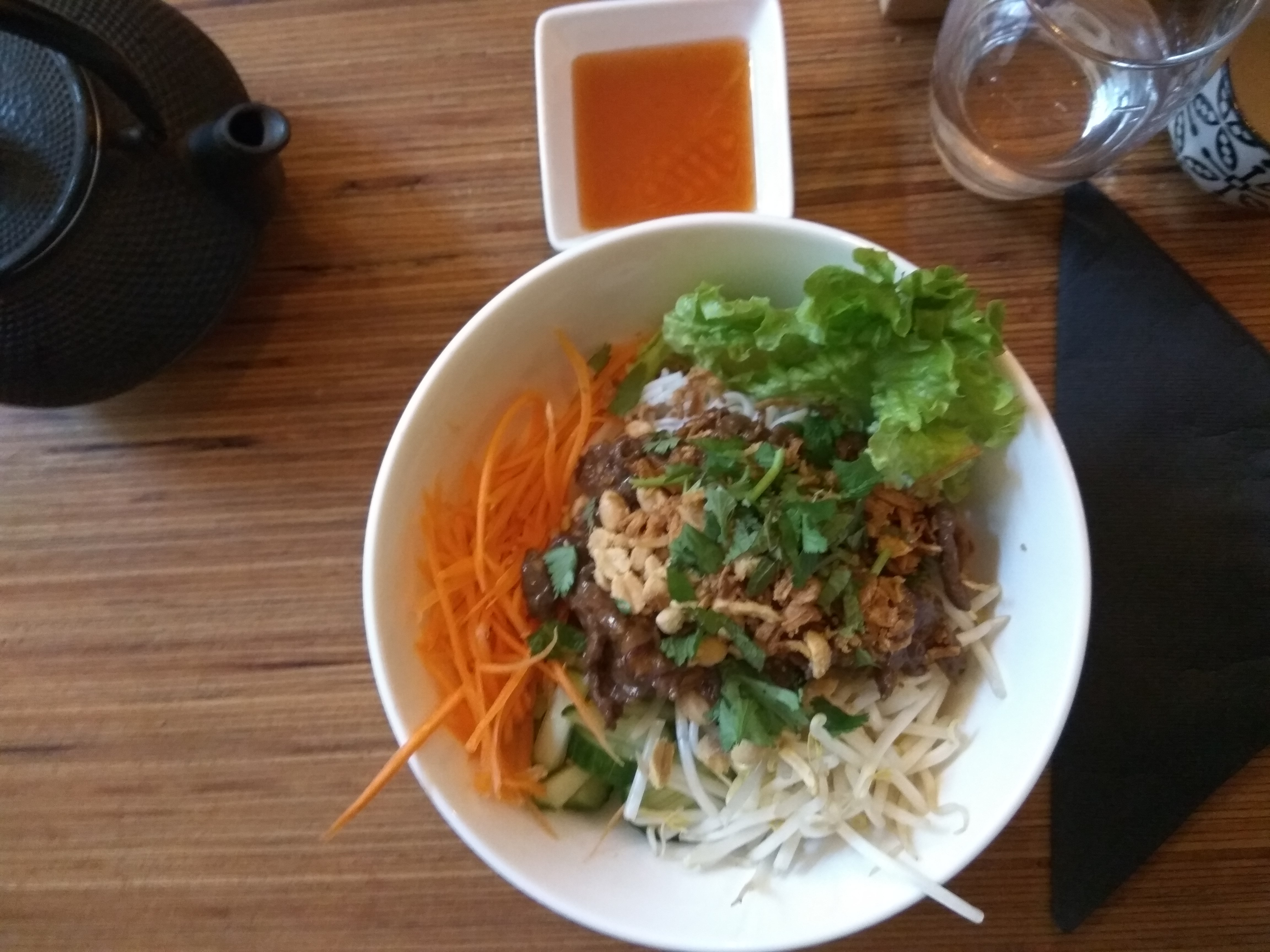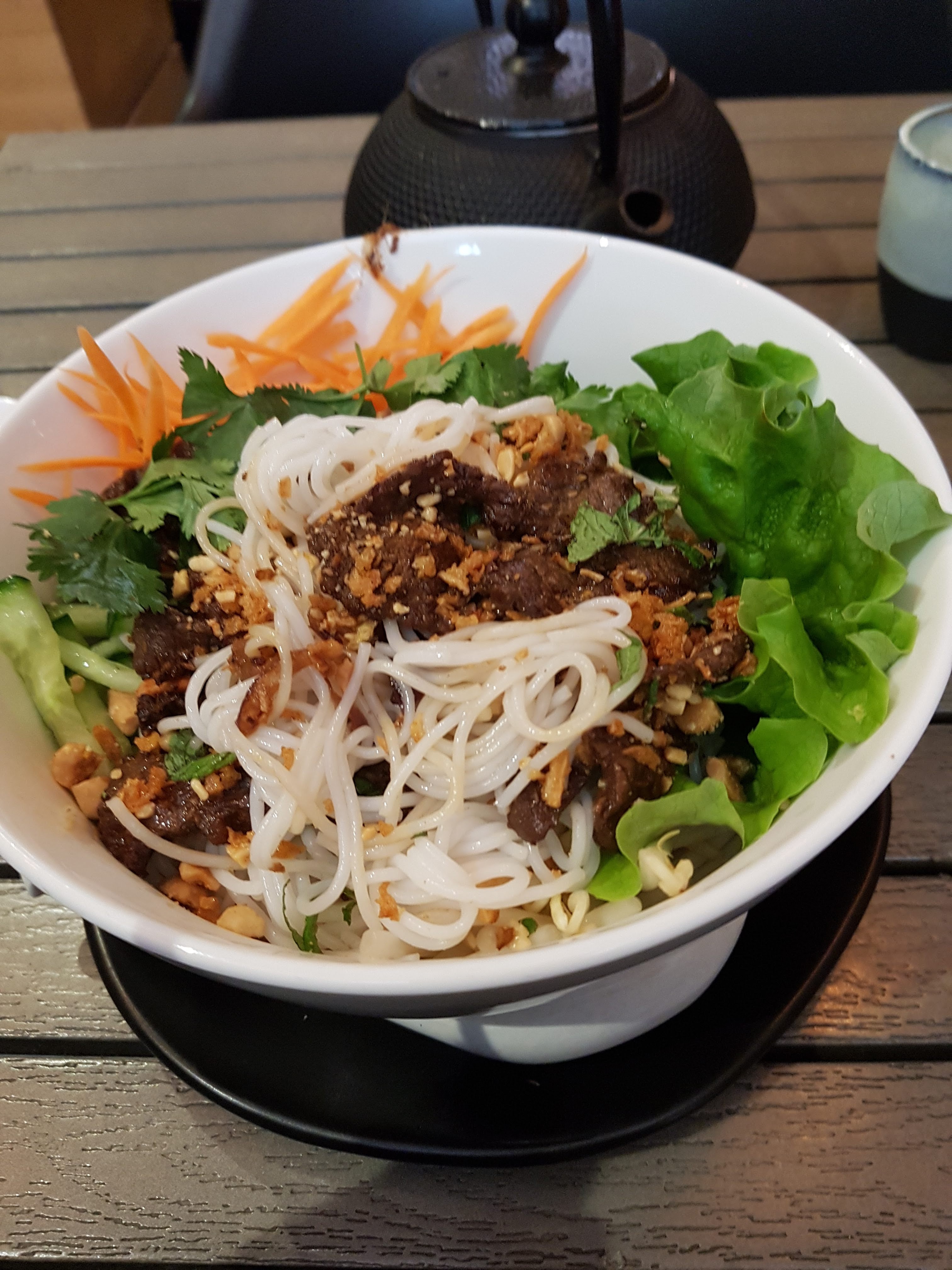 Lieu très agréable. Cuisine goûteuse. J'ai adoré le bo bun du jour. Que du fait maison. La première fois que je mange des perles de coco aussi bonnes.