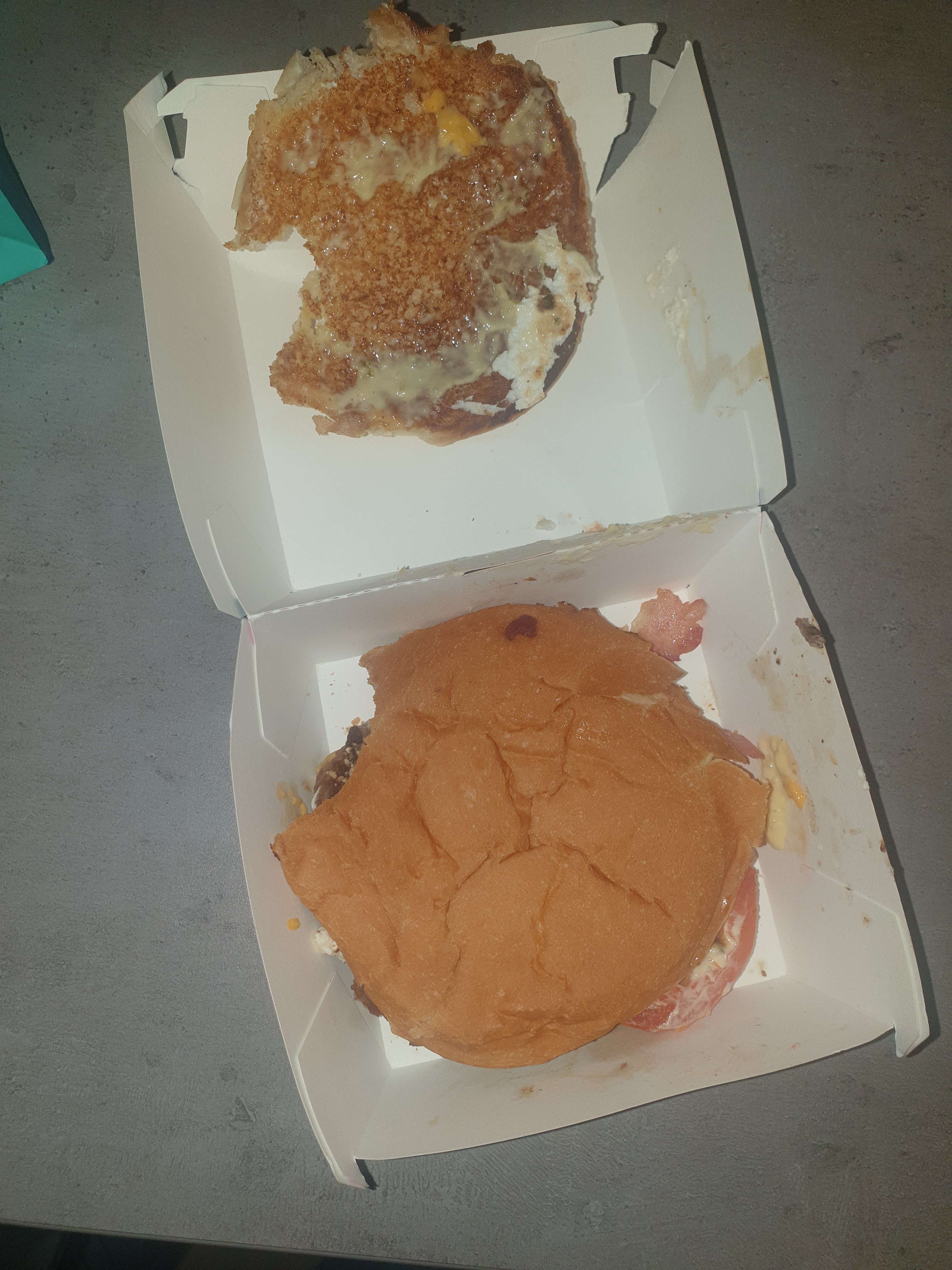 Pain face intérieure cramée steak trop cuit pour ma part mais surtout après 1h d attente pour être livrée..frites et burger froid..pas cool