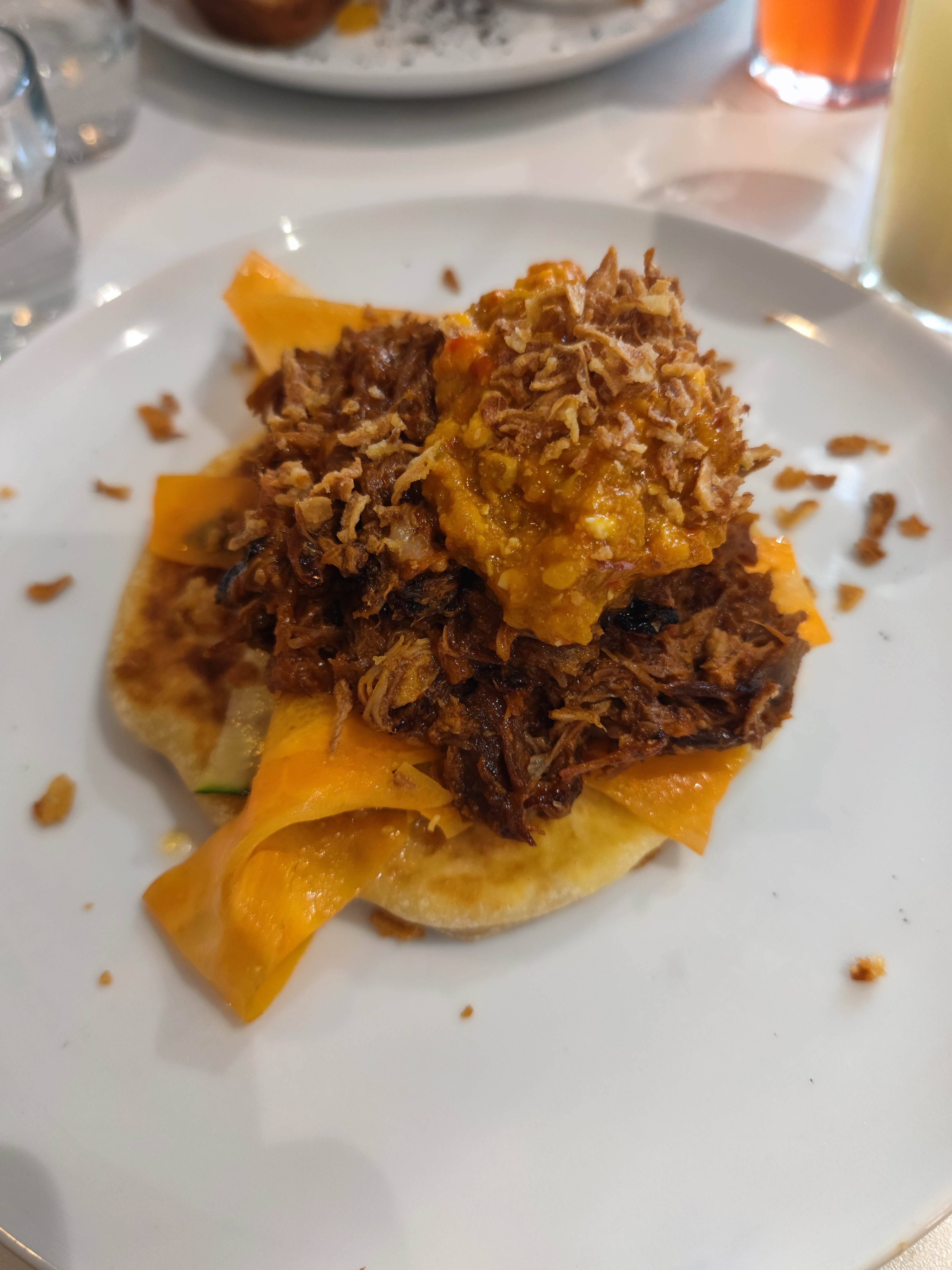 Pour une première expérience c'est excellent, je recommande le plat pulled pork corn flakes et tapioca cheddar, toutefois les tables à l'entrée sont bruyantes.