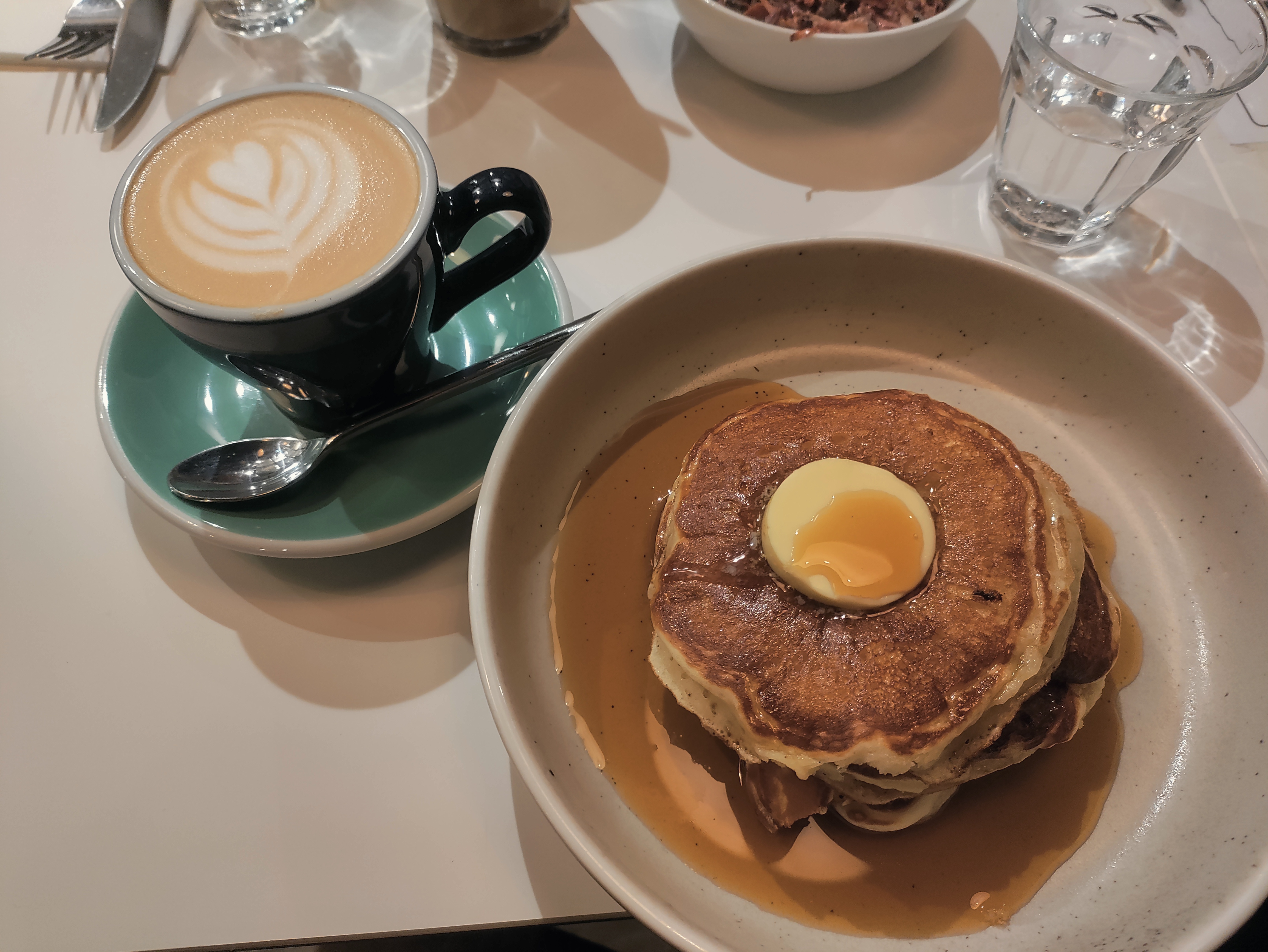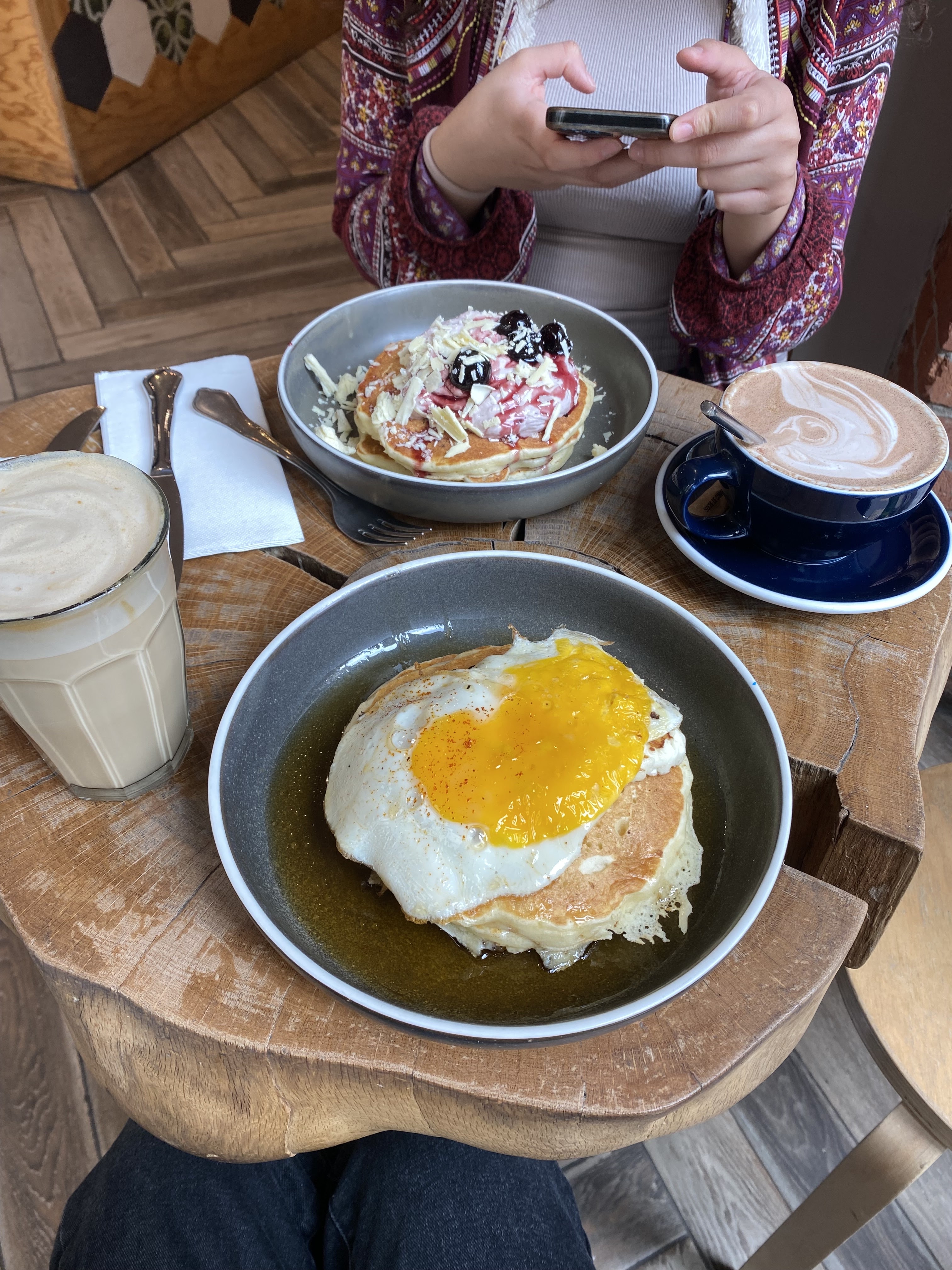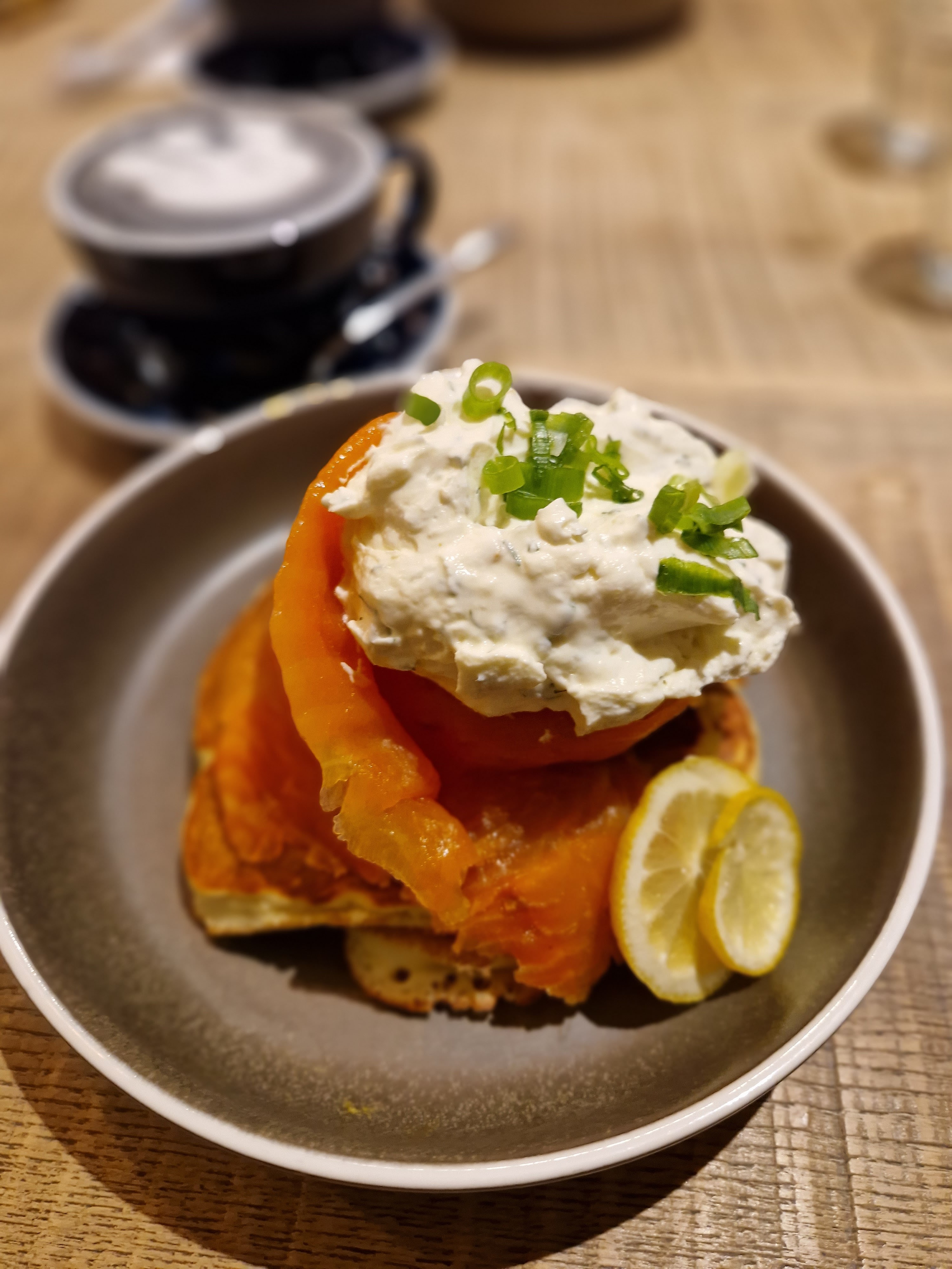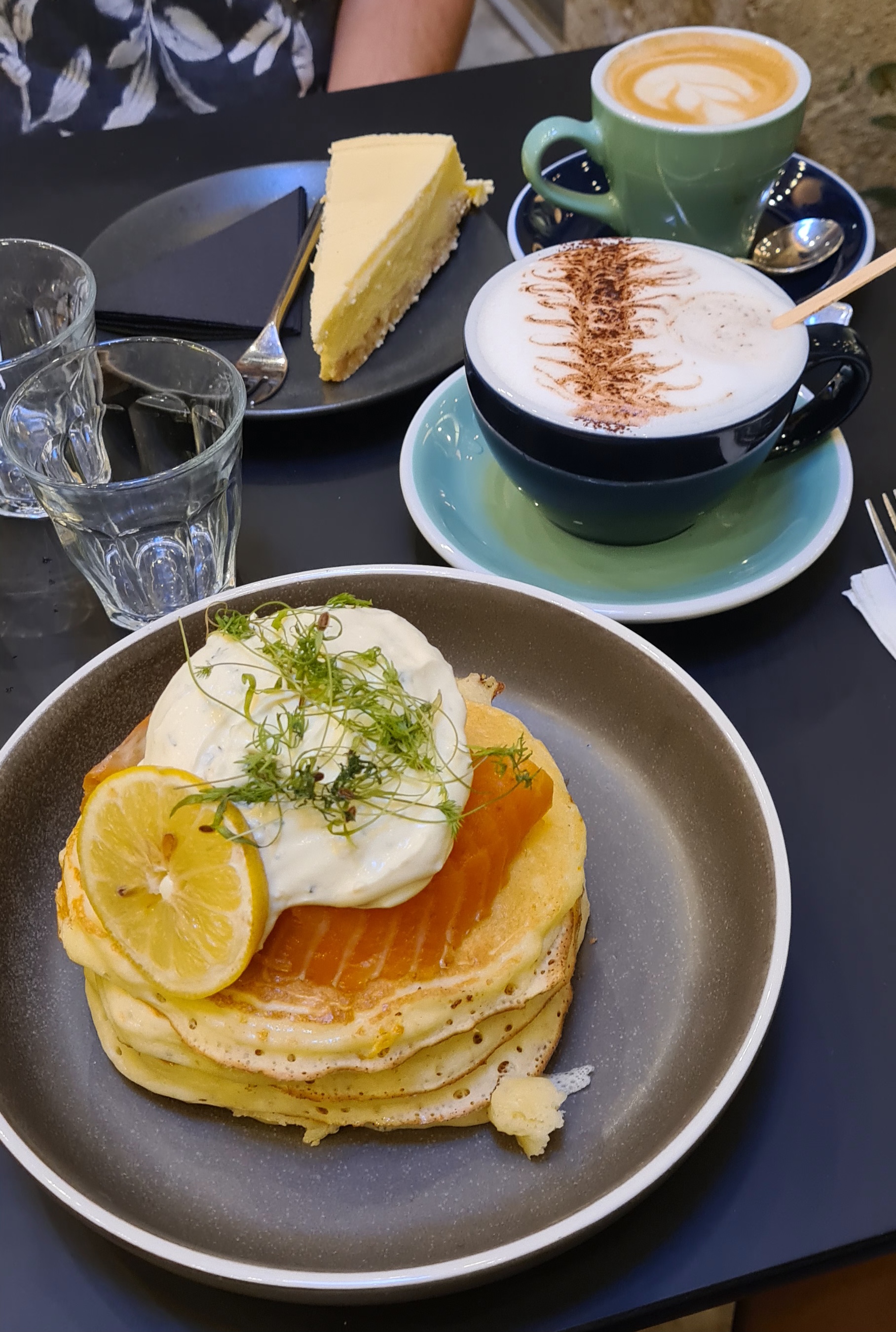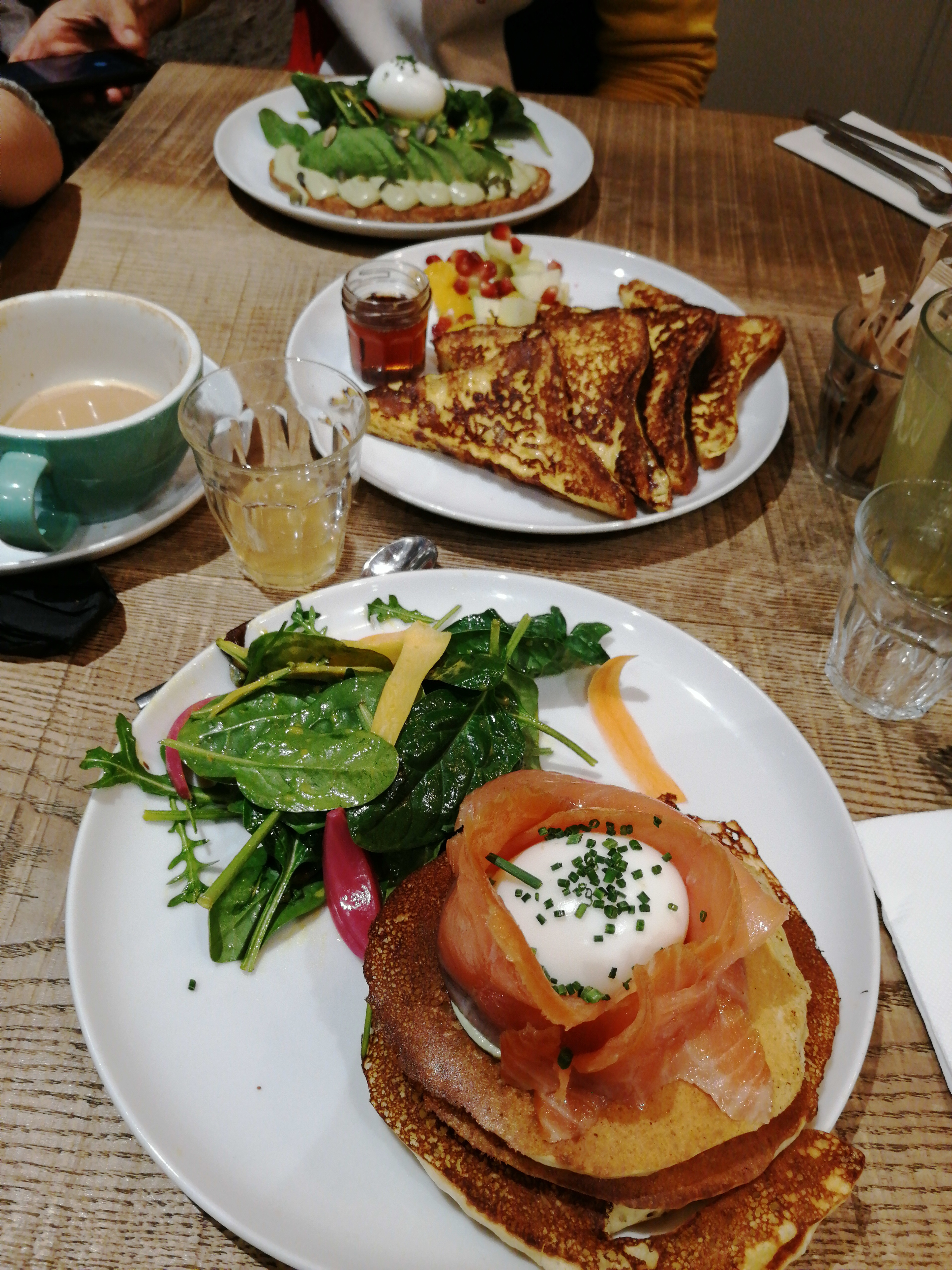 Super lieu pour prendre un petit déjeuner ou un goûter! Déco très sympa et le plus important évidemment la nourriture! J'ai goûté les pancakes saumon, pancakes très moelleux, le goût est présent, en revanche c'est très copieux! Je n'ai pas pu manger le dessert choisi le ''Blondie'', un dessert à la pomme et à la cannelle, ça sera mon goûter!