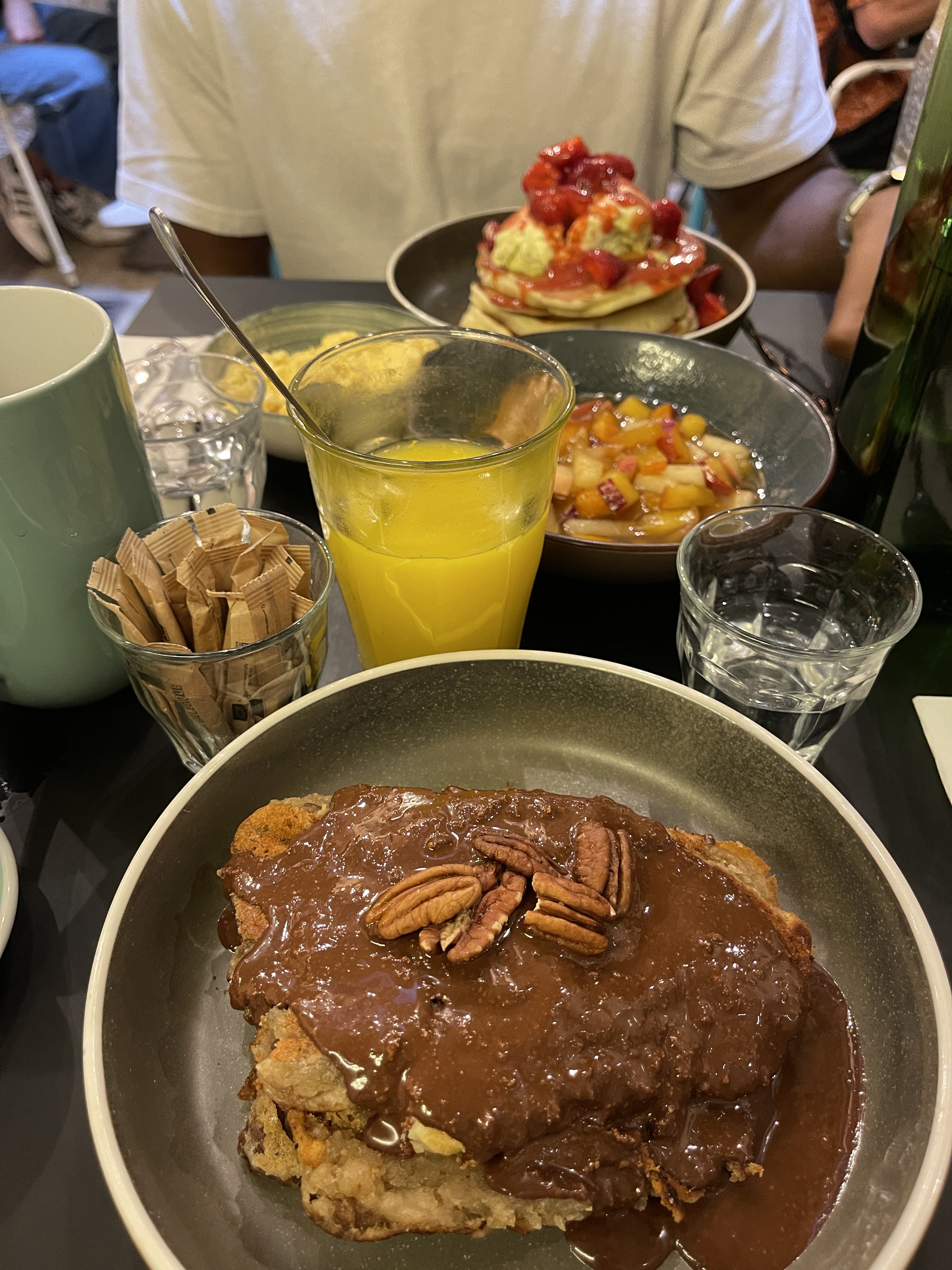 Une décoration cosy, un personnel attentif et une nourriture délicieuse, nous avons passé un agréable moment à bruncher entre filles. Seuls bémols, les pancakes peuvent être un peu écœurant avec une quantité de sauce importante et il existe une version sans gluten ou sans lactose, mais impossible de combiner les deux.