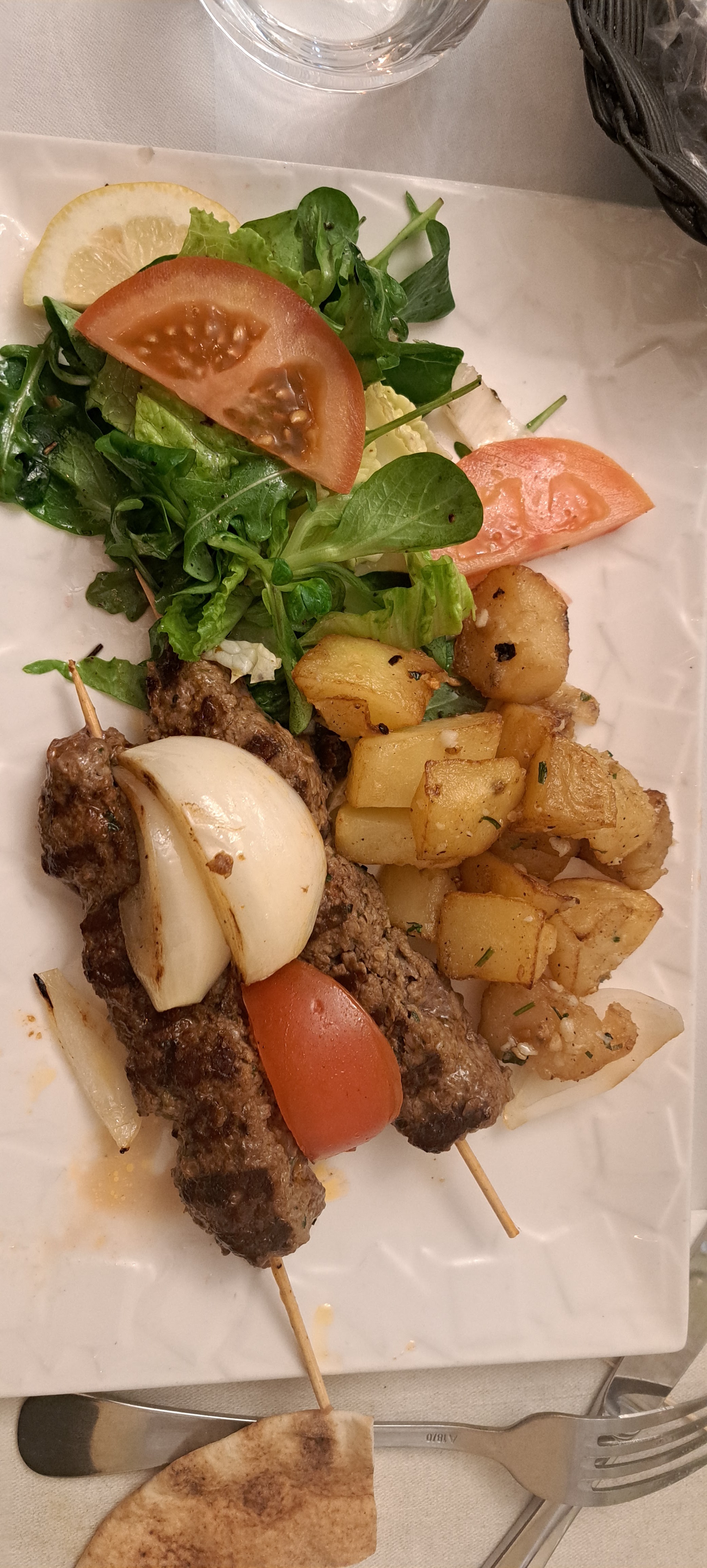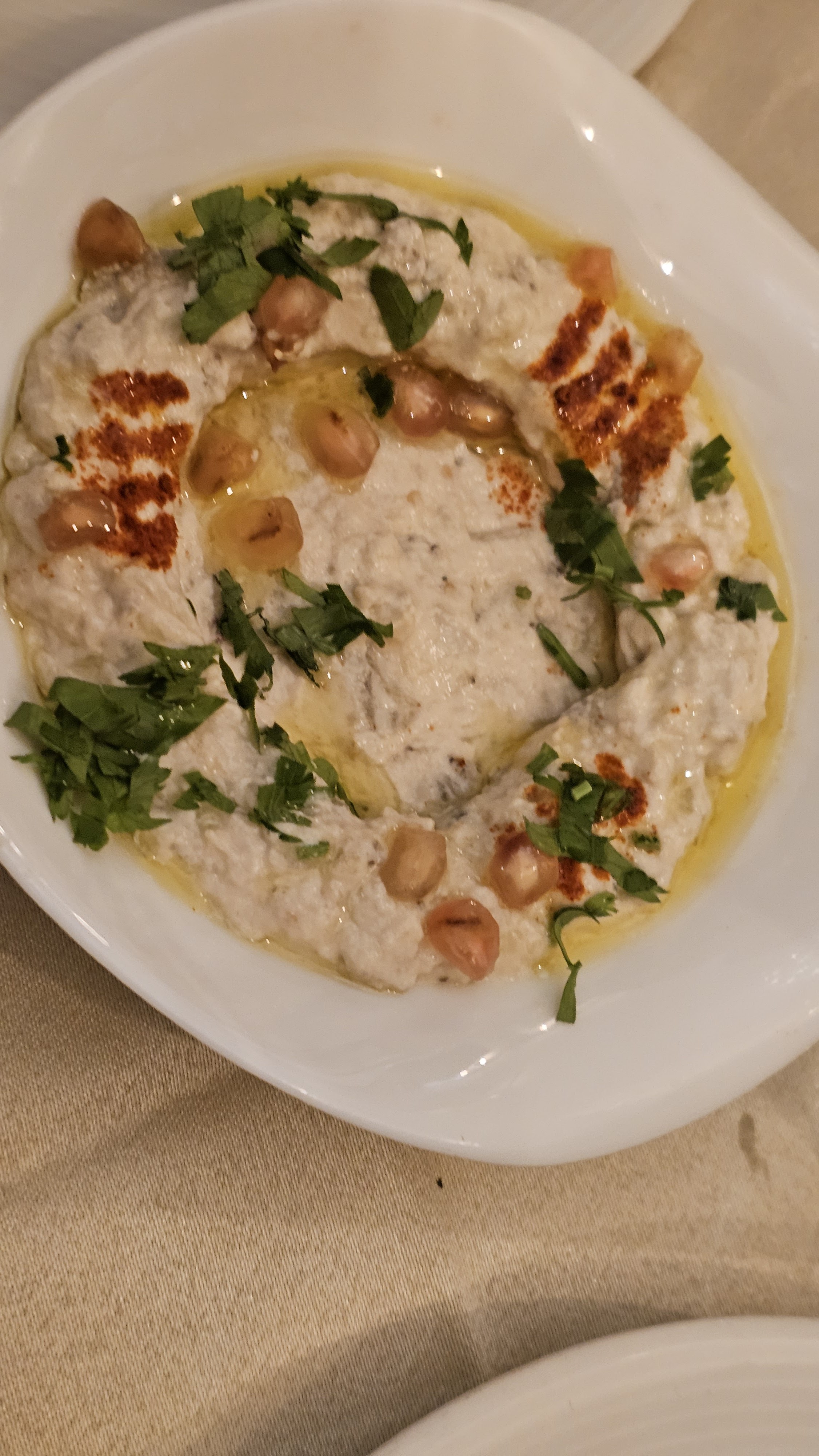 Nous nous sommes arrêtés sur le chemin du retour à notre appartement de vacances et avons été agréablement impressionnés. Nous avons tous les quatre suivi la recommandation du serveur pour le menu partagé à 3 plats. Entrées froides et chaudes (houmous, feuilles de vigne farcies (les meilleures de tous les temps), cœurs de poulet grillés, empanadas au fromage, empanadas à la viande, trempette d'aubergines, kebbe et plus encore. Suivi de viandes grillées (poulet et kafta) suivies des fruits frais les plus étonnants et de quelques sorte de pudding au lait avec du miel de lavande et des pistaches sur le dessus. Nous étions bourrés et avons dû en emporter beaucoup à la maison 160 euros. Beau restaurant.