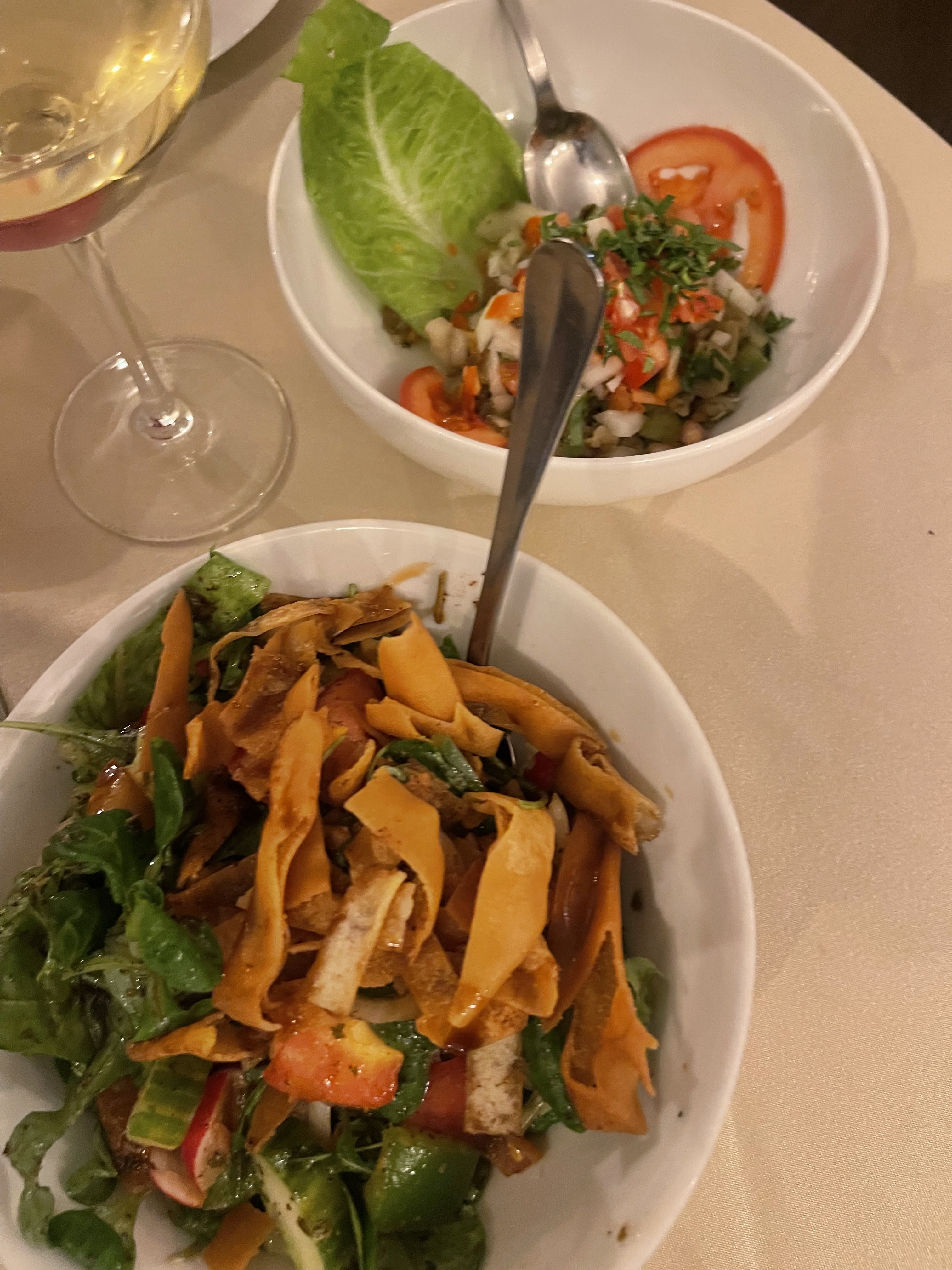 Nous voulions un restaurant du Moyen-Orient qui servait également de l'alcool. Plus de gens devraient connaître cet endroit ! Bonne nourriture fraîche et service attentionné. En regardant les critiques, il semble que la nouvelle direction essaie de rattraper la direction précédente et je leur souhaite le meilleur. Le seul inconvénient était l'absence de menu en anglais, mais le personnel vous aidera à trouver quelque chose et vous repartirez vraiment rassasié. 😊😊