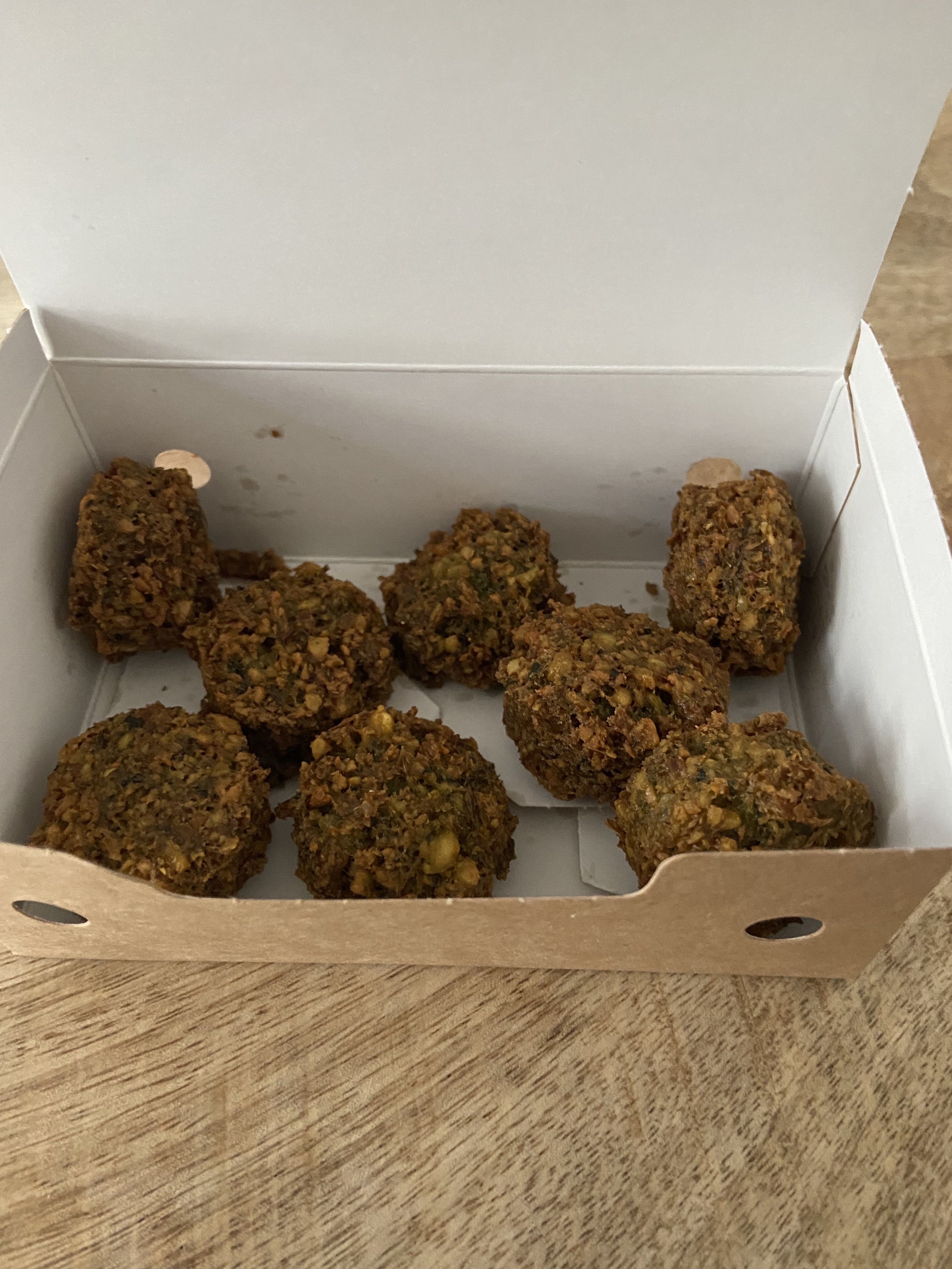 Hors de prix aux vues de la quantité. A l'intérieur de la pita ce n'est pas mélangé donc on mange les ingrédients les uns après les autres. Le sandwich est reelment petit et concernant les protéines c'est uniquement 1/2 oeuf (non mollet l'oeuf...). Fallalfel sèches et de très petites tailles (inférieur à une balle de ping pong, plutôt de l'ordre de bille). Niveau saveur c'est sans plus. 31€ pour 2 sandwich et 2 sides en commande dont 1 side qui a été oublié c'est clairement trop chère. Très déçu.