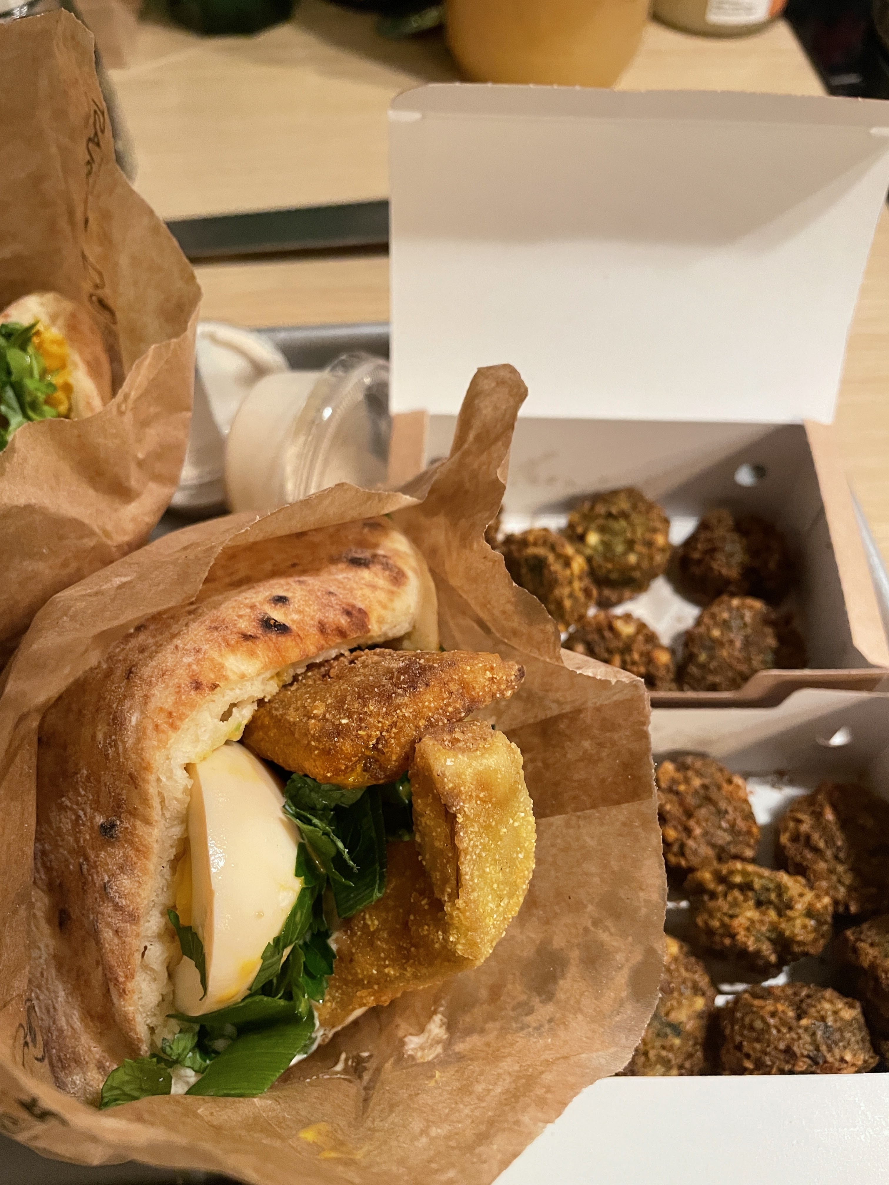 Délicieux sabish à emporter, très copieux, l'équipe est charmante 👍