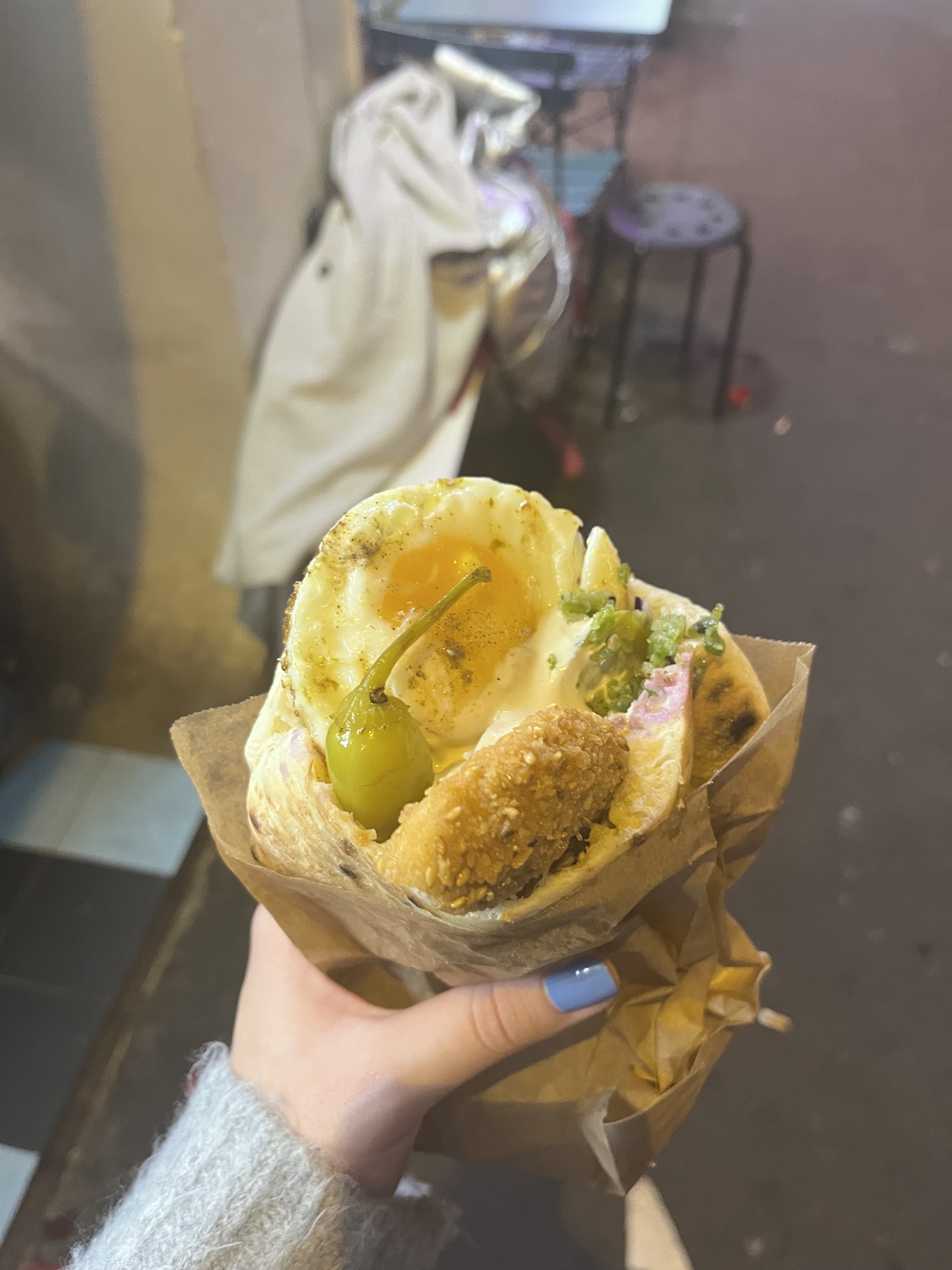 Découverte de ce sandwich israélien, frais et bien garni, je me suis régalé ! Service rapide et accueil super sympa ! Parfait pour manger sur le pouce entre midi et deux