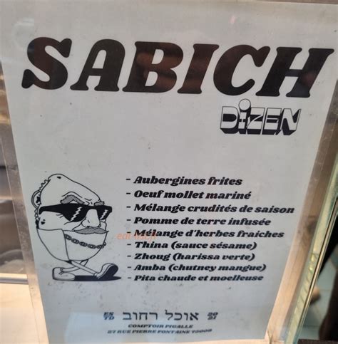 Exceptionnel Sandwicherie Sabich, sandwich pita irakien. Les 1er à avoir ouvert une Sandwicherie de Sabich à Paris. Sans oublier les Fallafels et les schnitzels. Leur citronnade fait maison comme tout le reste d’ailleurs. Petits prix. Super découverte tout proche du moulin rouge.