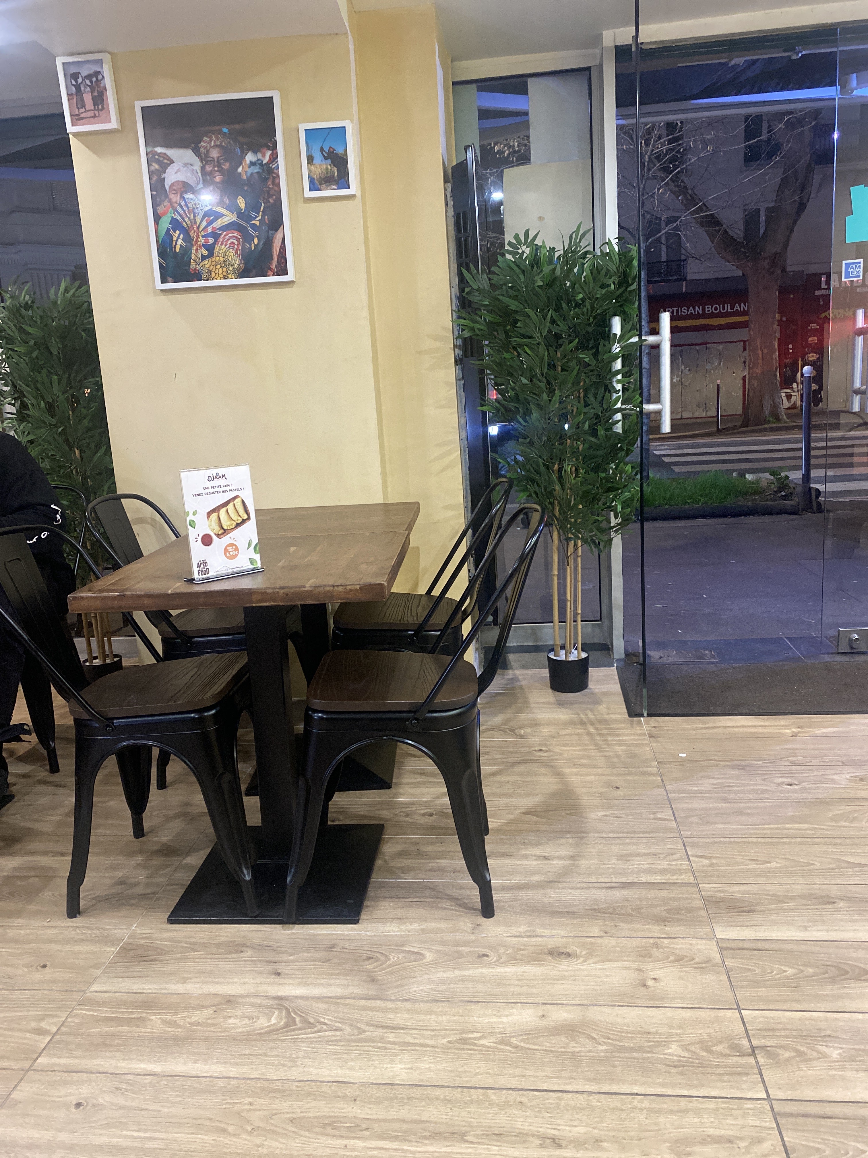Alors je mets une étoile car il n’y a pas 0. Après notre visite d’aujourd’hui tres grosse déception. Je suis désolé mais les personnes qui aime ça n’ont pas goûter ni un vrai mafé ni vrai thiep. Les pastels : celles au thon sont pas mal mais celle au bœuf 0 assaisonnement. La sauce mafé franchement s’en ai une ? Je vois pas en quoi on retrouve le goût de la sauce de nos mamans. Les alocos changer de noms svp des bananes à l’huile pourtant le caissier nous avait prévenu de la prendre grande têtu j’ai pris et j’ai été très dessus. Je ne reviendrai pas.