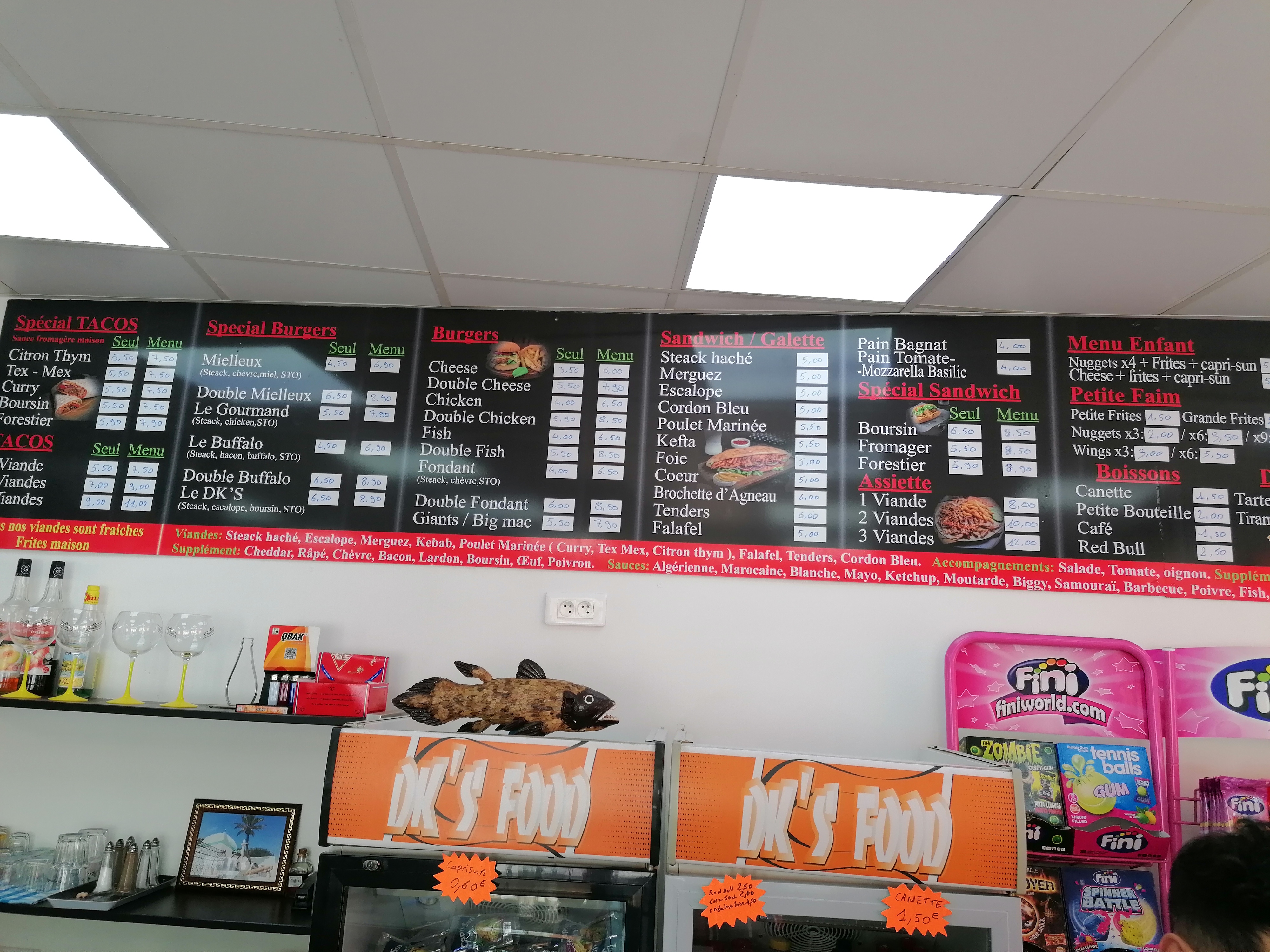 Patron super gentil, la nourriture est très bonne et halal (kebab et tacos goûtés) et les prix sont très corrects pour la qualité, n'hésitez pas à essayer vous même !!