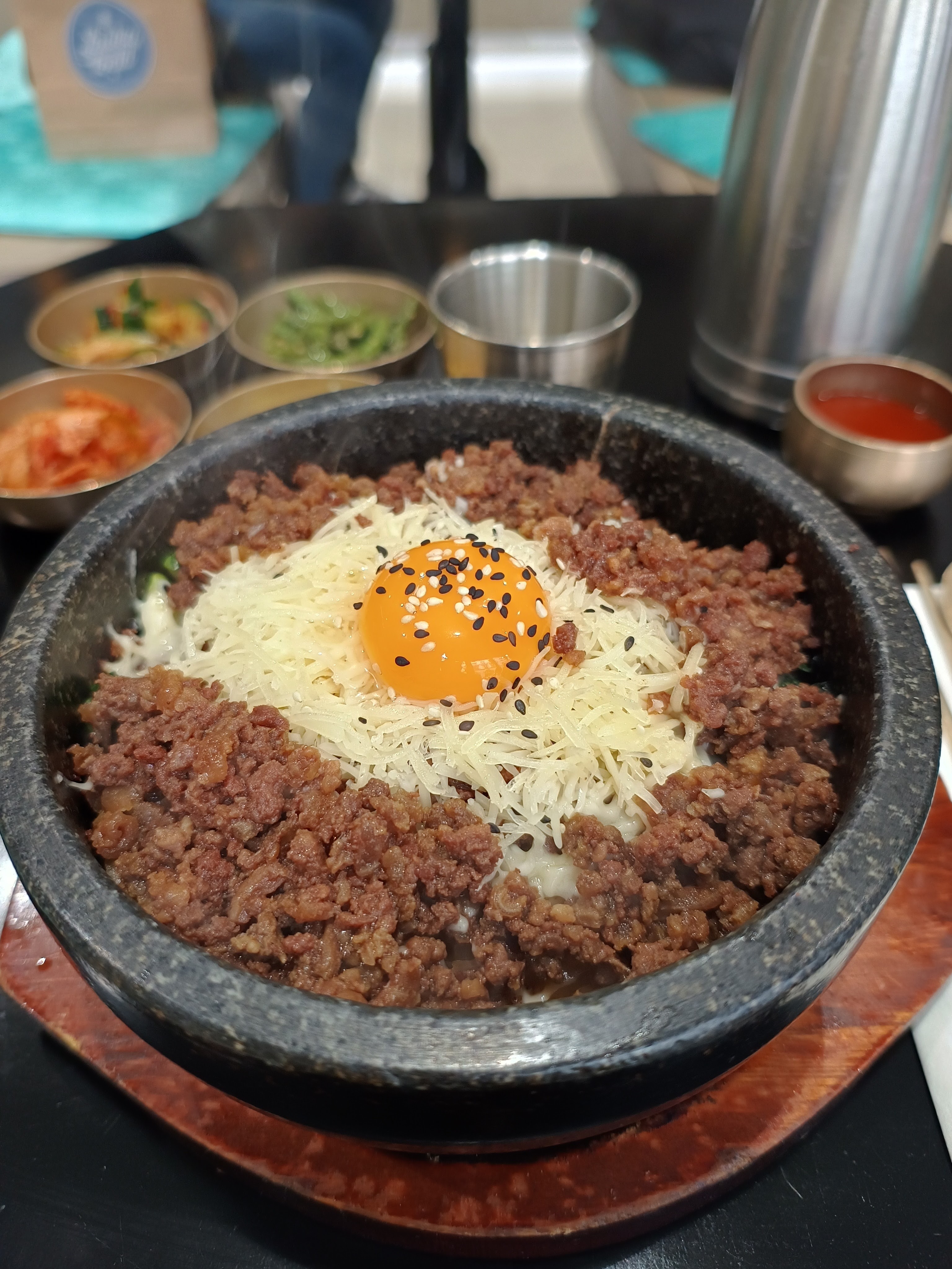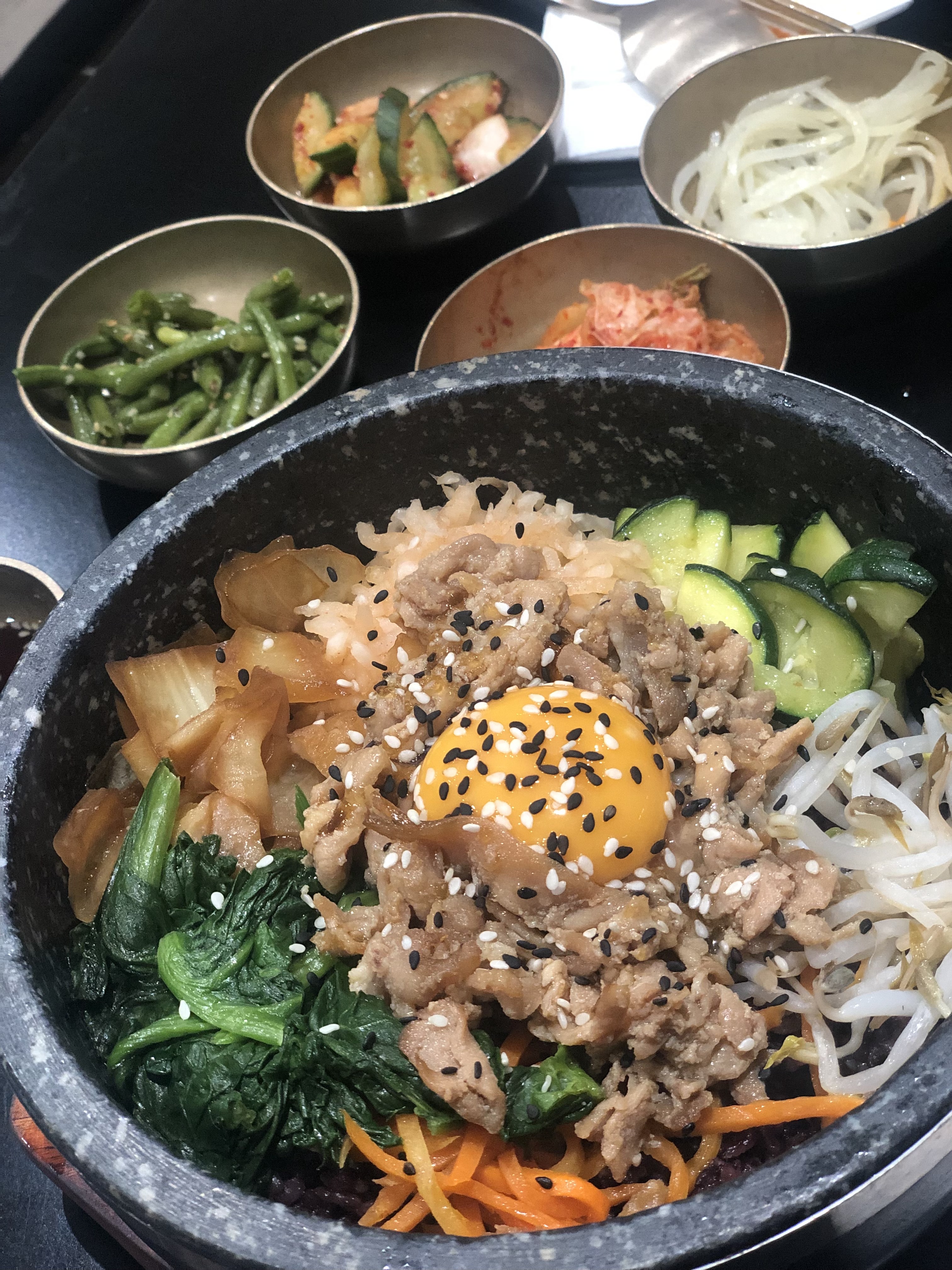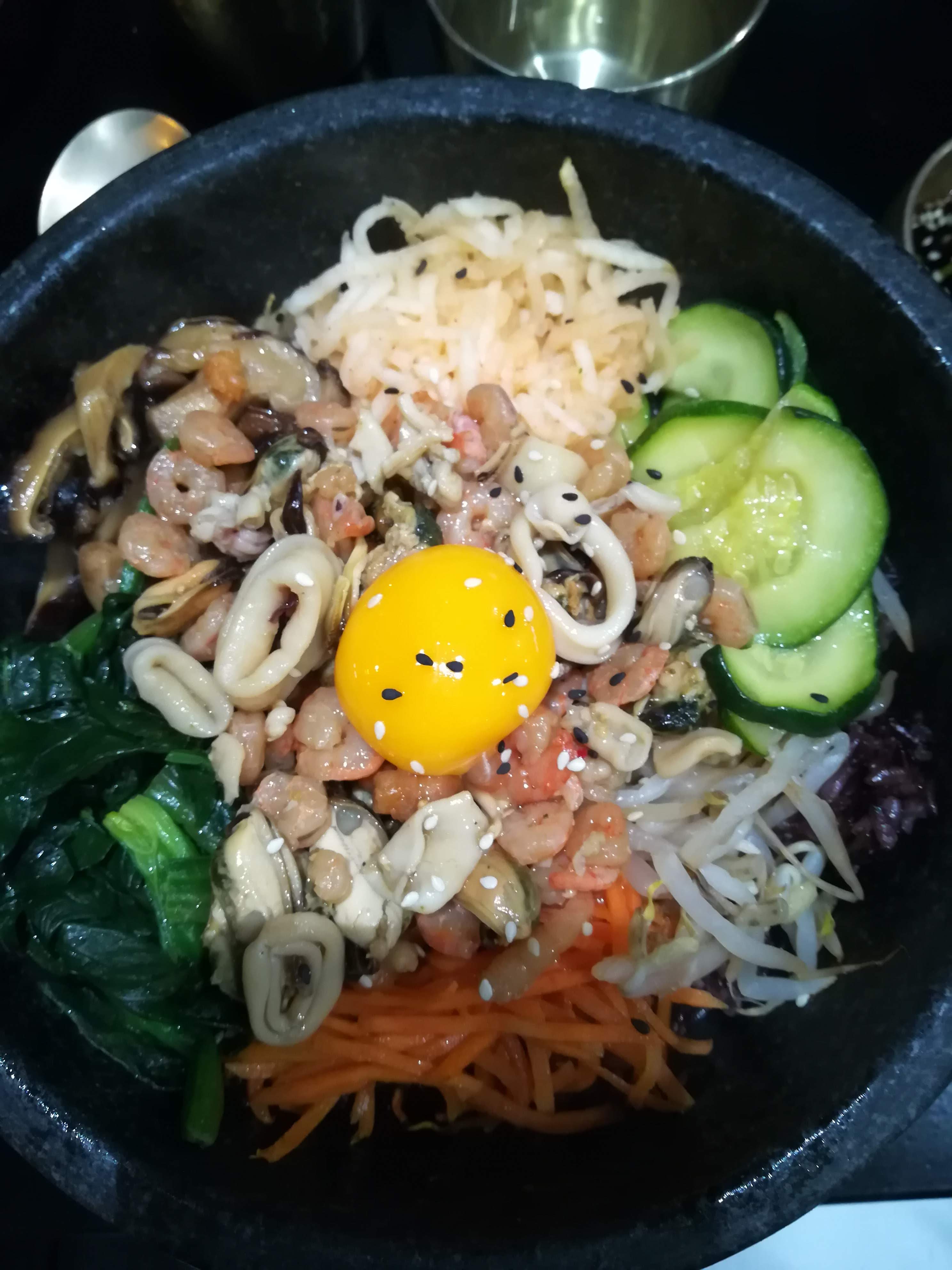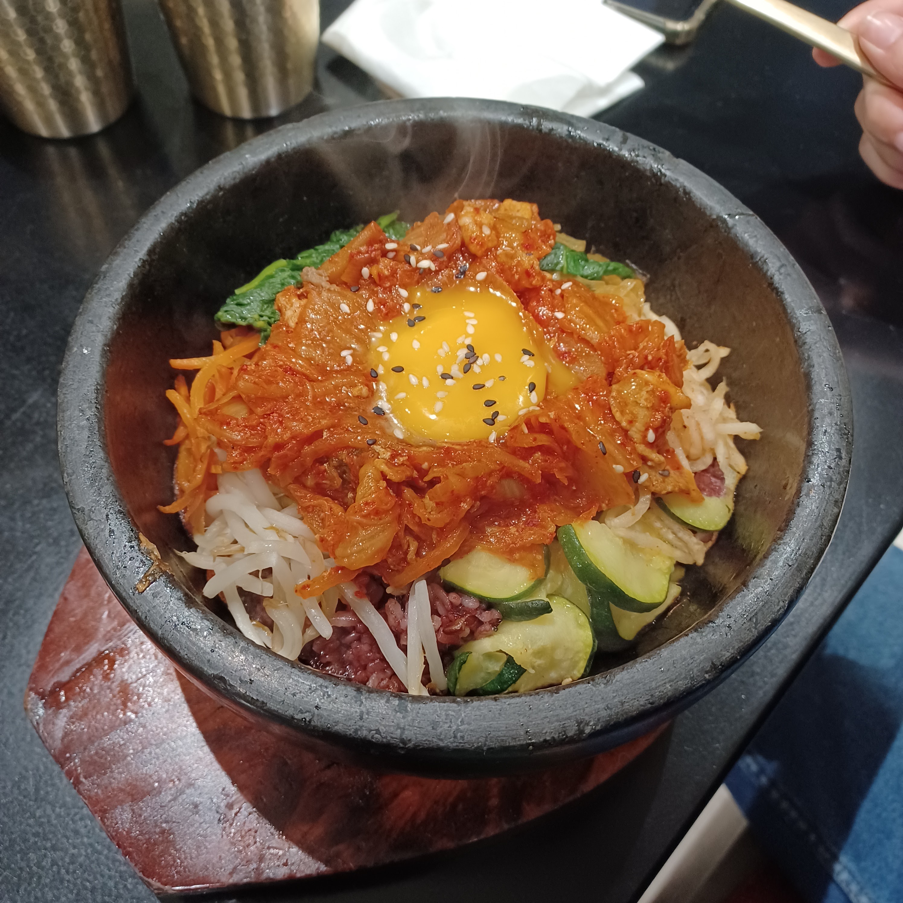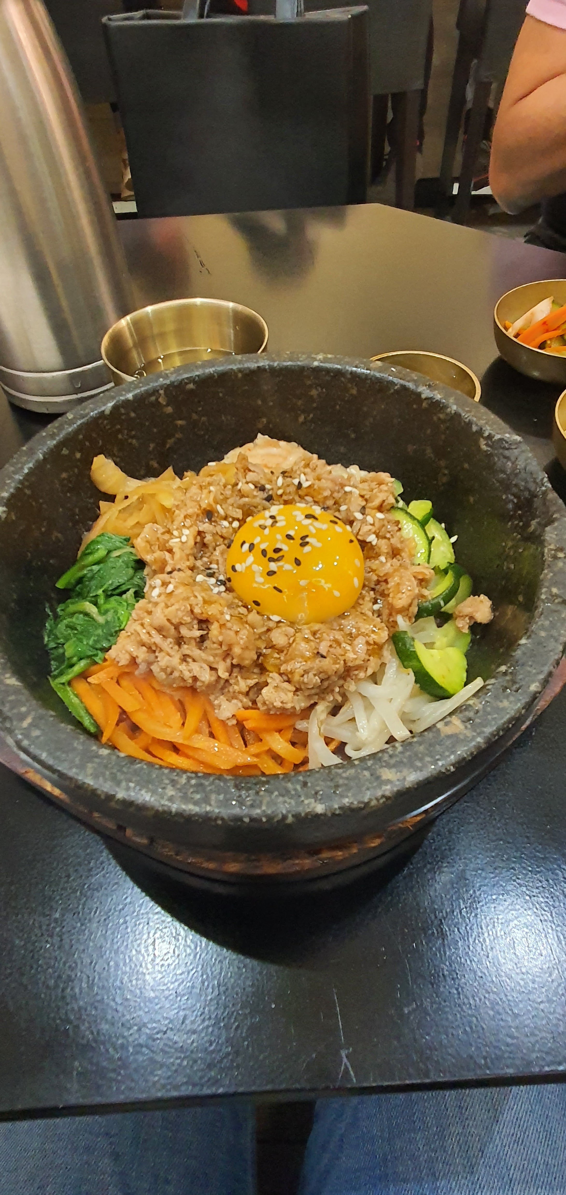 Nous y sommes allés pour les Bibimbaps, et on a pas été déçu! C’etait super bon et bien consistant! J’aurais aimé plus de tofu et moins de riz mais dans l’ensemble c’etait vraiment goûteux, les epinards etaient super bon. Les portions sont vraiment tres grandes et ca fait plaisir de bien manger sans rester sur sa faim Le service est rapide et les serveurs sont adorables avec le sourire et la joie de vivre! L’ambiance du resto est vraiment sympa sobre et moderne! Et les prix sont bien plus qu’abordables - 11€ pour tous les Bibimbap, 13,50€ avec une entrée au choix. Nous reviendrons biensur pour les Bibimbap mais aussi pour venir tester et goûter les autres plats qui avaient eux aussi l’air tres bon
