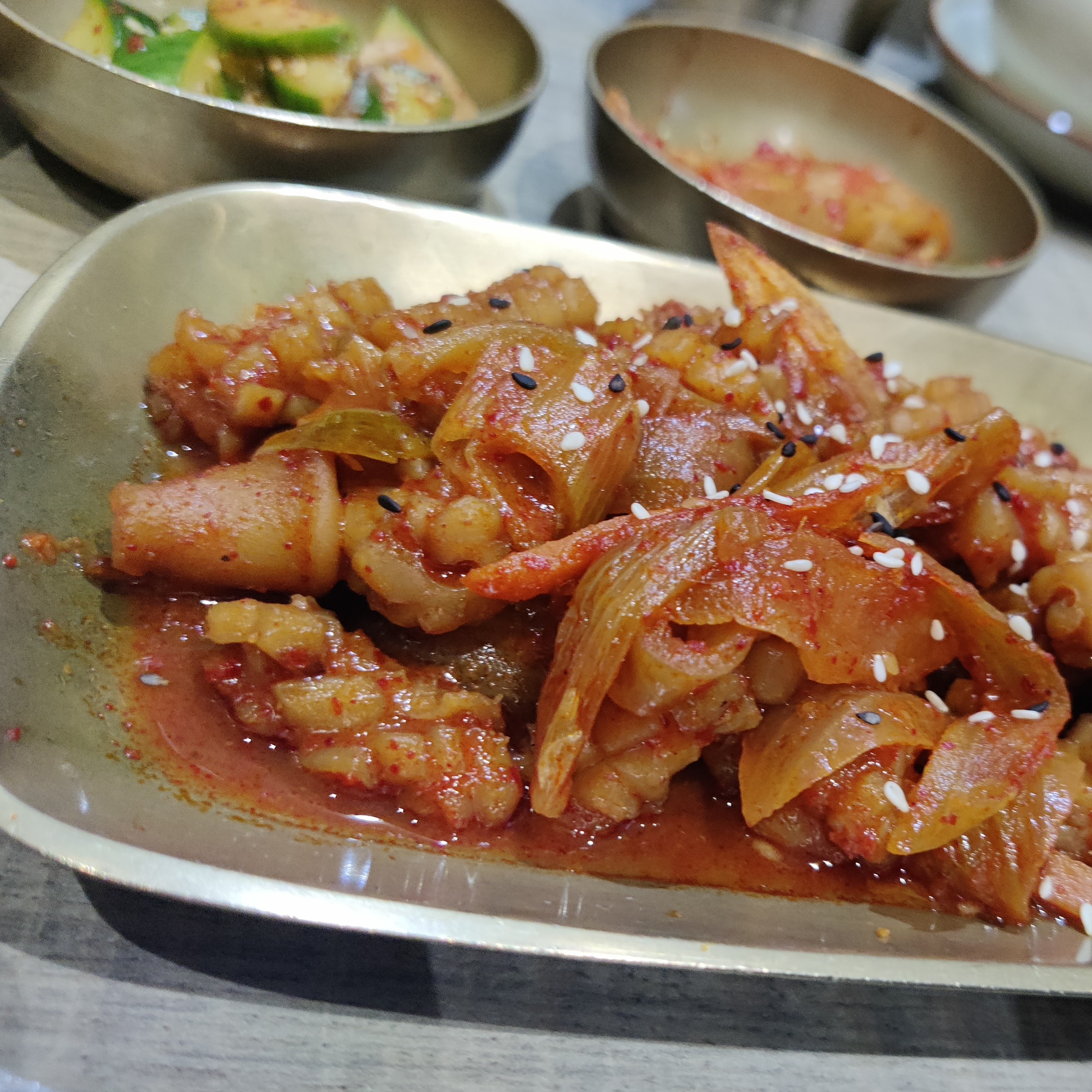 Vraiment déçu par cette adresse Le viande tres peu de goût et ça ne ressemblait pas vraiment à du tteok-galbi Le kimchi aucun goût Et les 3/4 des entrées n’étaient plus dispo Il y a beaucoup mieux dans le quartier Dommage l’ambiance et la déco intérieur est tres sympa