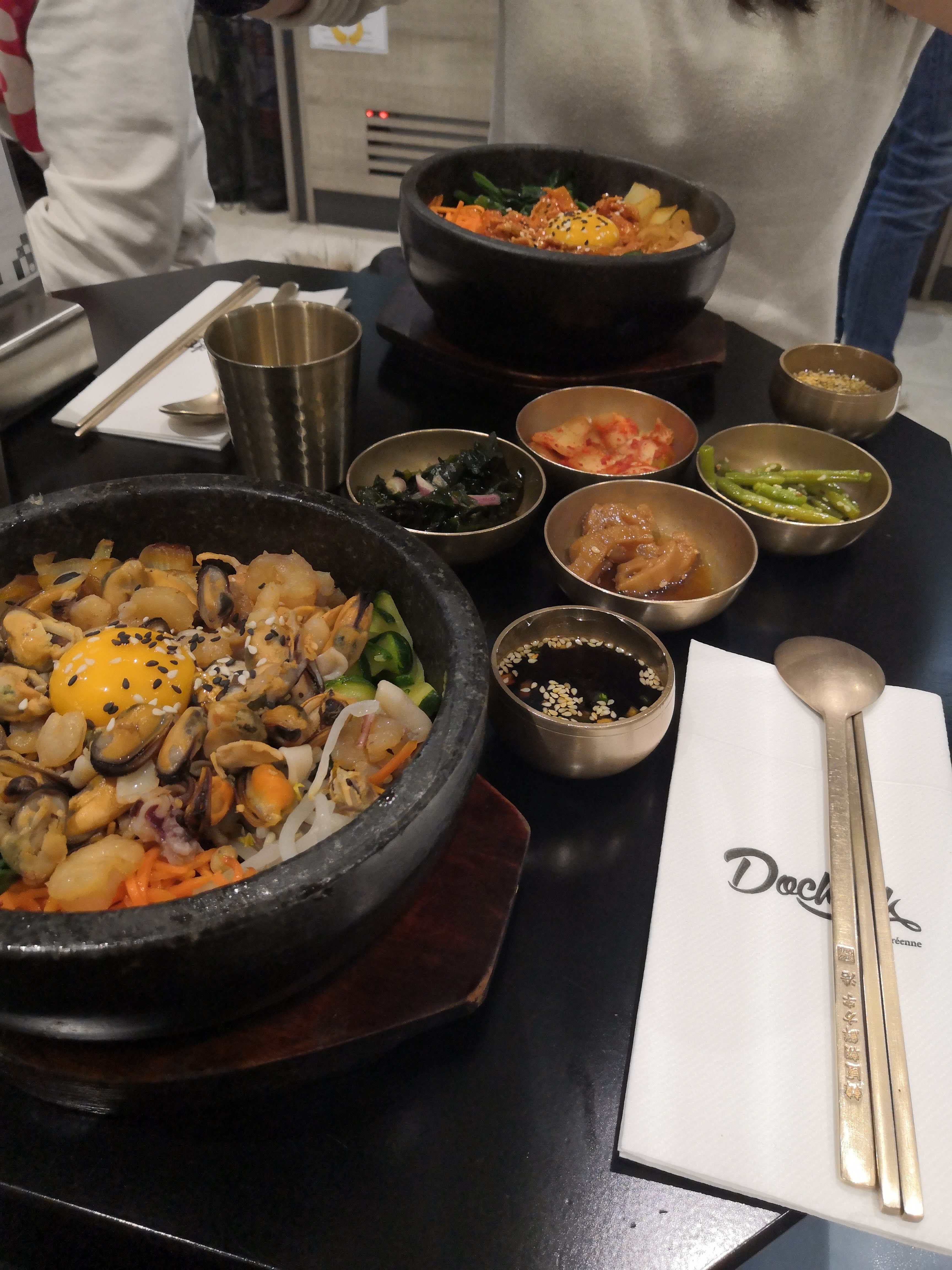 Sortie du théâtre La pépinière, nous sommes allées manger chez Dochilak. On s'est régalées avec le bimbimbap poulet, service ultra souriant et sympathique et cadre cantine très sympa.