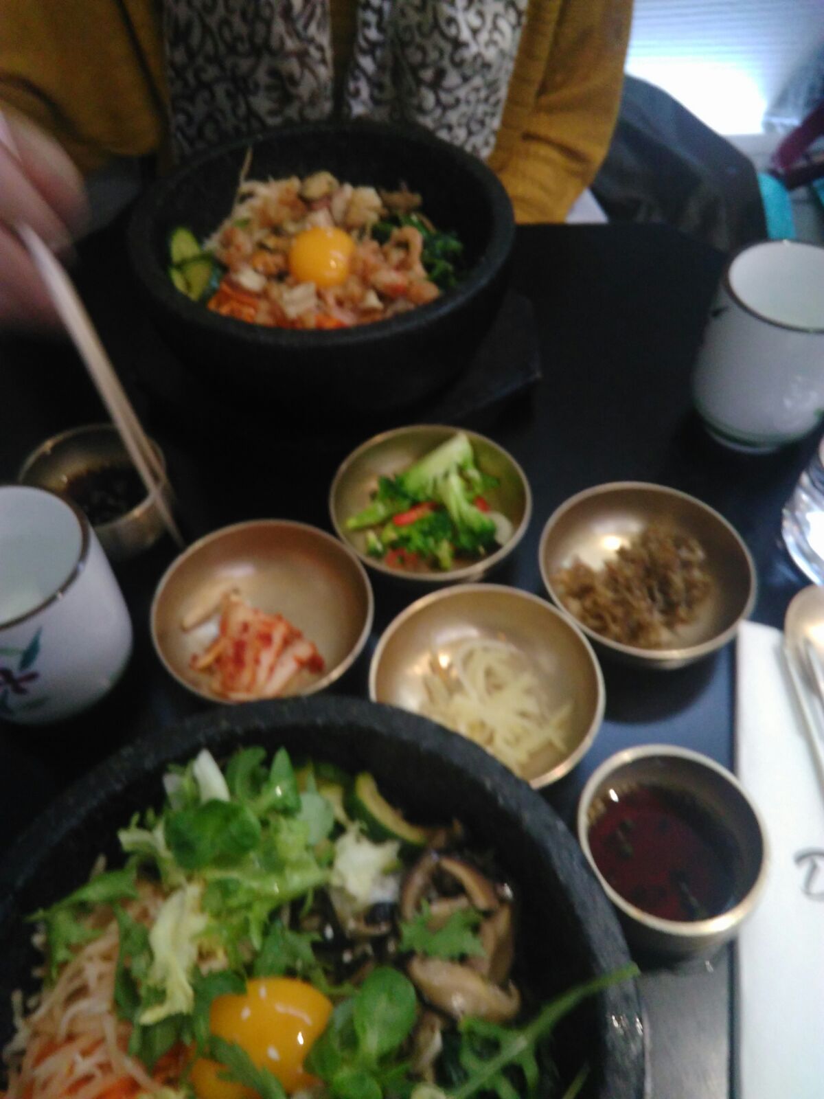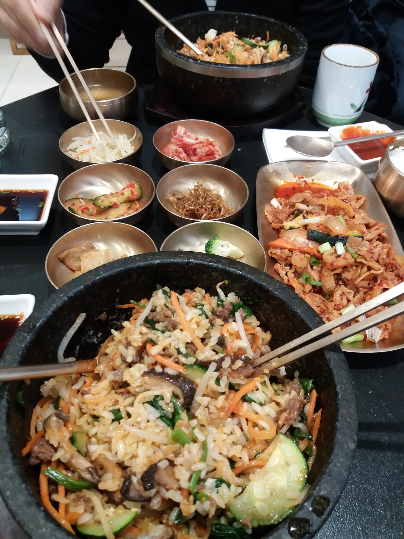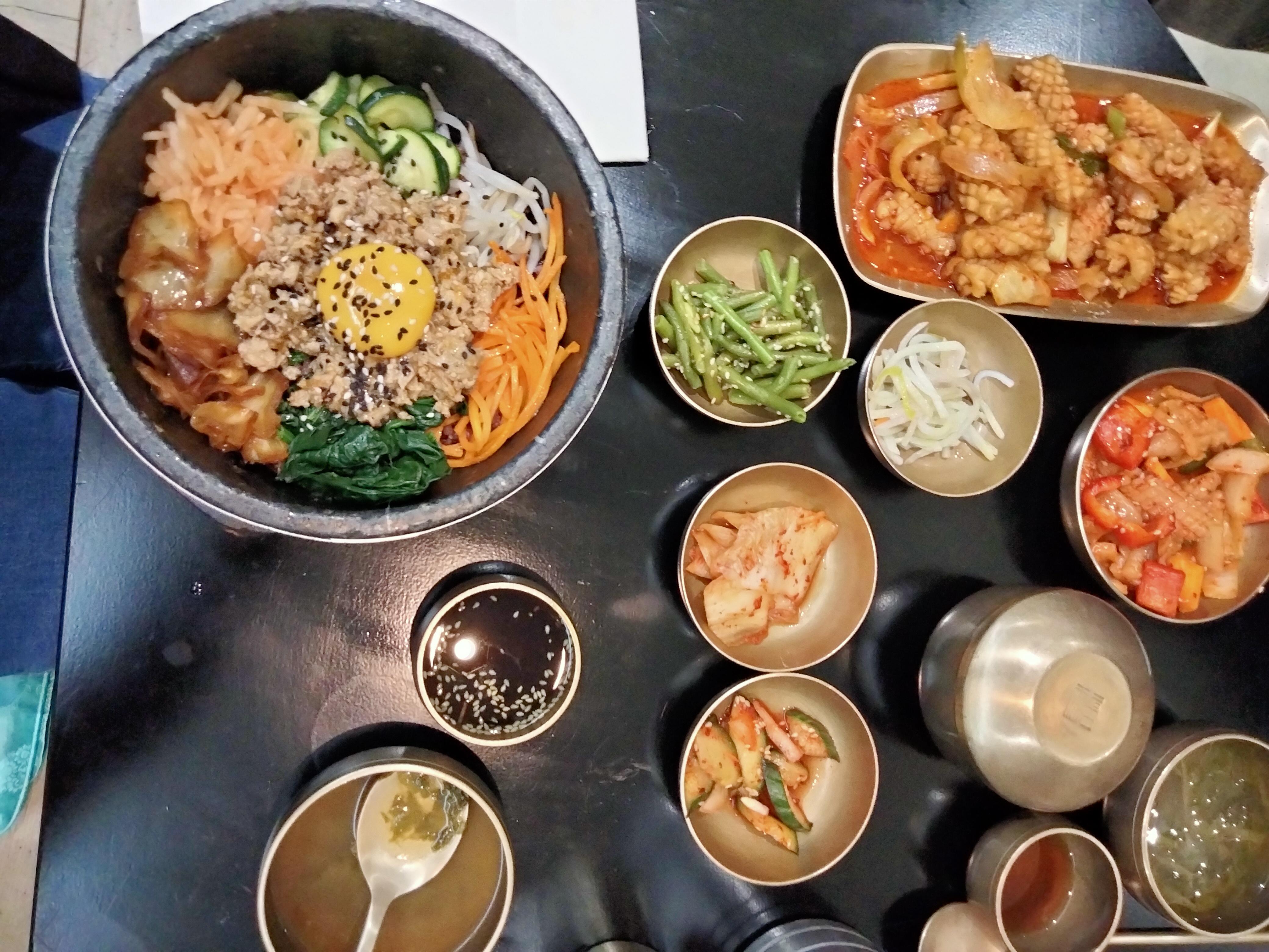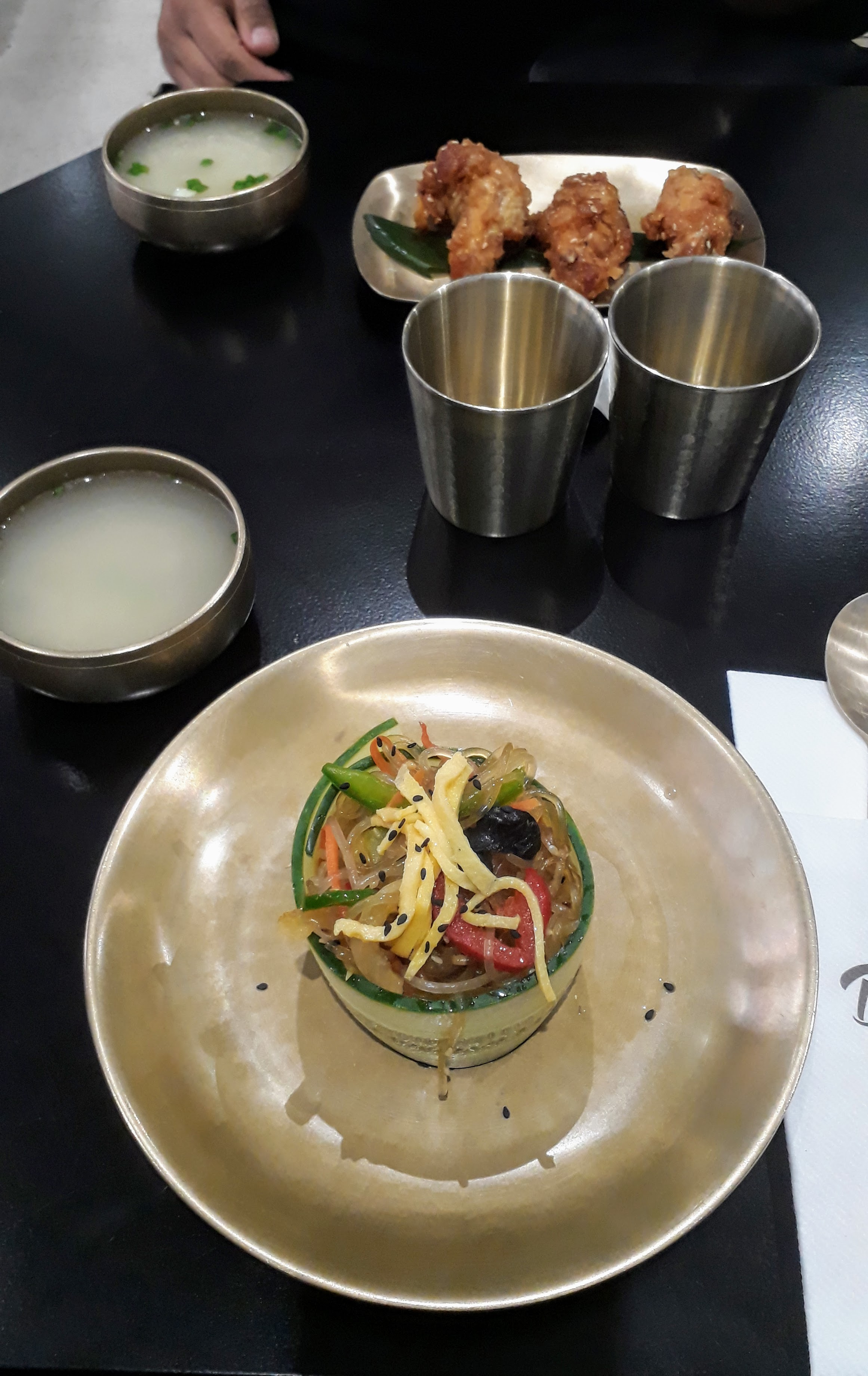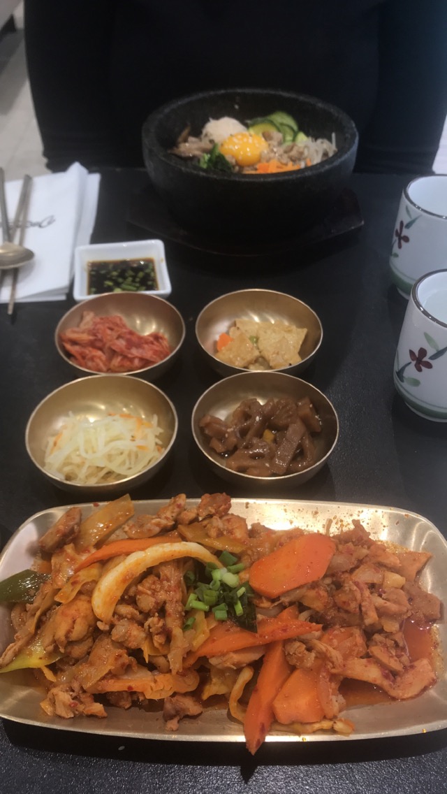 Globalement c'est convenable. Mais la nourriture est pas si exquise et les quantités sont trop petites comme par exemple, l'entrée où ils donnent seulement 2 portions de poulet ou le japchae qui est en petite quantité mais c'est bon. Le plat de résistance est pas mal. Le bibimbap est généreux et chaud mais un peu salé ( à mon goût ). Le plat accompagné des condiments est pas mal aussi mais les condiments sont vraiment trop petits. Je n'étais pas repue ( car j'ai pris le plat avec des condiments). Pour de si peu quantité avec un prix aussi cher, c'est pas ouff.