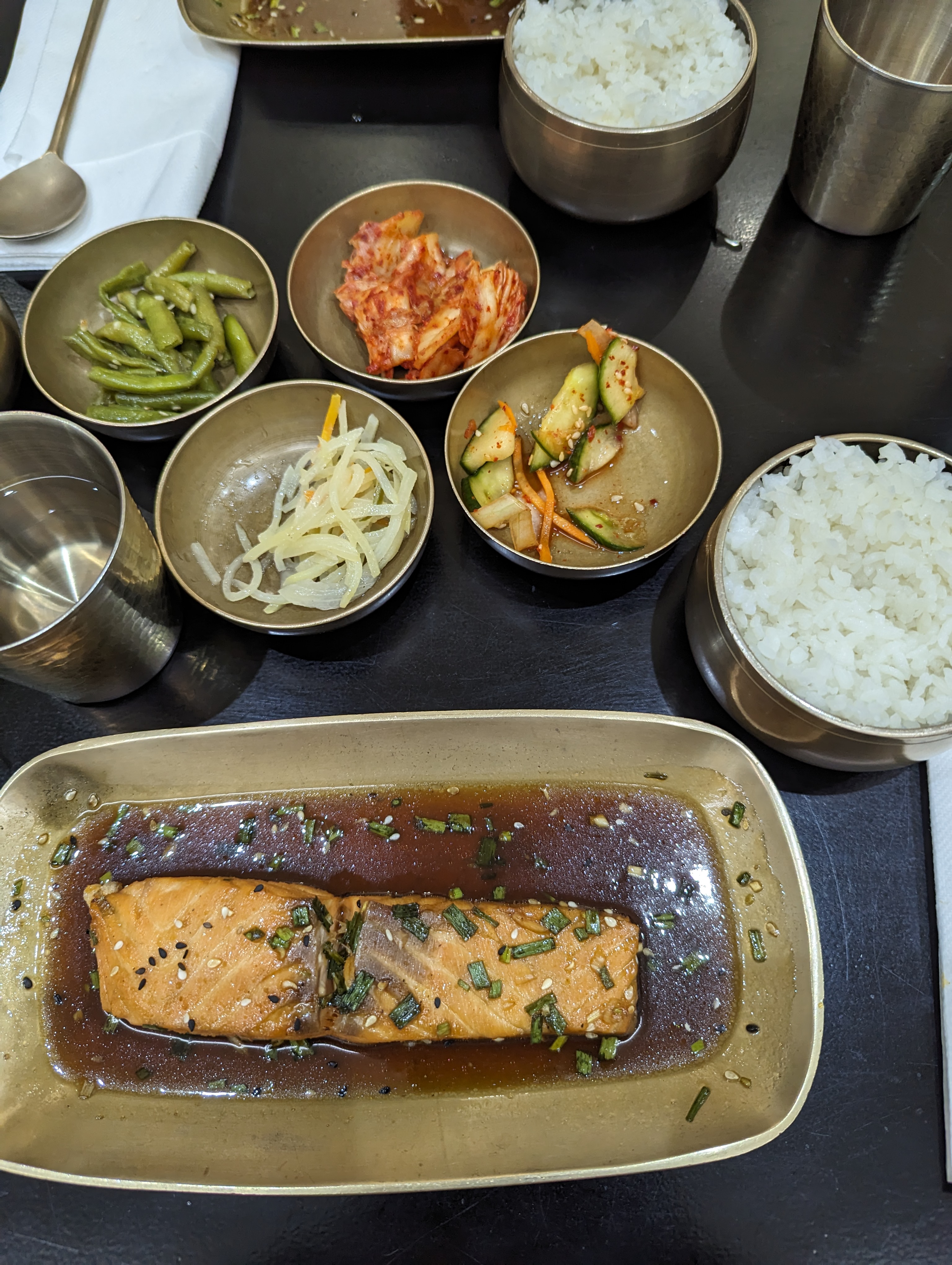 Adresse coréenne sympa, je recommande le saumon mariné, le poulet est aussi sympa