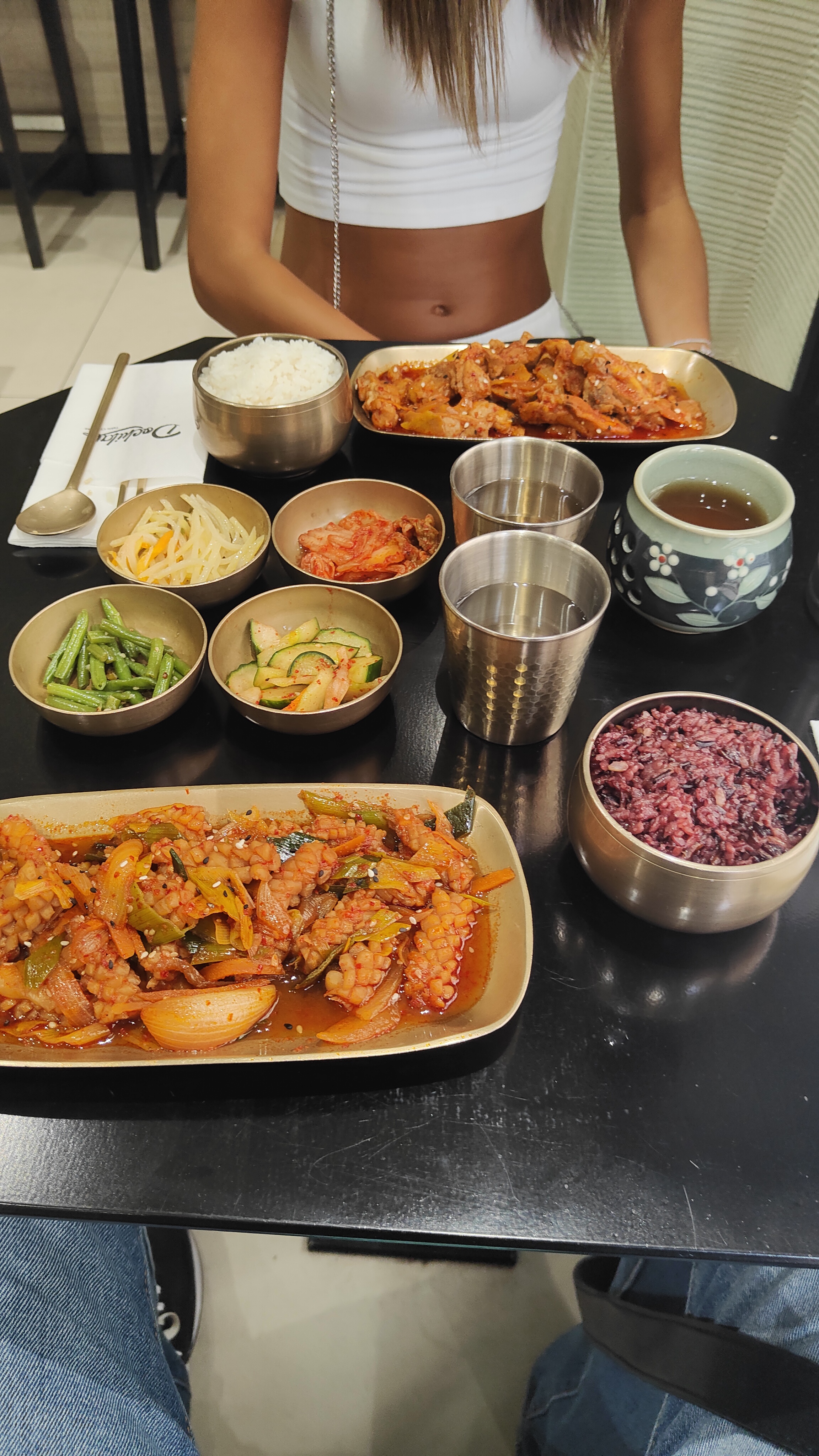 La nourriture y est bonne cependant les quantités sont ridicules, j'ai pris un bibimbap au porc. J'ai dû apeler le serveur pour lui demander où était le porc, il m'a montré une petite tige de viande qui passe inaperçue à l'œil nu et en bouche. Les desserts sont à proscrire car ils ne sont tout simplement pas mangeable. La salade de calamars est très bonne.